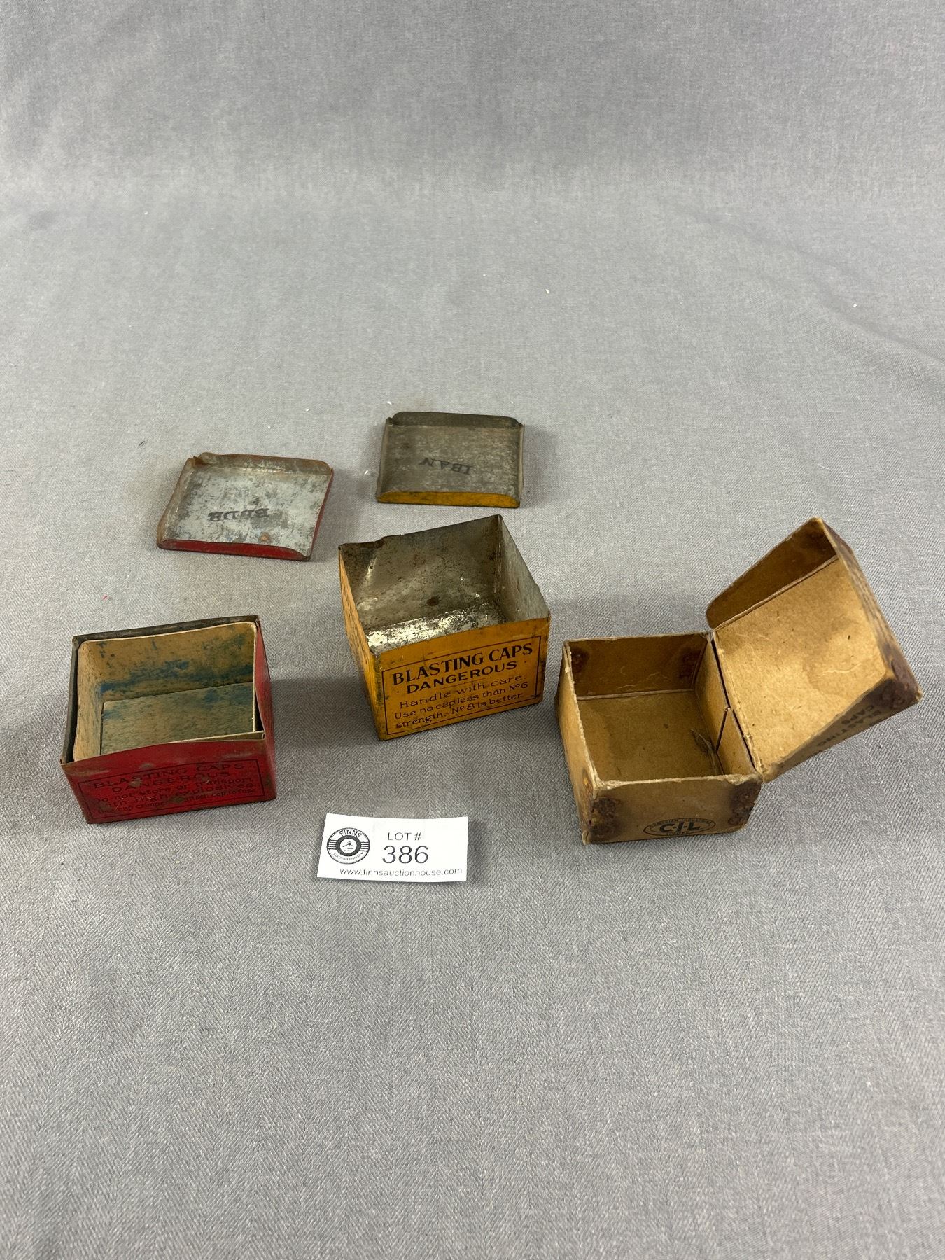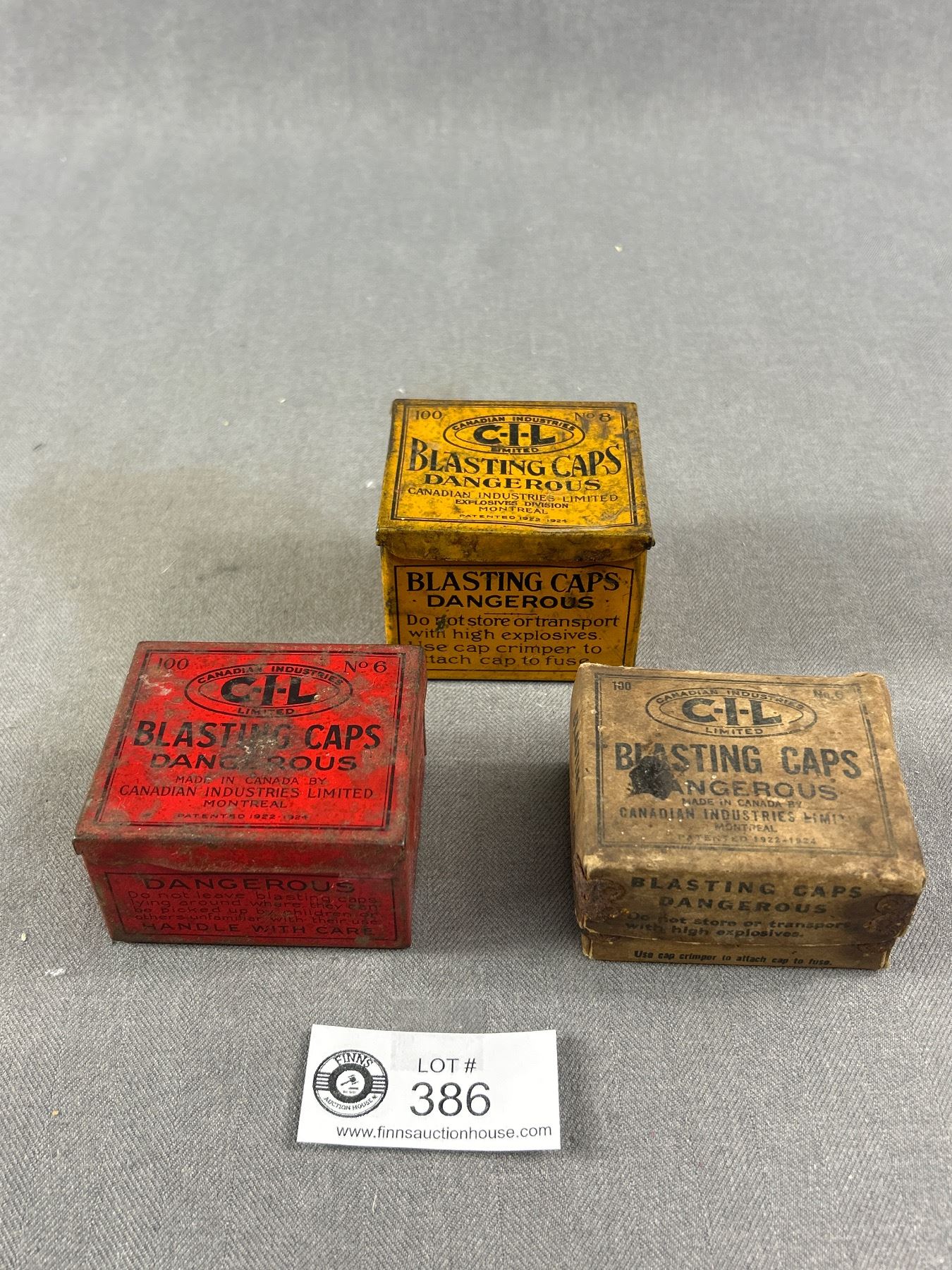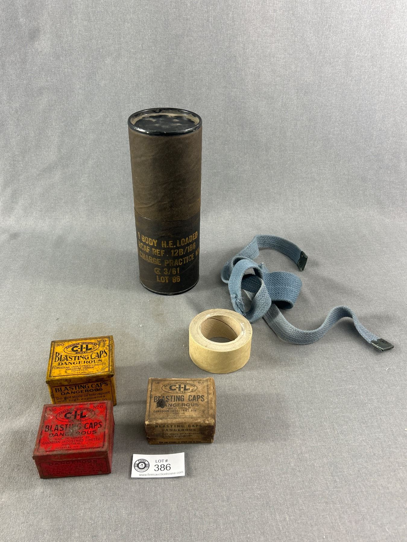 Vintage RCAF MK15 Depth Charge Composite Canistor & 3 C.I.L. Blasting Cap Containers (2 are Tin). All Empty