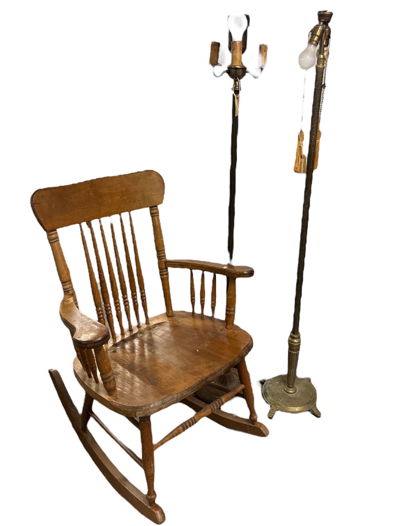 Vintage Rocking Chair And 2 Floor Standing Lamps
