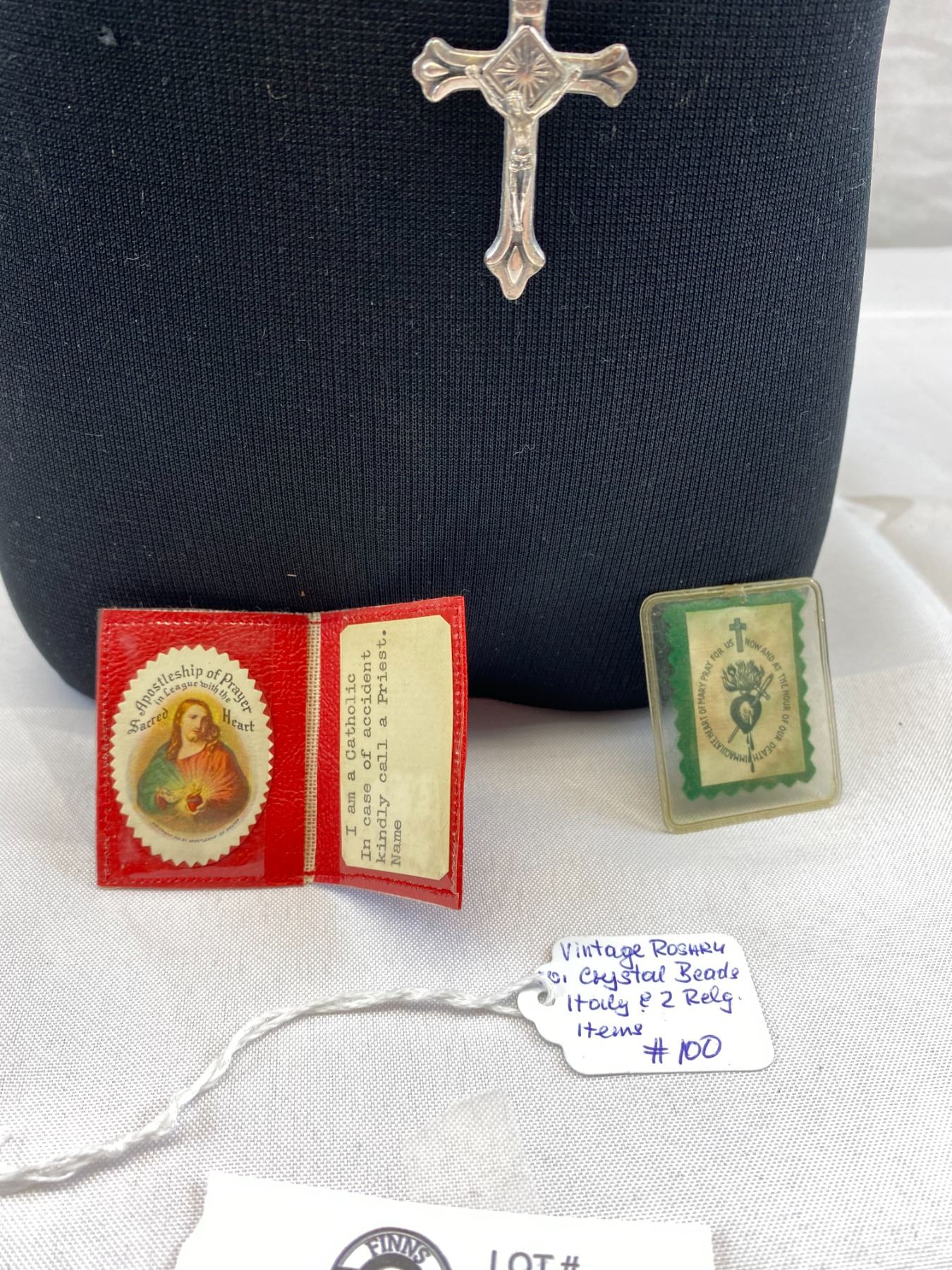 Vintage Rosemary With Crystal Beads, Made In Italy With 2 Other Religious Items