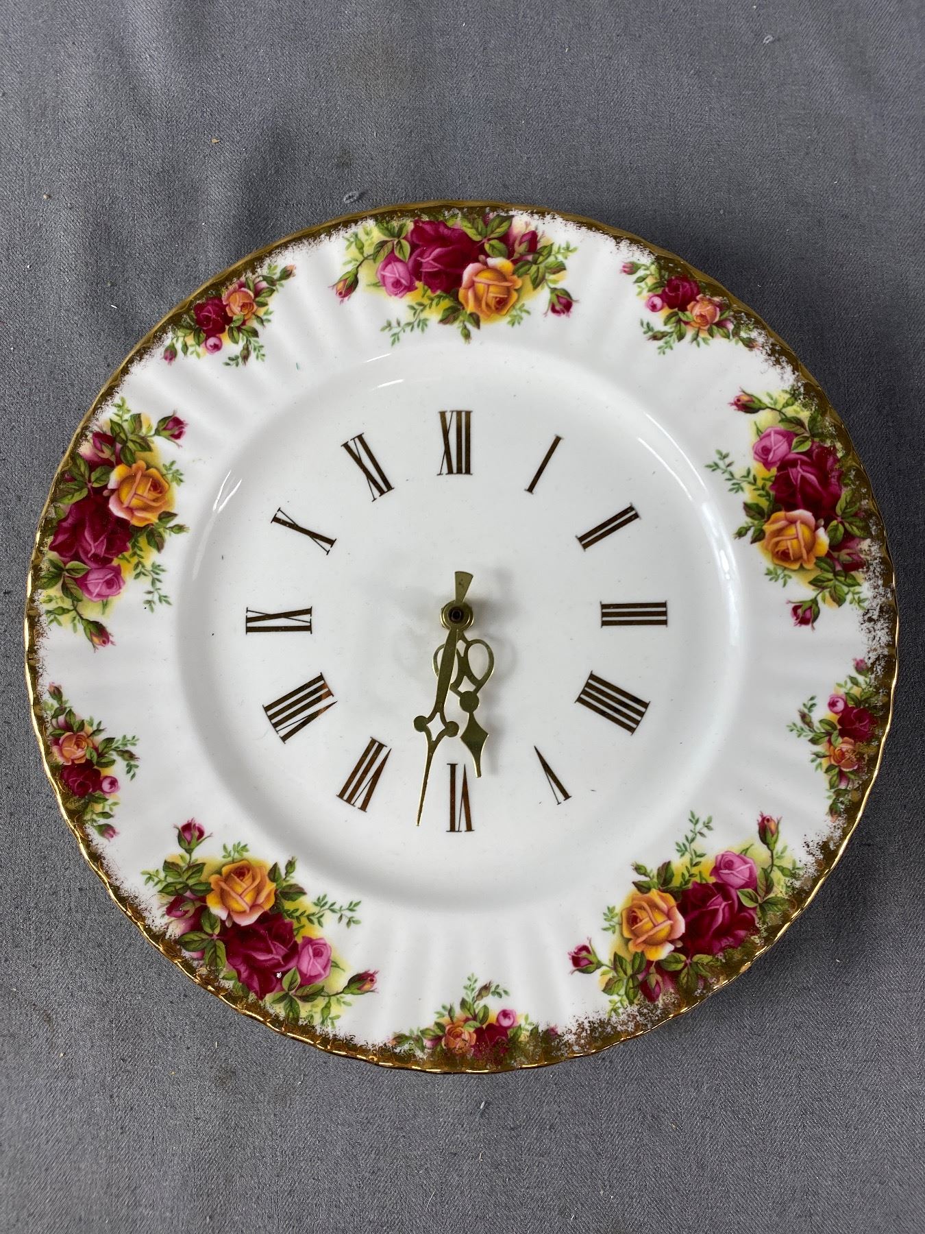 Vintage Royal Albert Old Country Roses Battery Operated Clock. Approx. 10" Diam