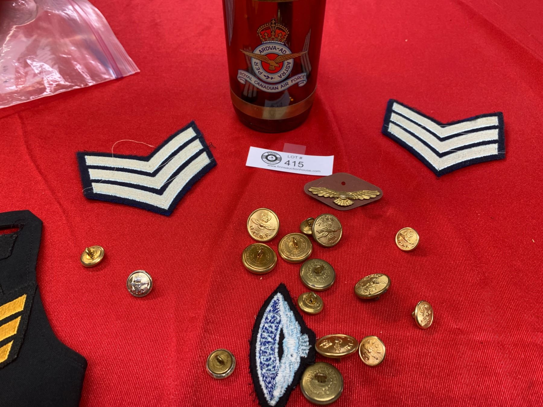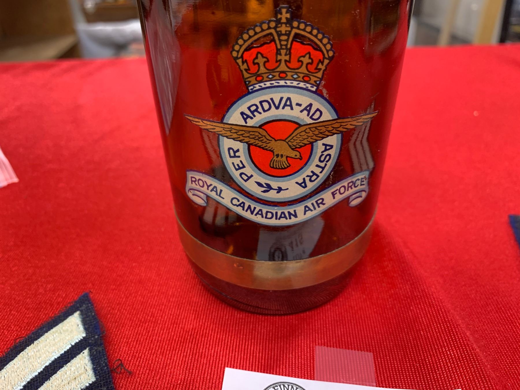 Vintage Royal Canadian Air Force Beer Mug Filled with Buttons and Patches