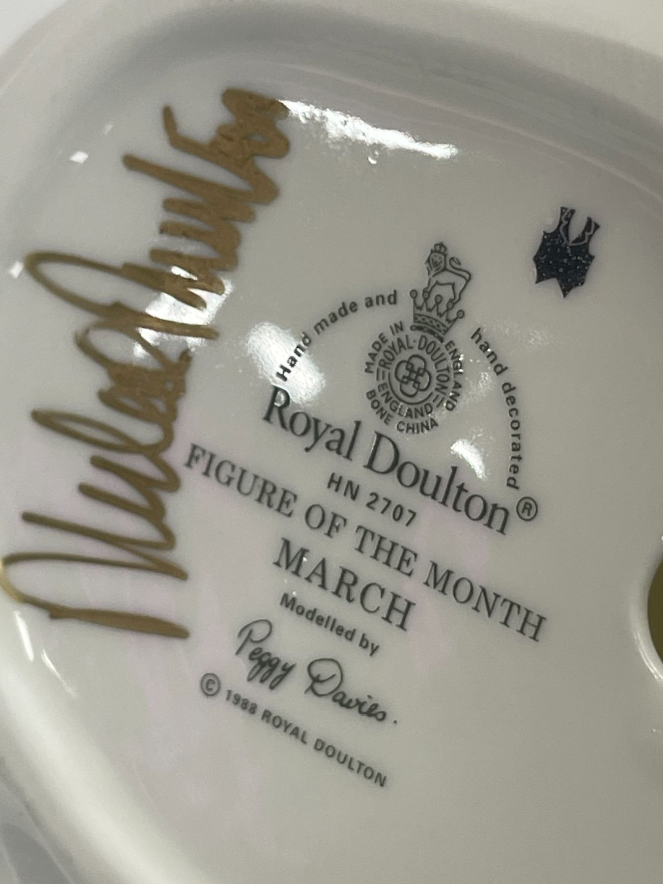 Vintage Royal Doulton  Figure Of The Month March  Signed On Bottom Porcelain Figurine