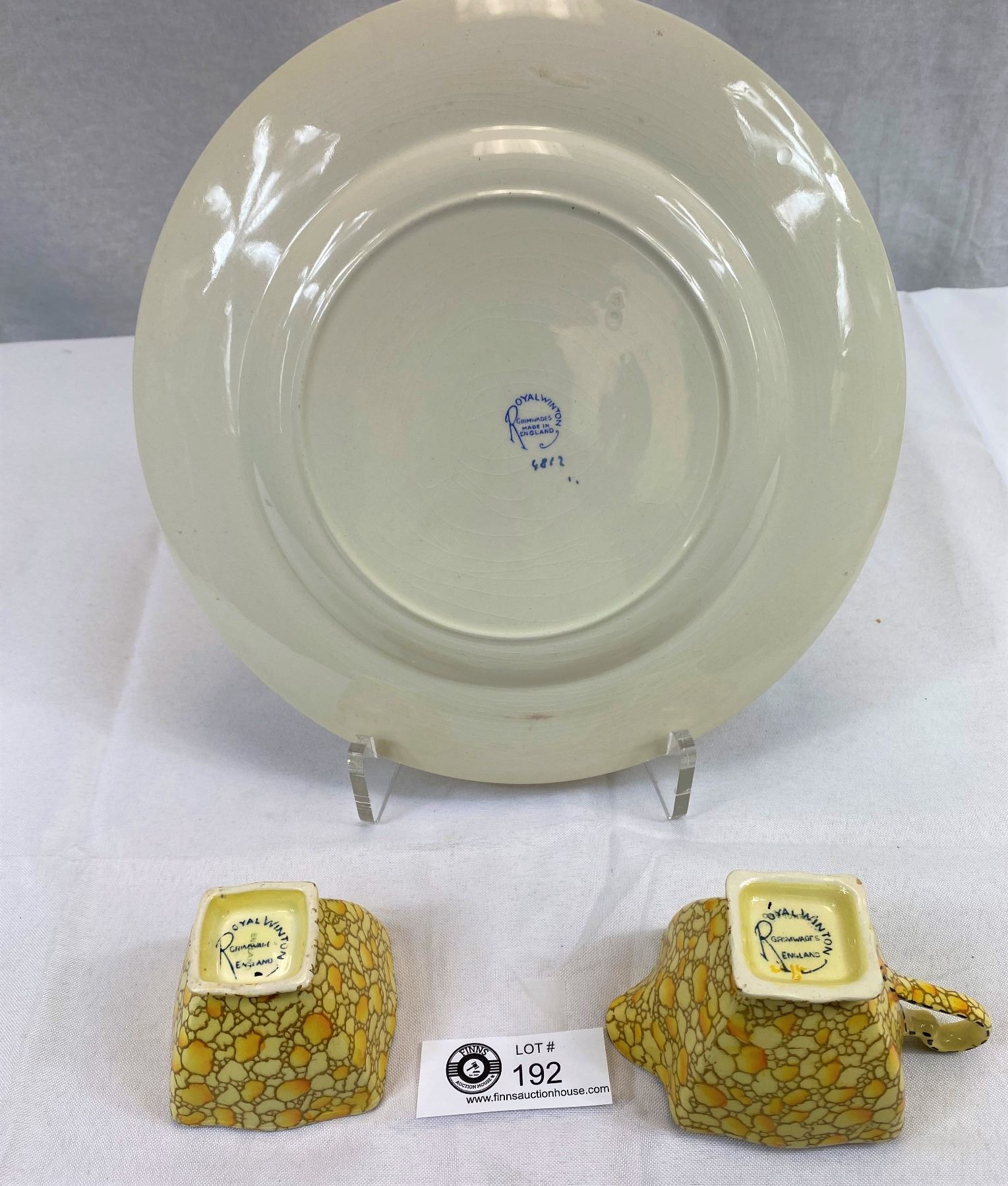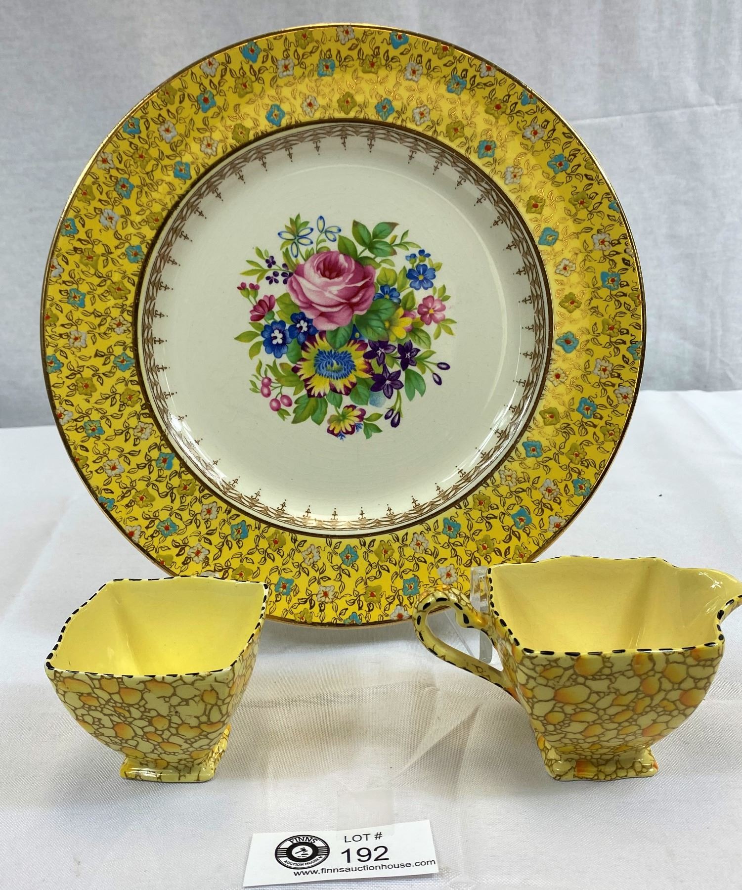 Vintage Royal Winton Grimwades Pebble Enamel Chintz Cream And Sugar And 10.5" Hand Painted Plate