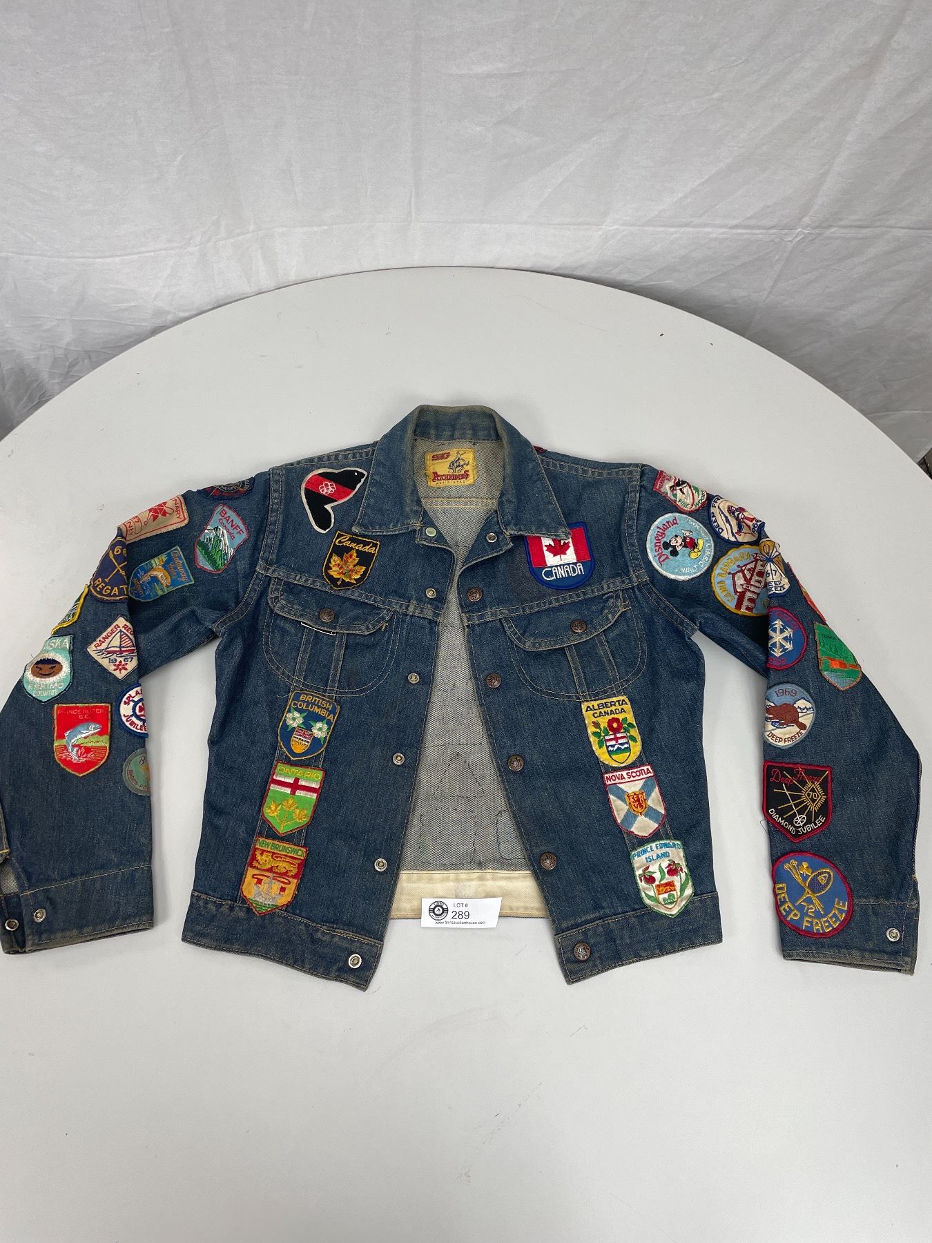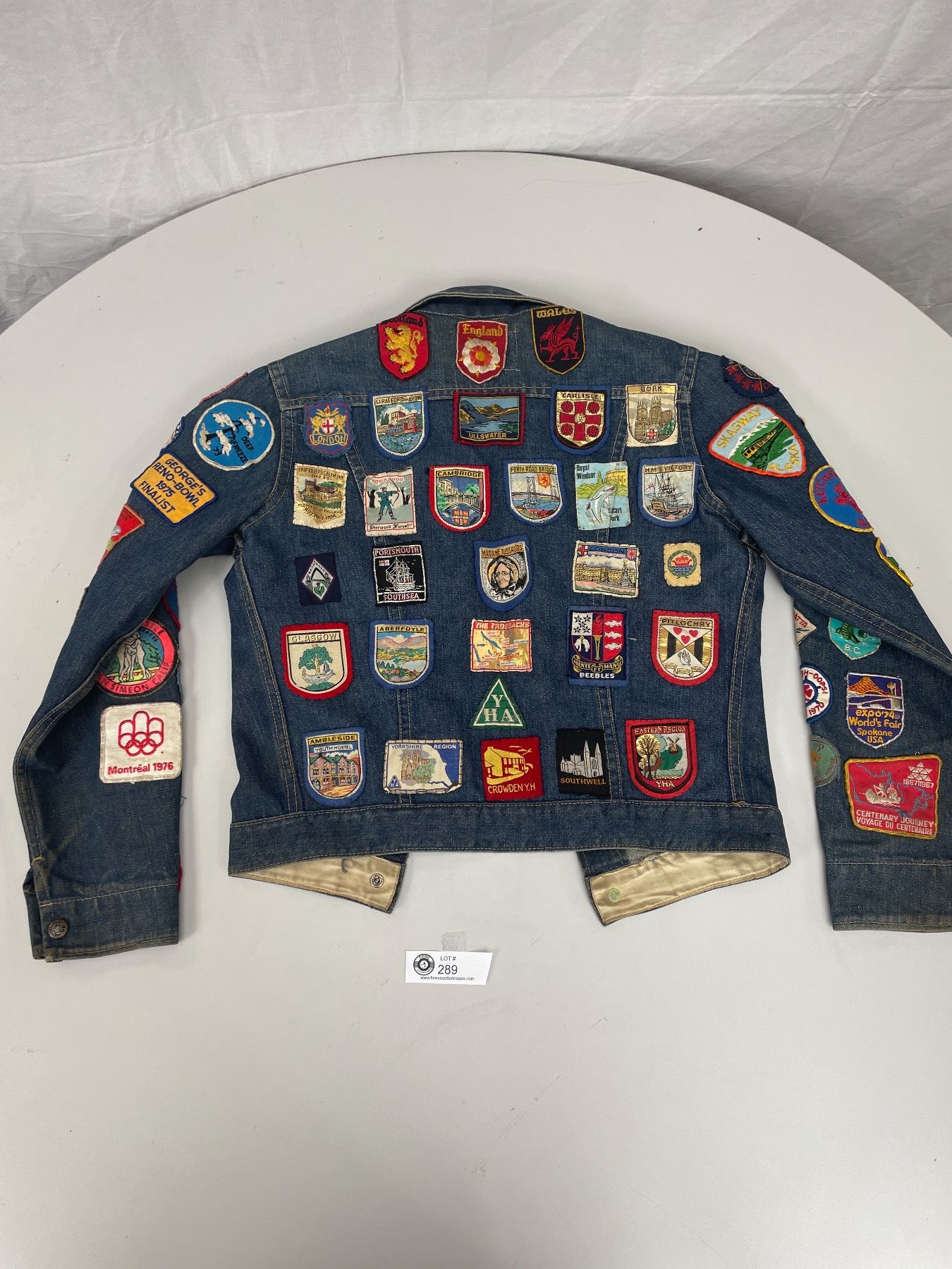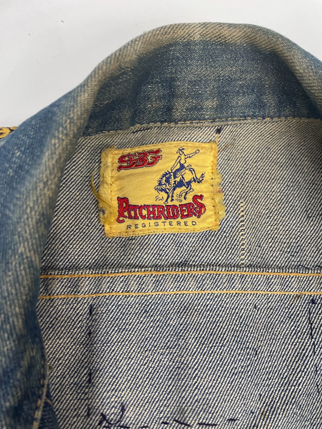 Vintage SVG Pitch Riders Jean Jacket Covered in Patches