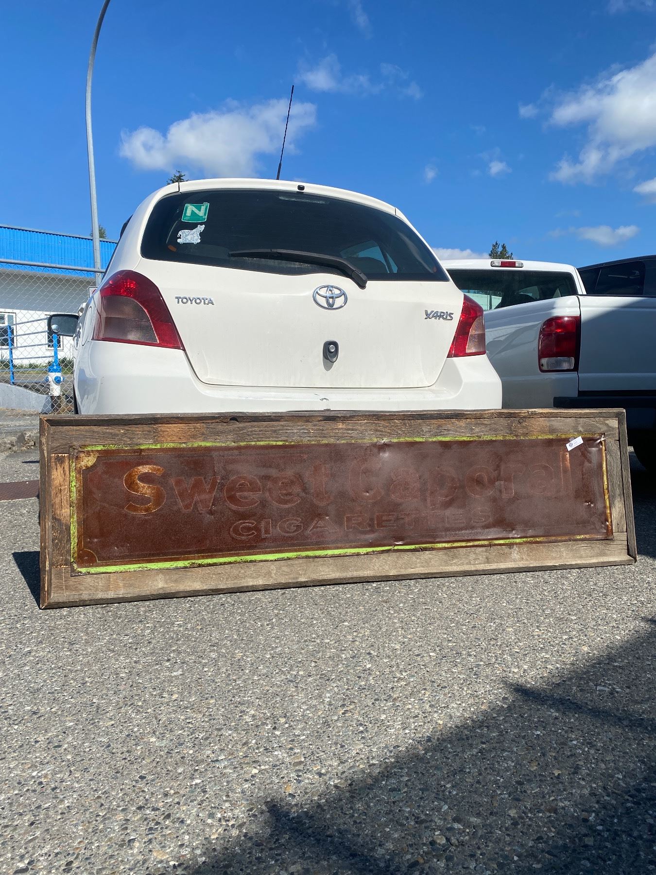 Vintage SWEET CAPORAL CIGARETTES SIGN Nicely Framed Faded But Displays Well and Framed No Shipping79X23