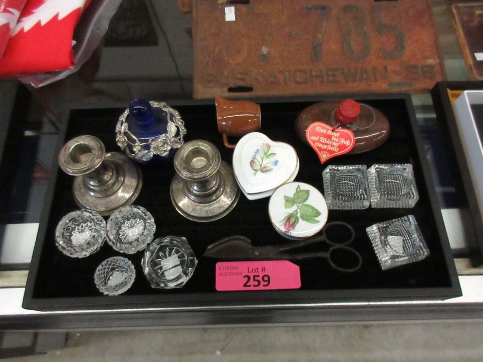 Wick trimmer, mini creamer, cobalt perfume bottle and more.