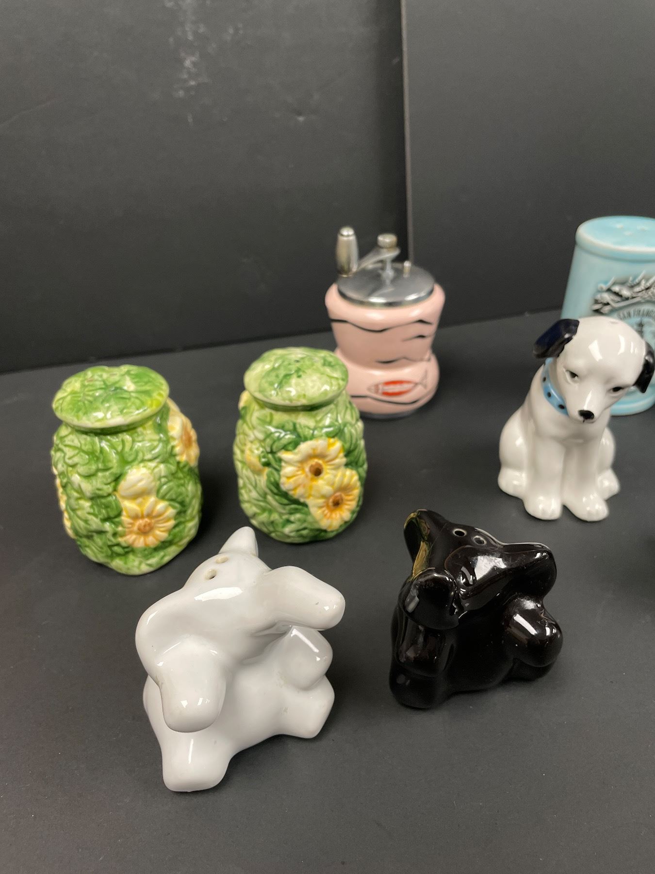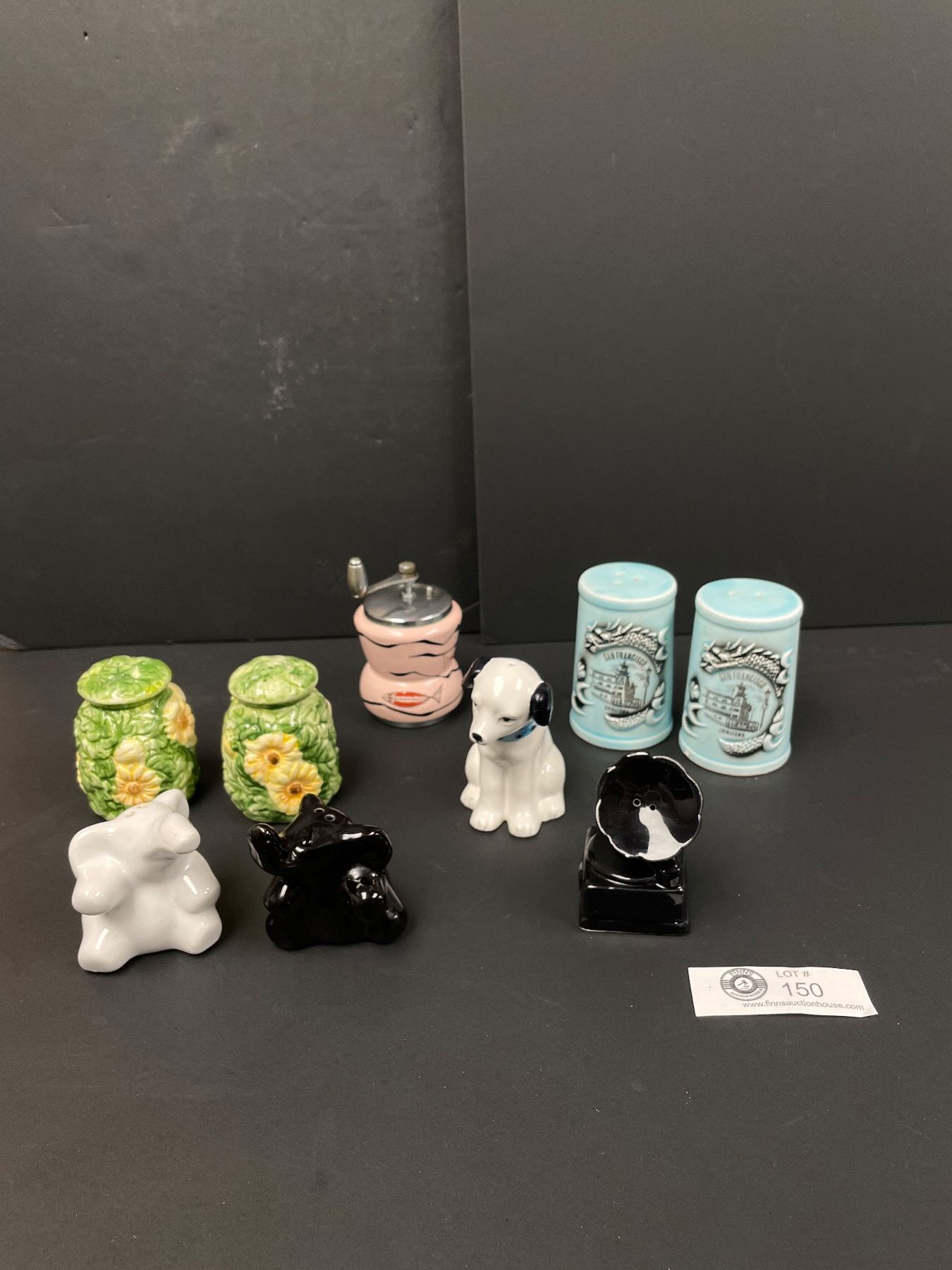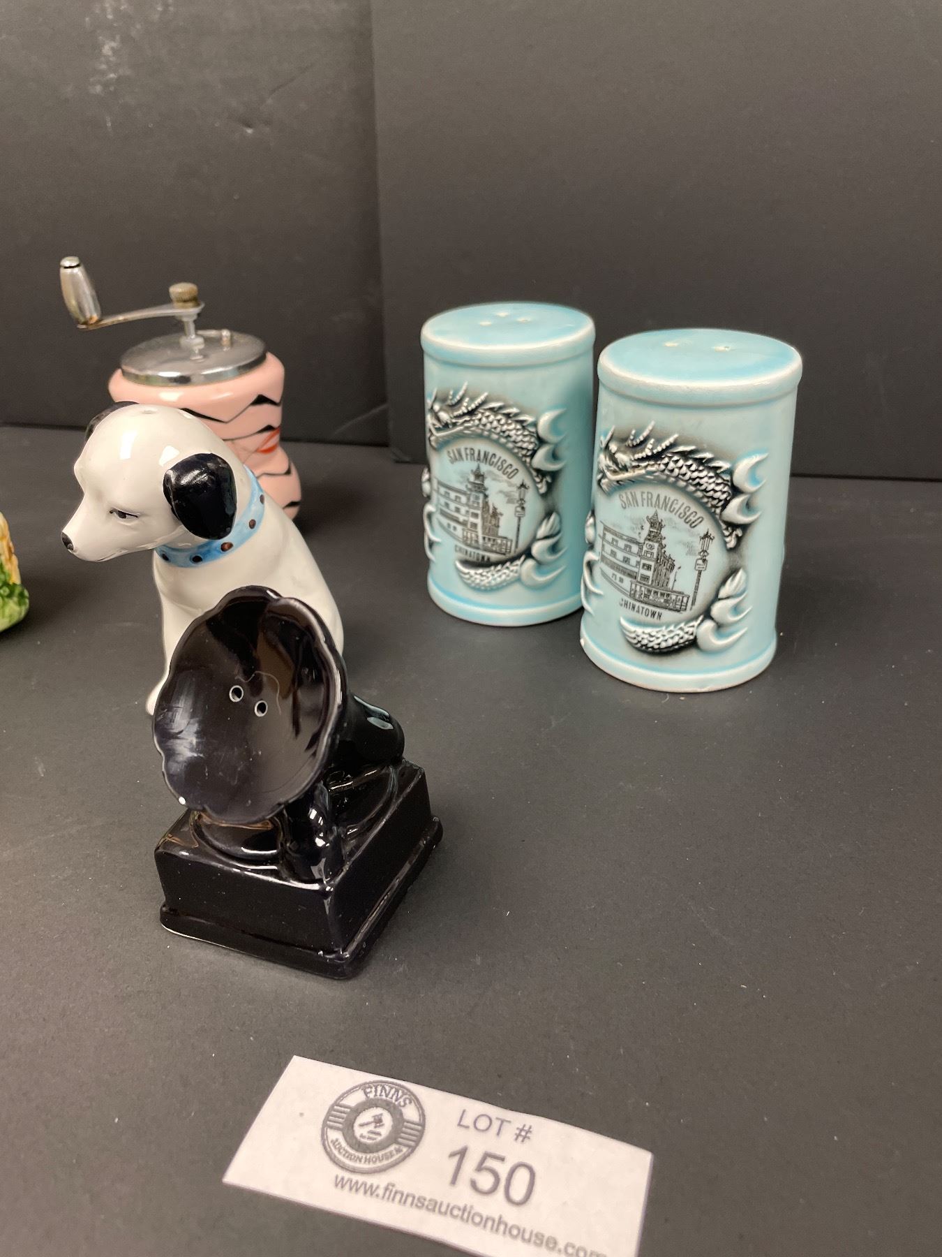 Vintage Salt and Pepper Lot - RCA Victor Nipper Master Voice, Pepper Grinder, San Francisco Chinatown and More
