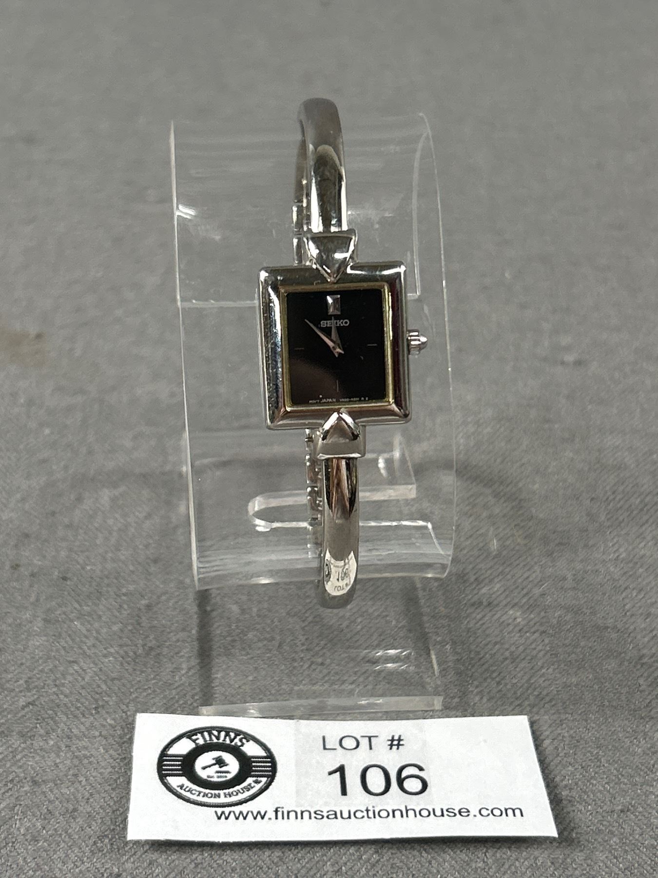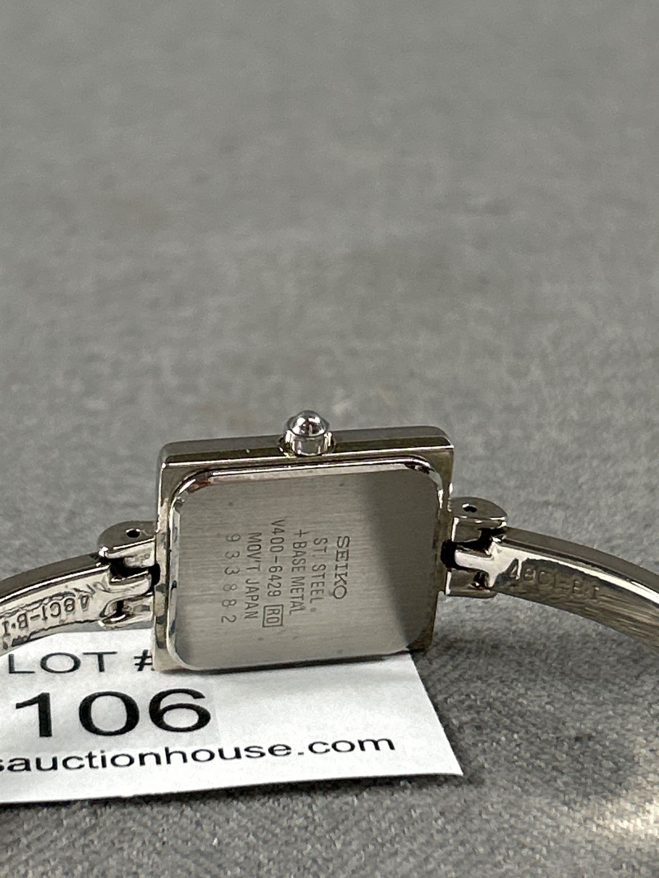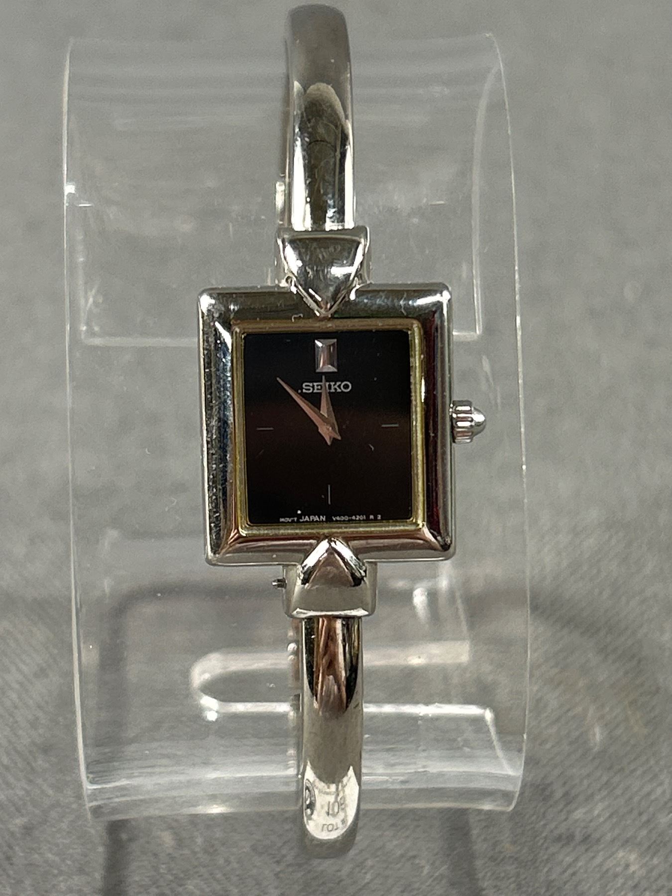 Vintage Seiko Watch Women Silver Tone Black Square Dial V400-6429 - New Battery, Keeping Great Time
