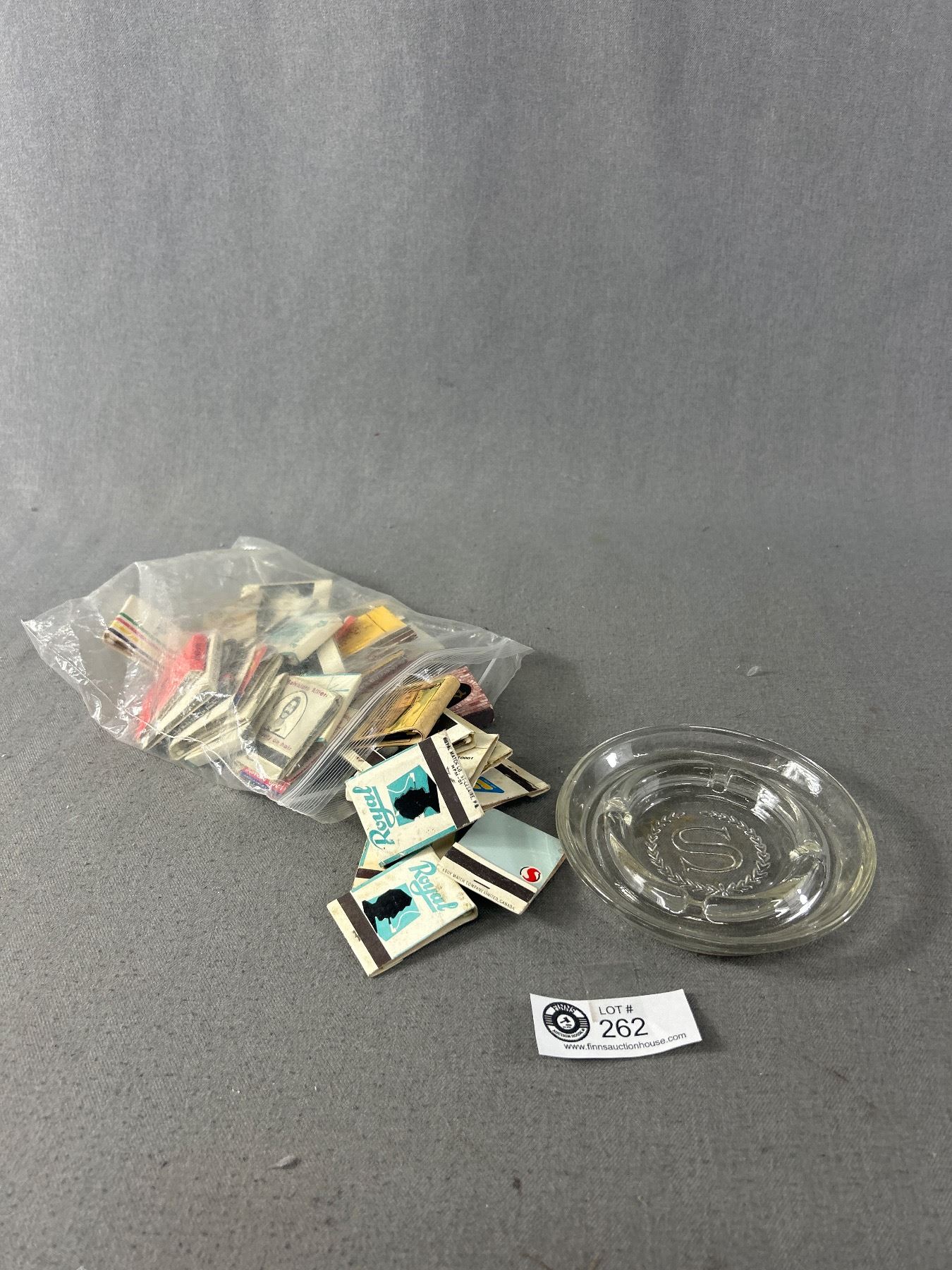 Vintage Sheraton Hotels Glass Ashtray & Nice Assortment Of Vintage Match Books