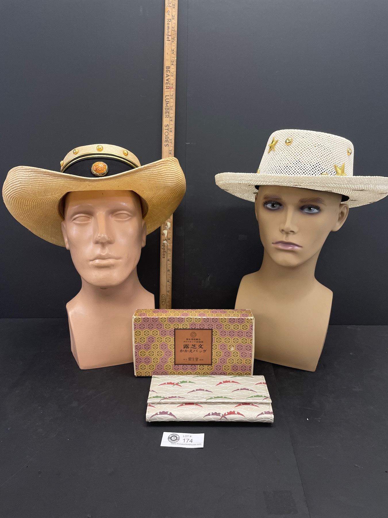 Vintage Shiseido Bifold Clutch with Original Box & Designer Woven Hats