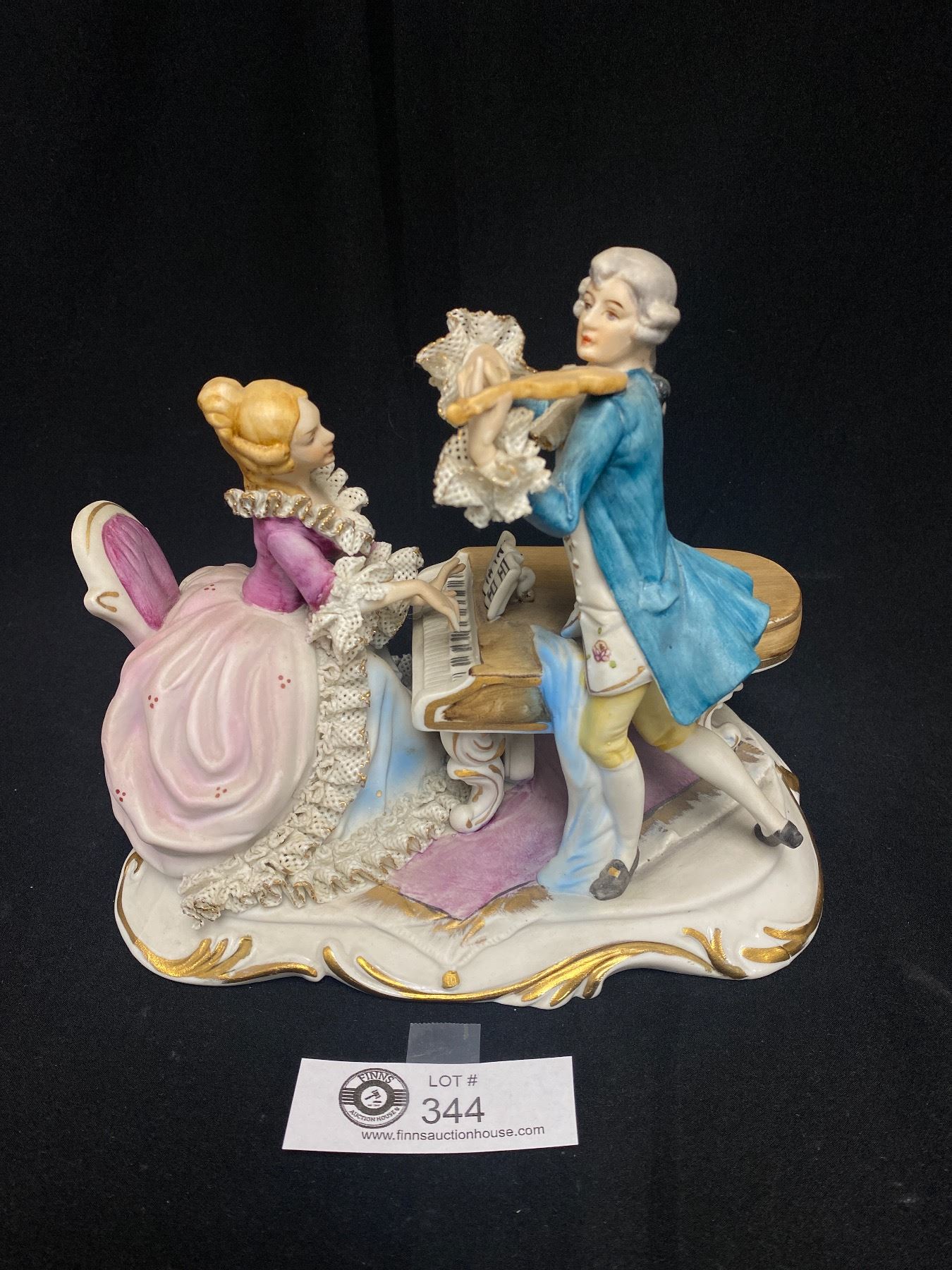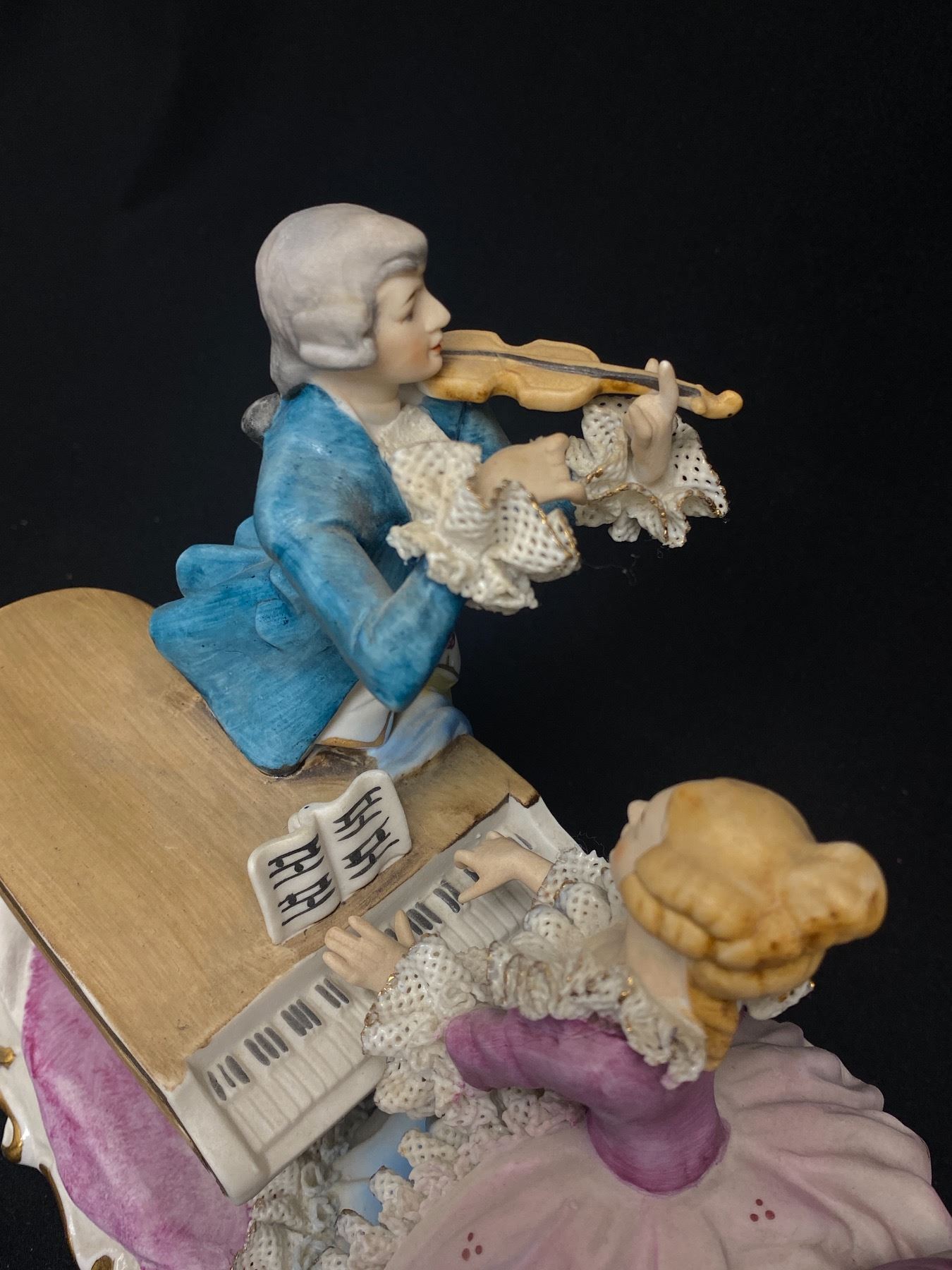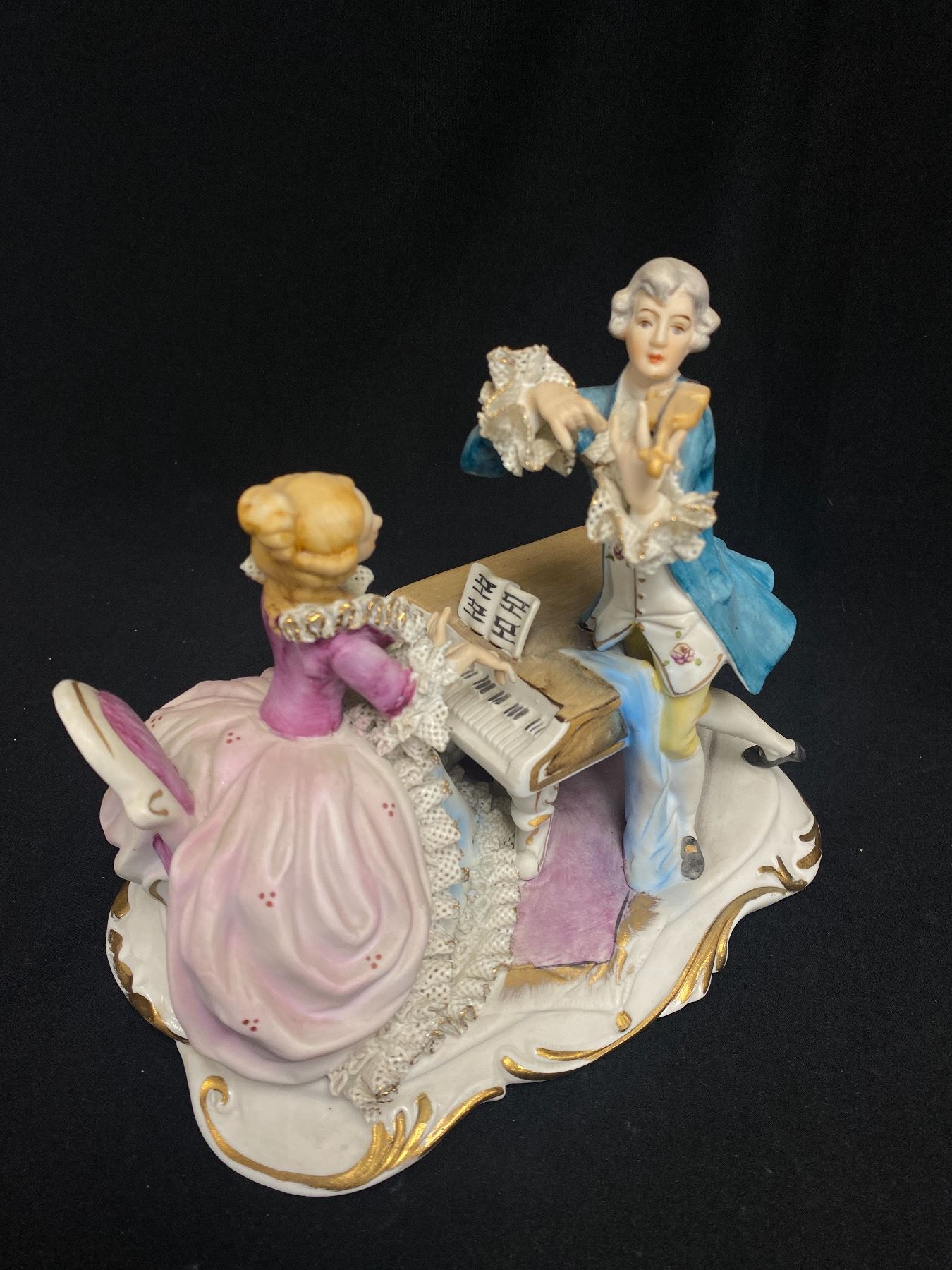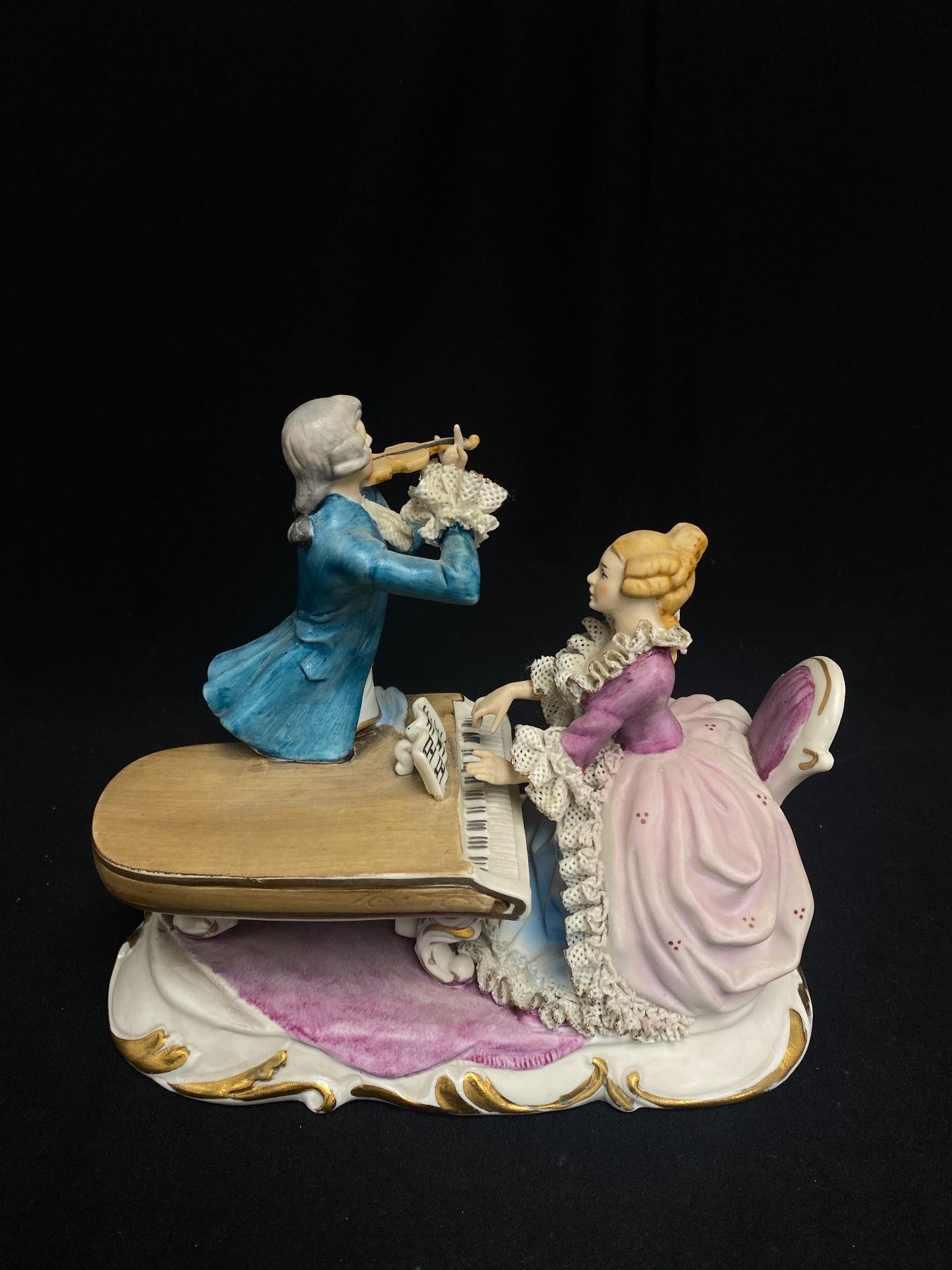 Vintage Signed Musical Couple Figure. Man is Missing Bow from Violin 9" W x 8" H
