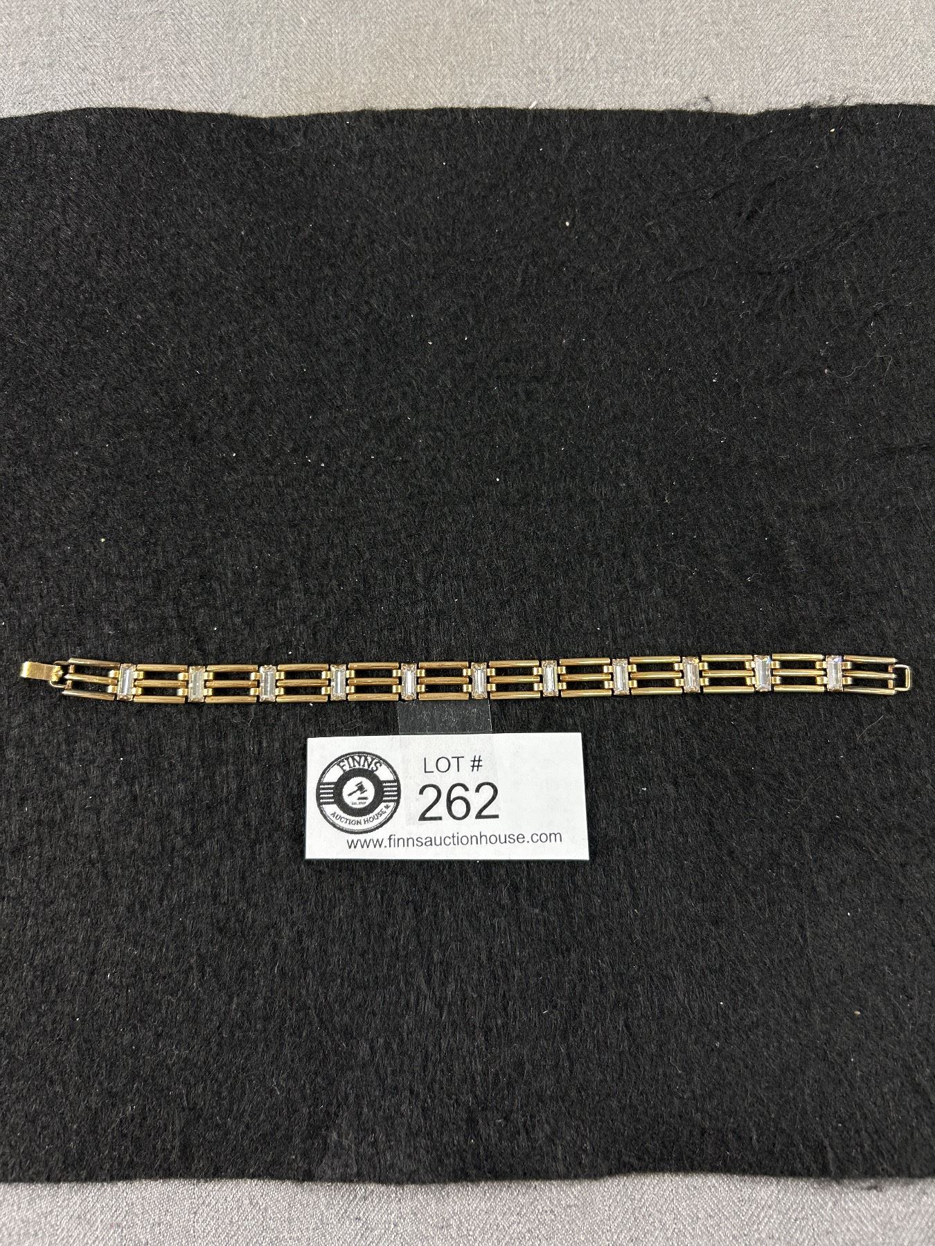 Vintage Signed Simmons Gold Bracelet with Clear Baguette Stones