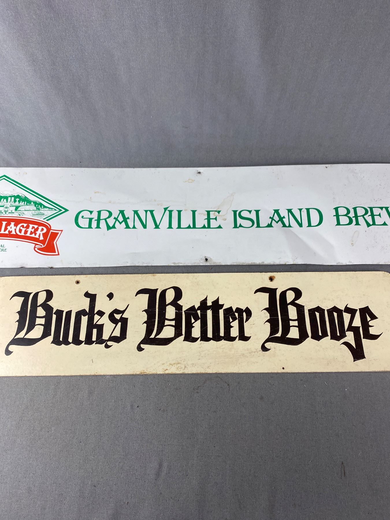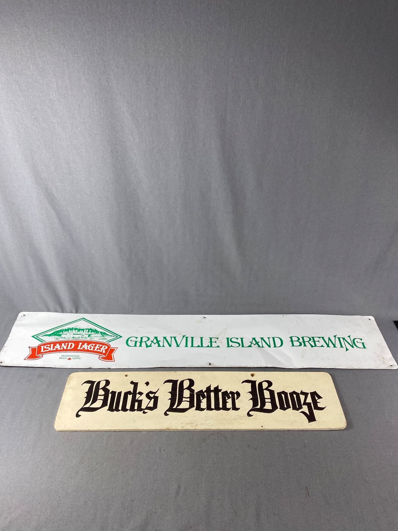Vintage Signs - "Buck's Better Booze" 7.5" x 30" Wood & 47" x 9" Tin Grandville Island Brewing. NO SHIPPING