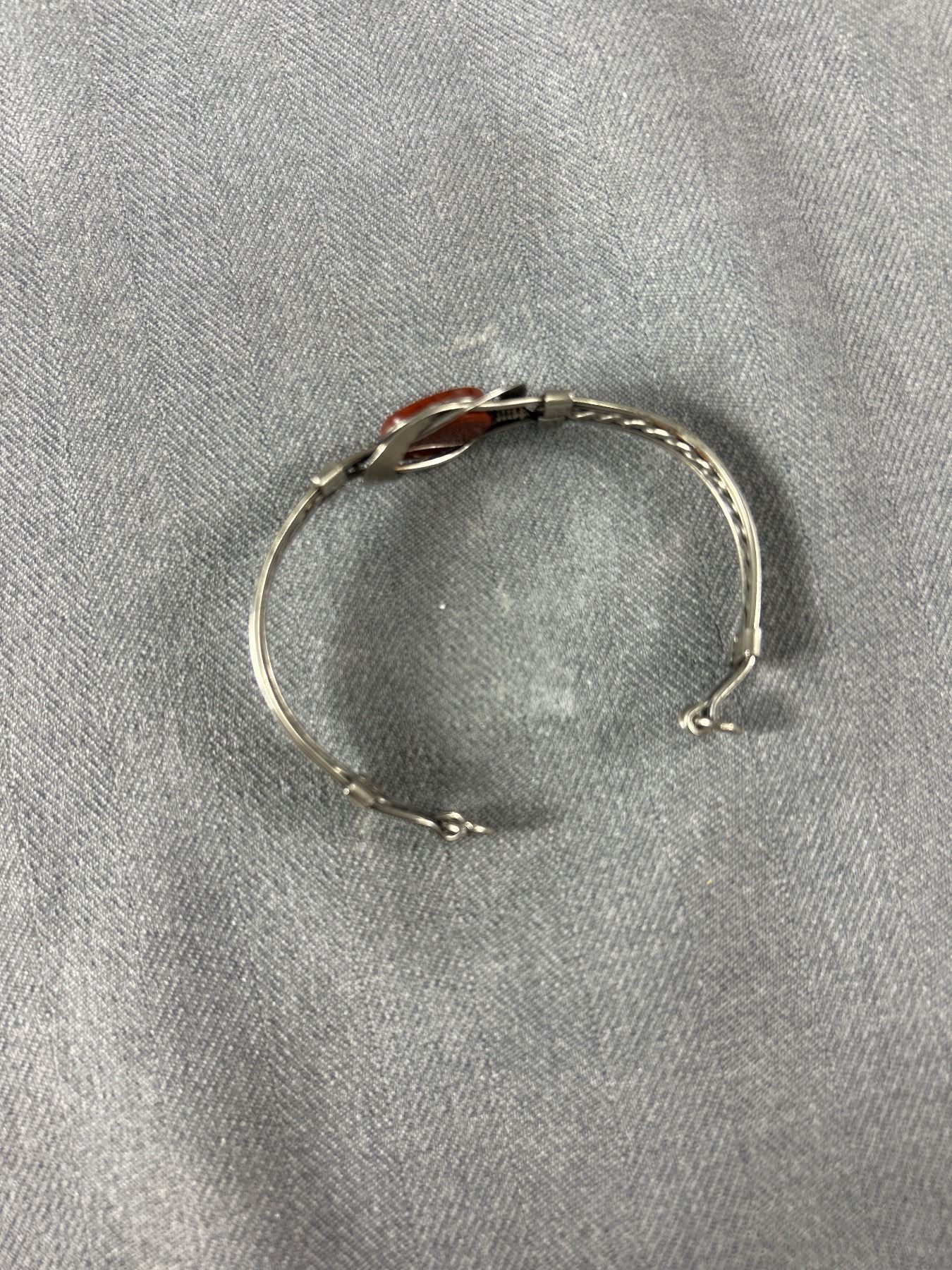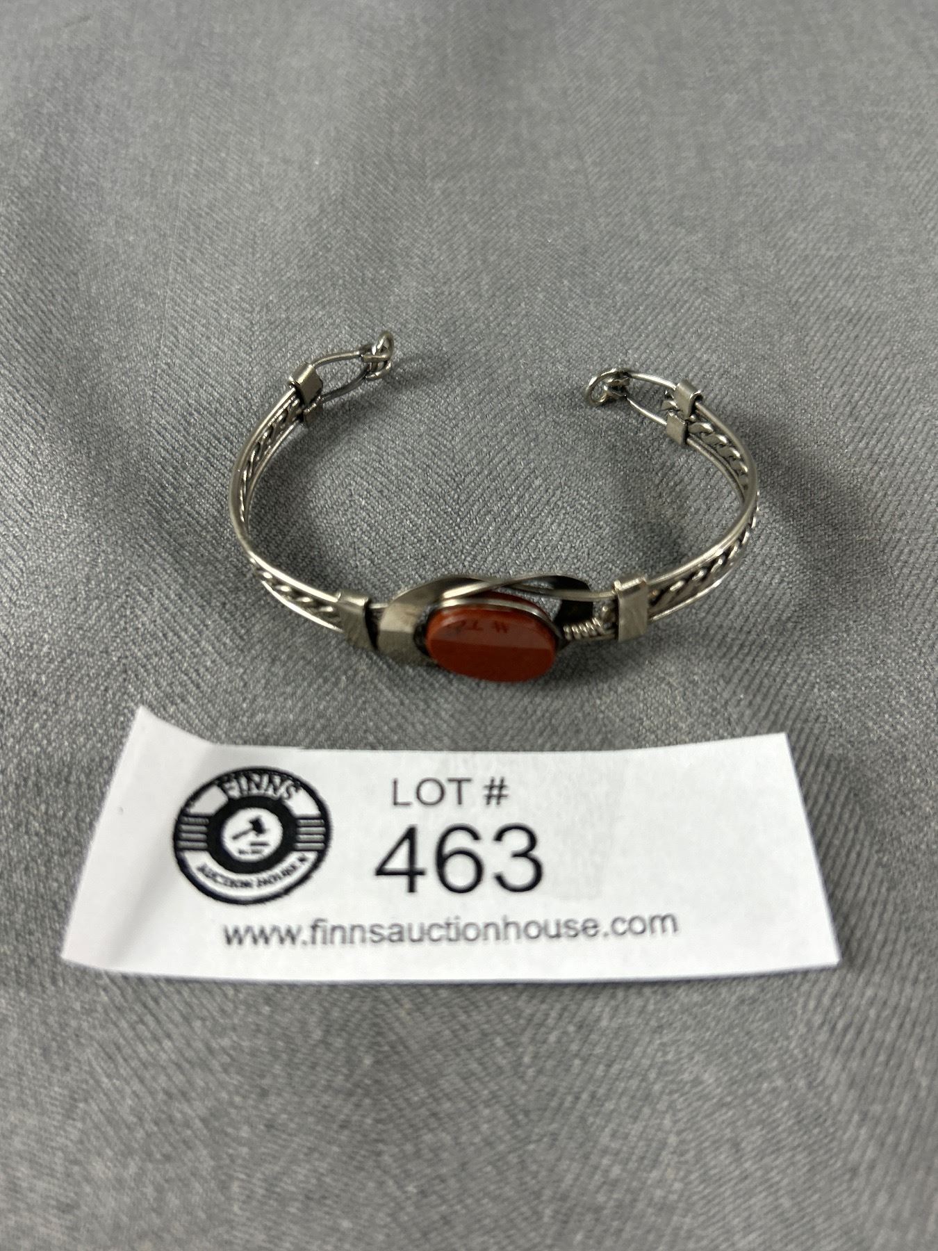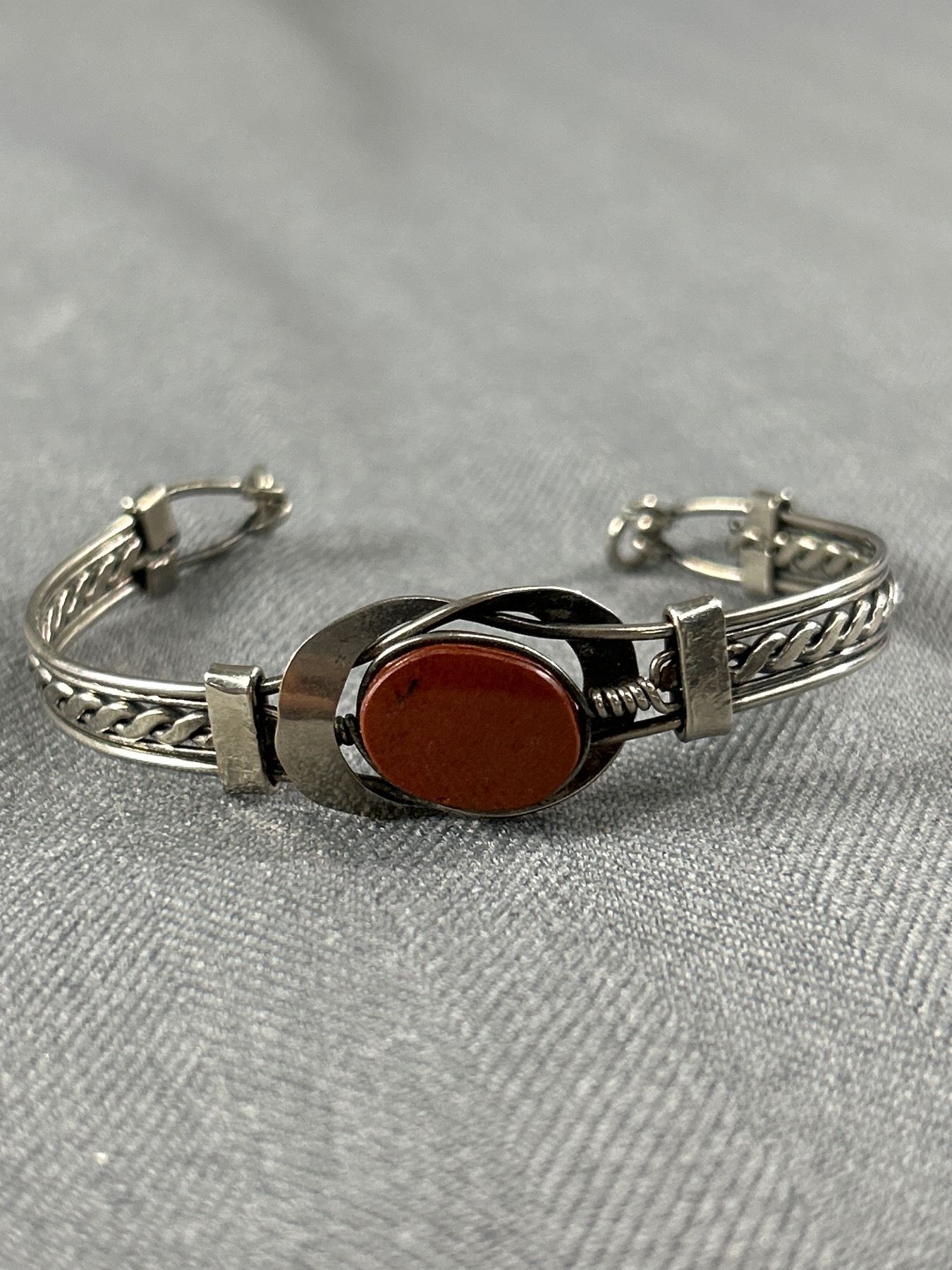 Vintage Silver Bracelet with Brown Jasper Stone Center