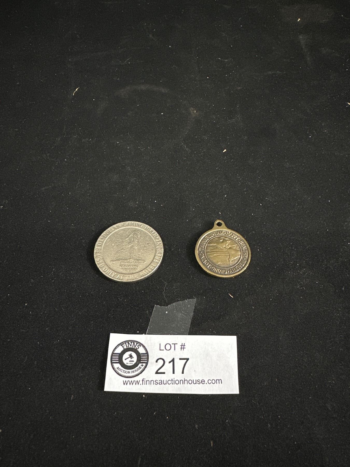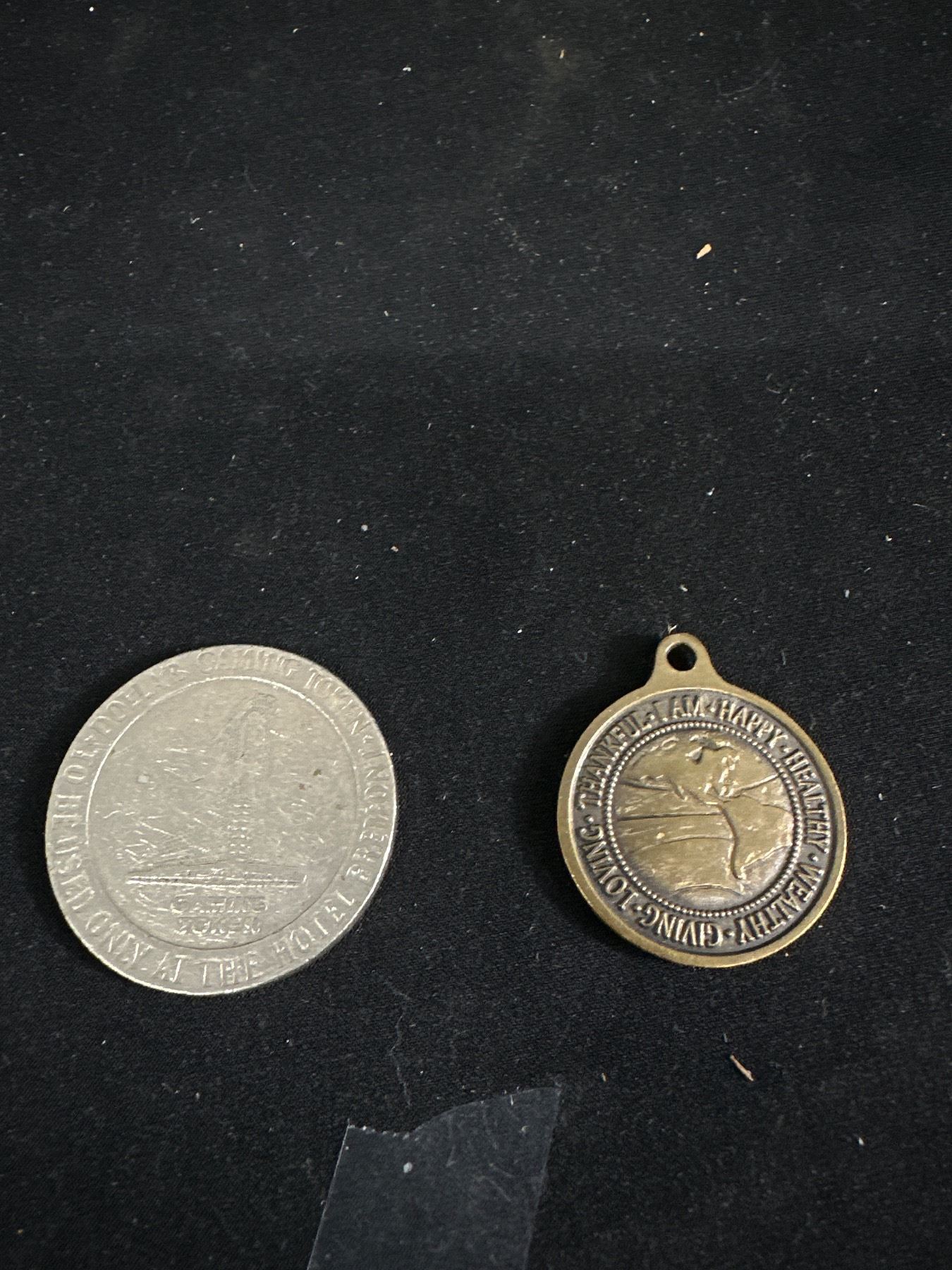 Vintage Silver Dollar Gaming Token, Fremont, Las Vegas and Bronze Pendant
