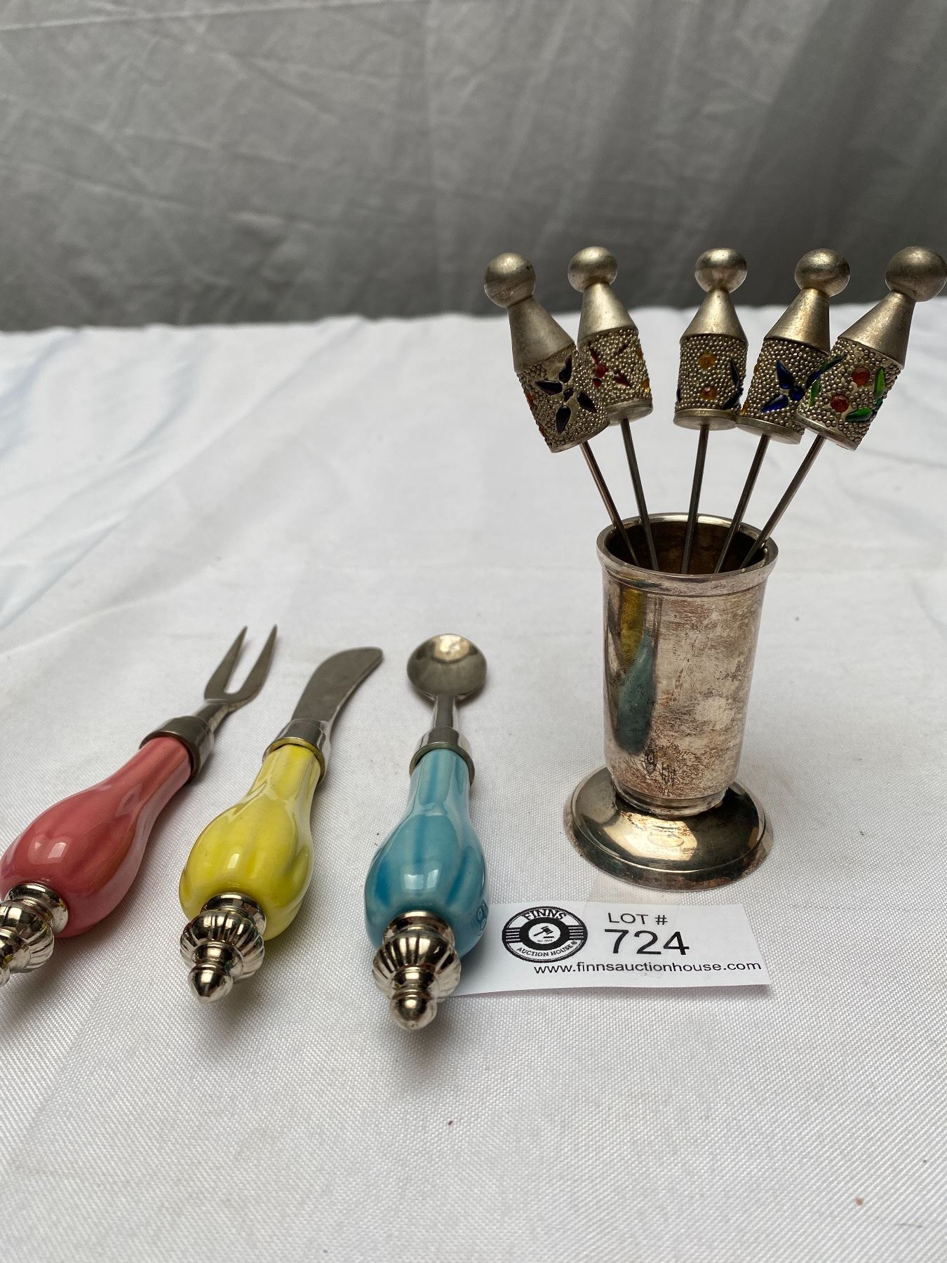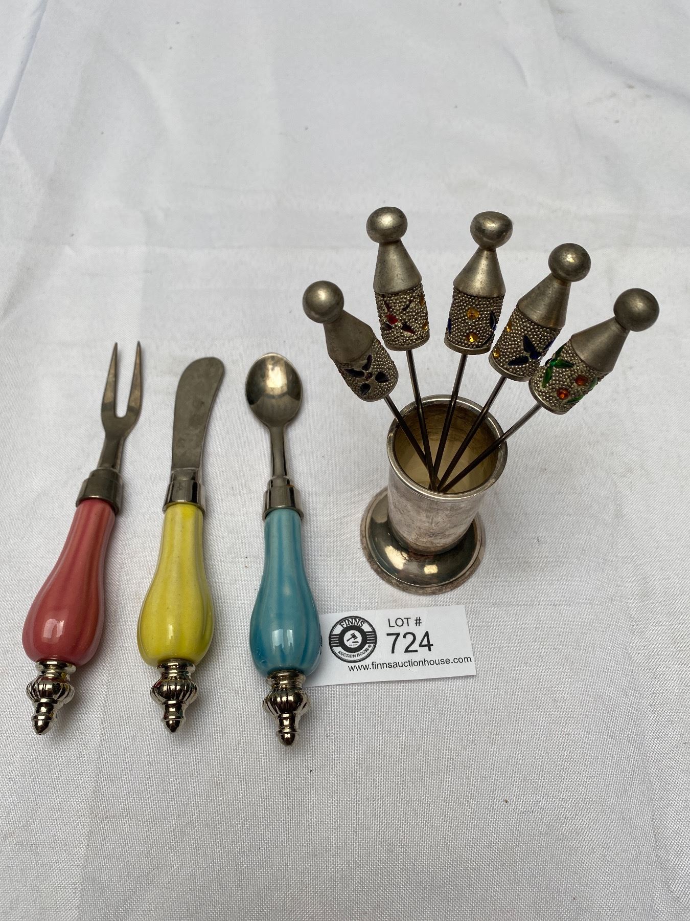 Vintage Silver Hors D'Oeures Forks with Container and Beautiful Appetizer Fork-knife-Spoon Set, Erc
