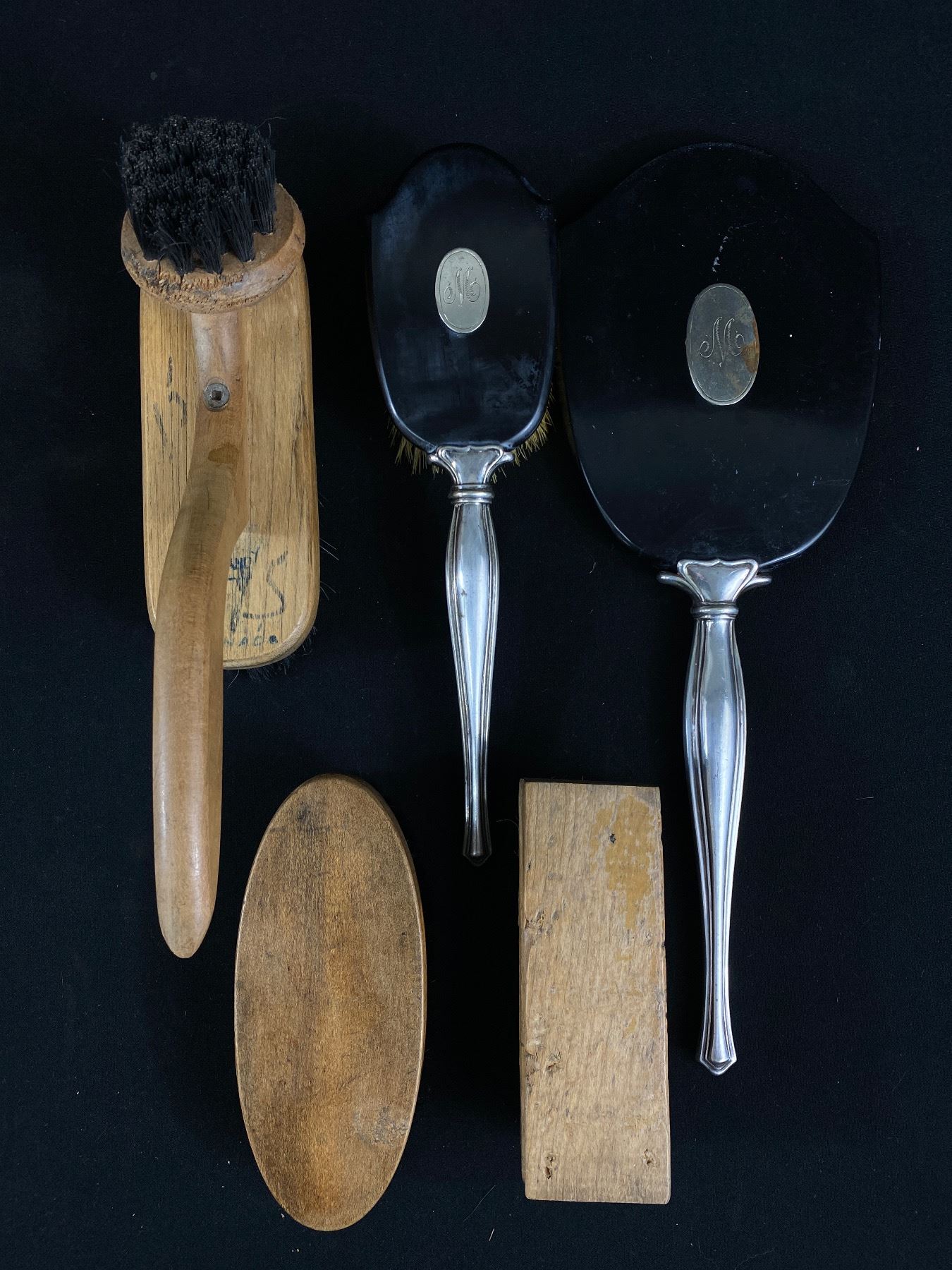 Vintage Silver Vanity Set-Brush & Mirror, Shoe/Boot Brushes