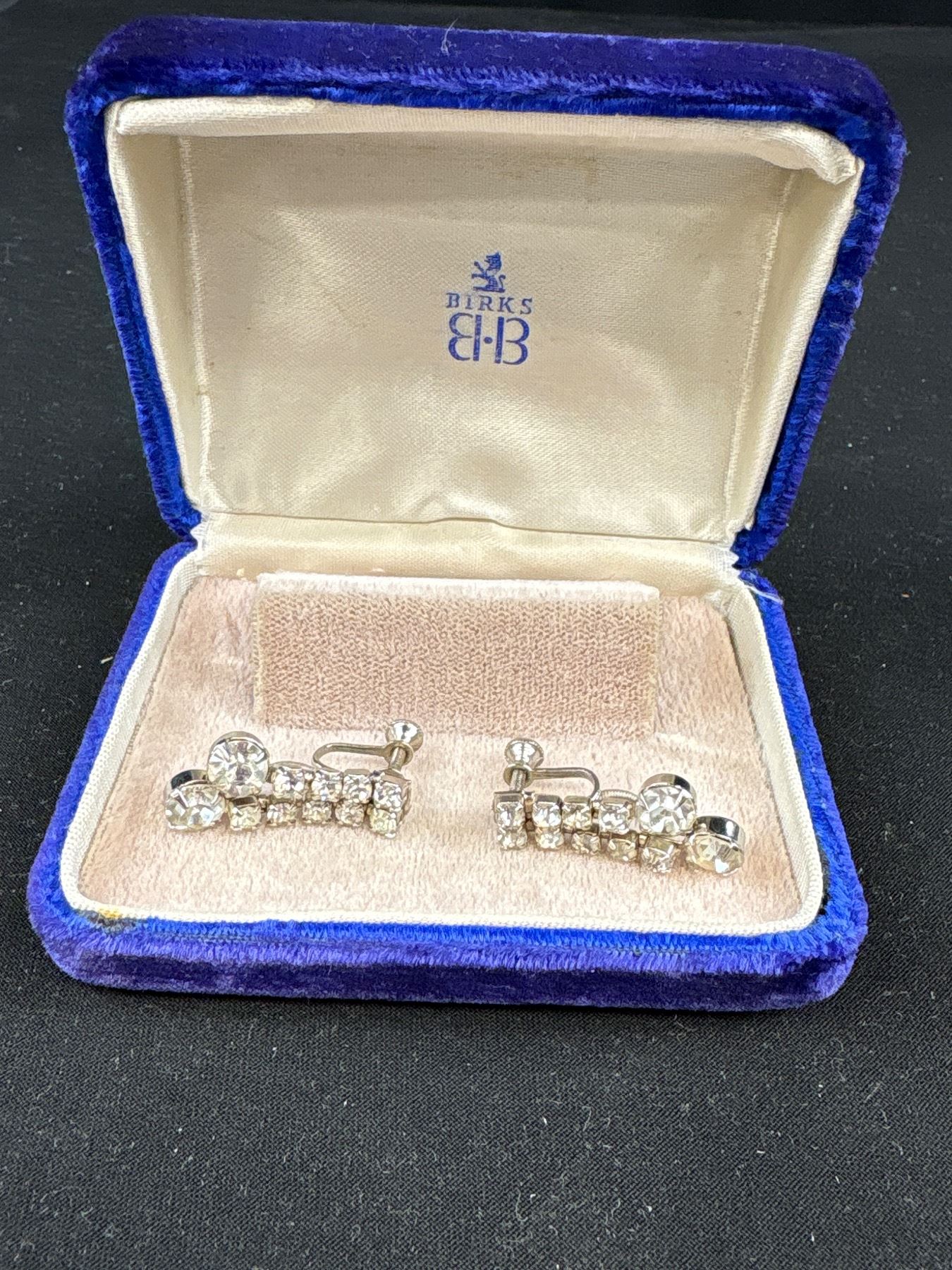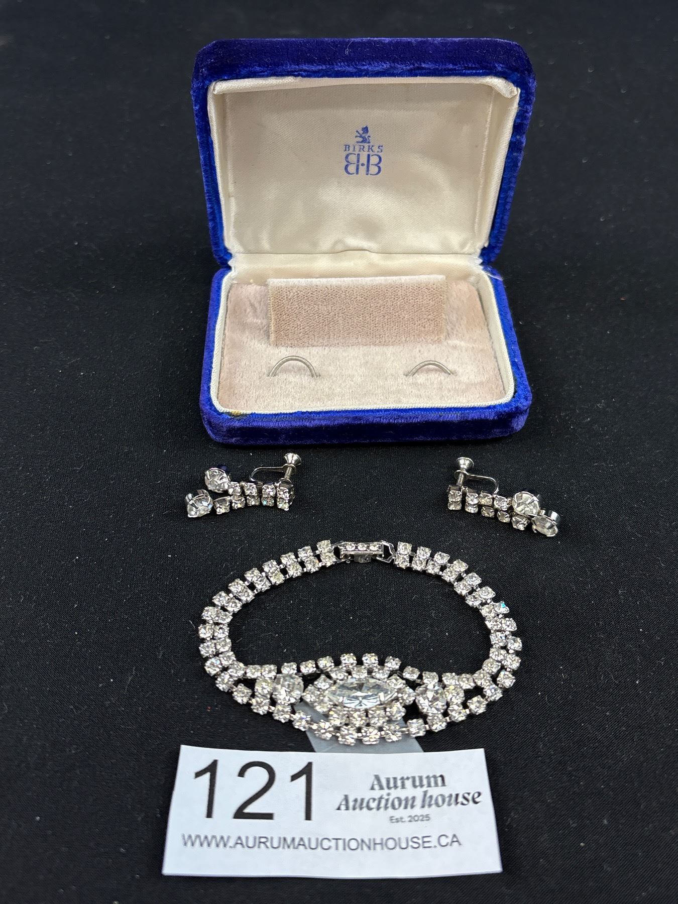 Vintage Simulated Diamond Bracelet + Earrings Set BIRKS Box