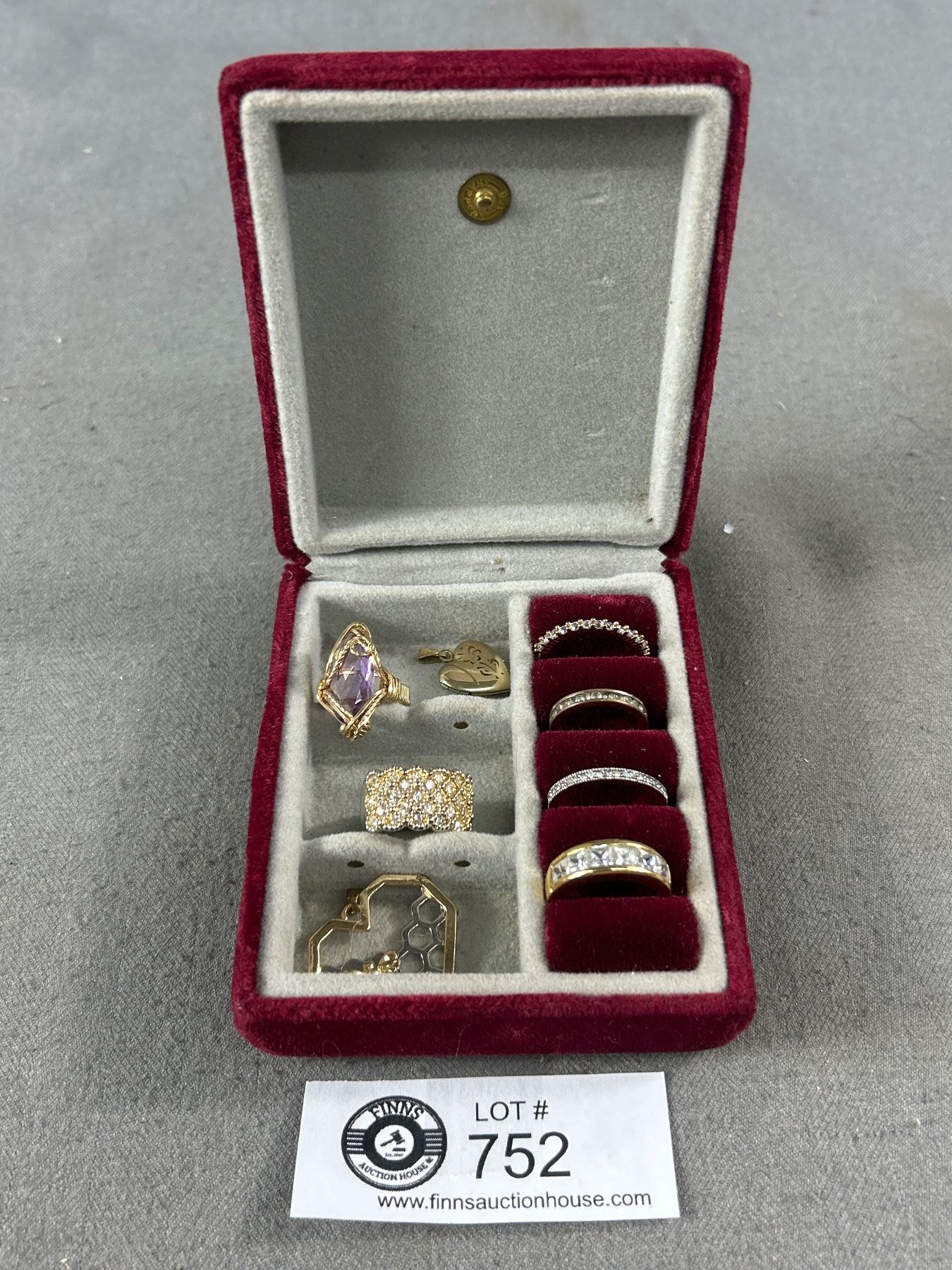 Vintage Small Jewelry Box w/ Very Nice Selection of Rings and Pendants, All Gold Tone