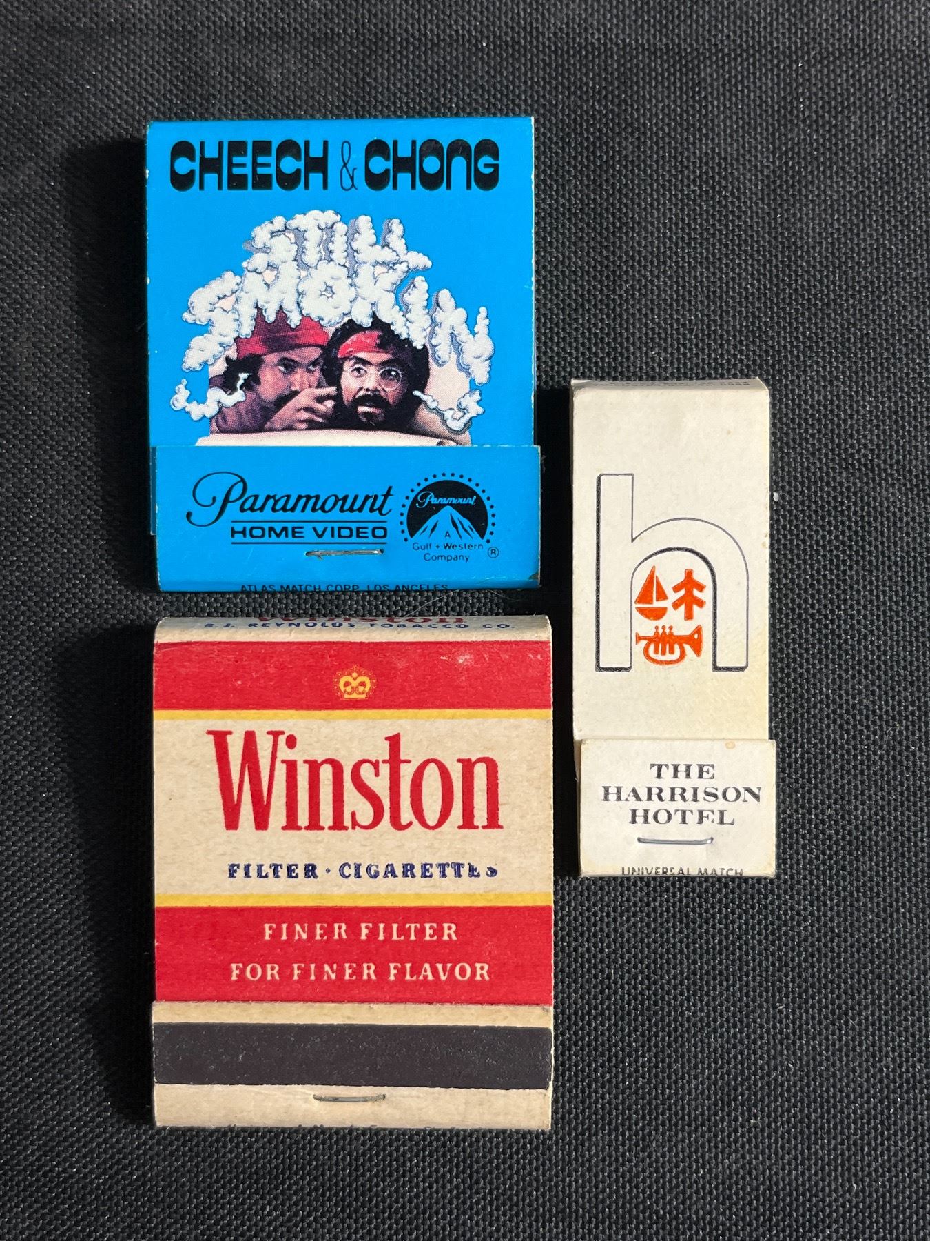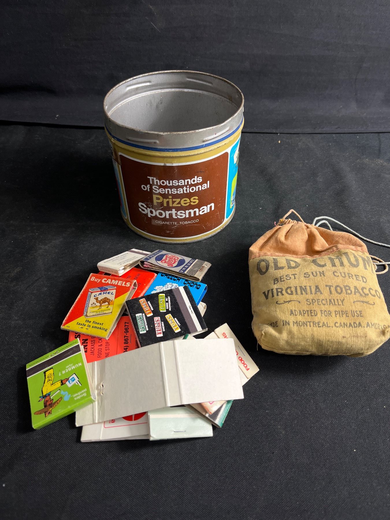 Vintage Smoker's Lot - Old Chum Virginia Tobacco Bag, Sportsman Tin & Assorted Matchbooks