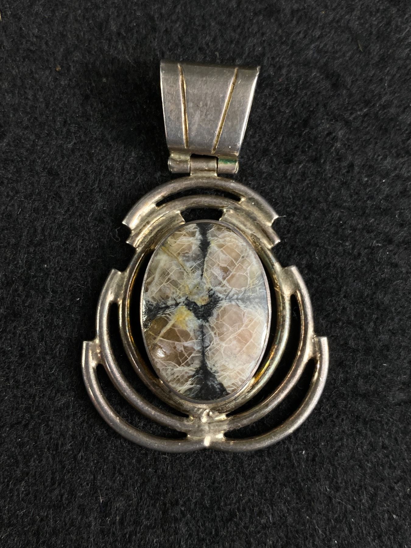 Vintage Solid Sterling Silver with Unusual Genuine Stone Pendant Marked 970