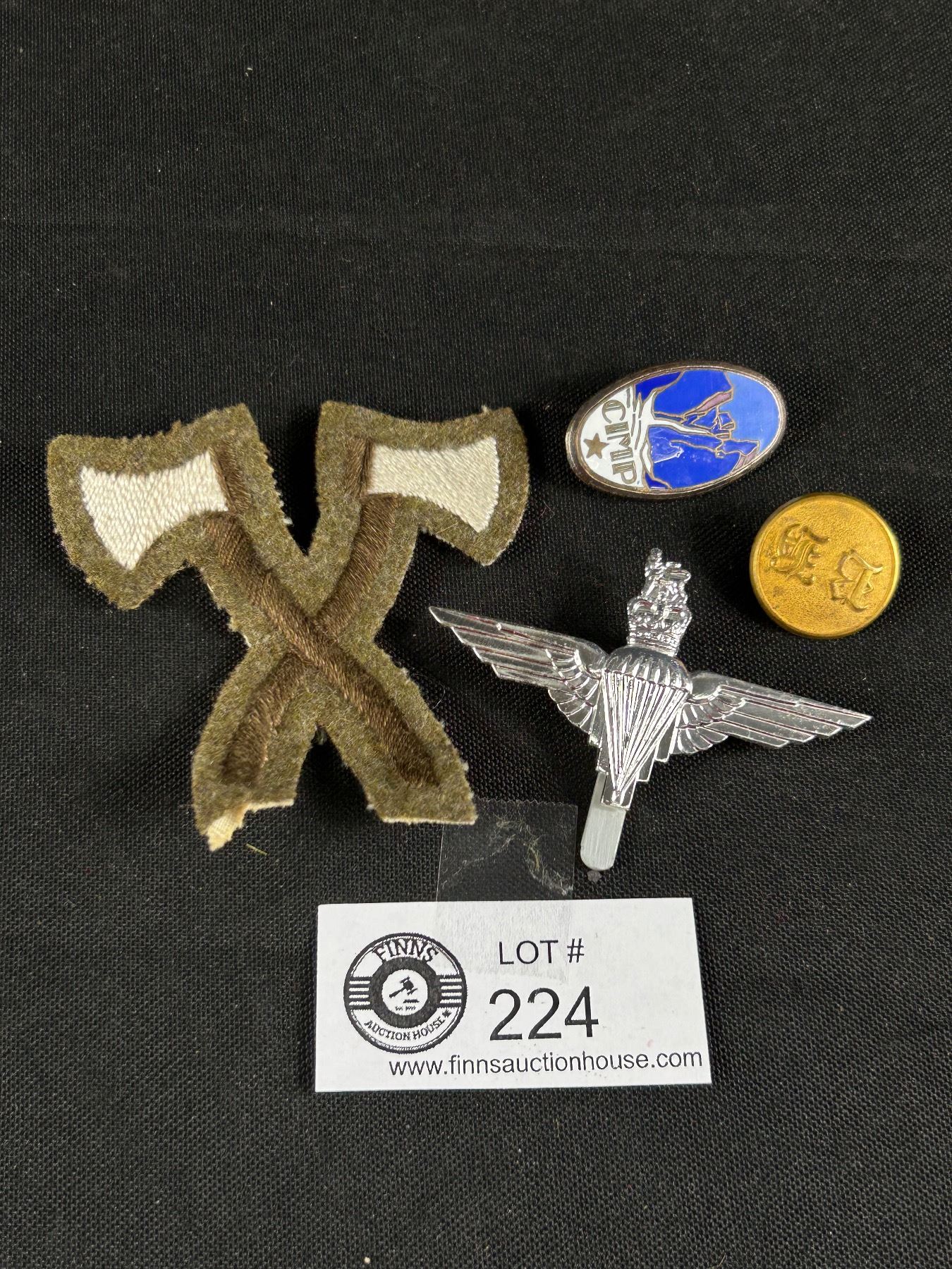 Vintage Special Arms Collection - Pyrenees Mtn Training Pin, Parachute Regiment Pin, Army Pioneer Patch & BH Button