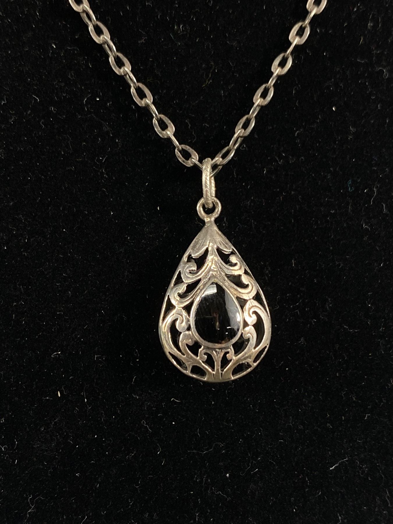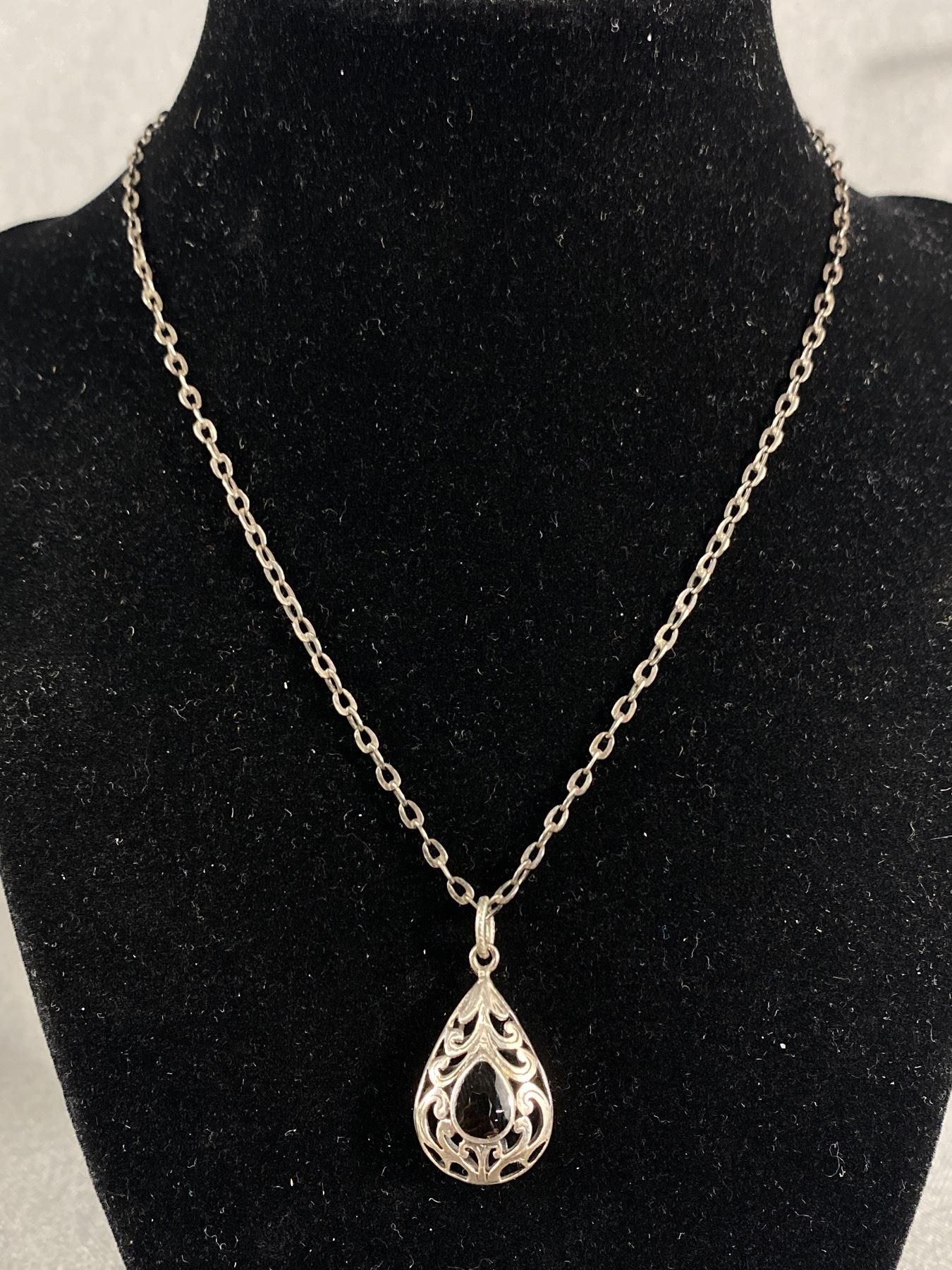Vintage Sterling Silver Black Onyx stones Pendant & Chain Necklace