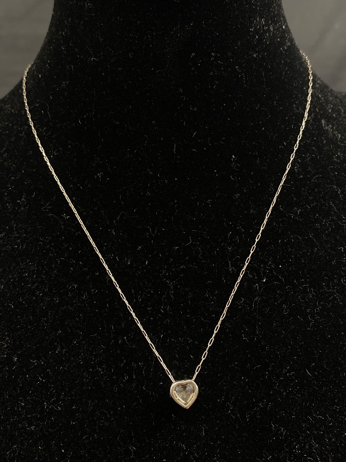 Vintage Sterling Silver Chain & Pendant w/Clear Heart Shaped Stone