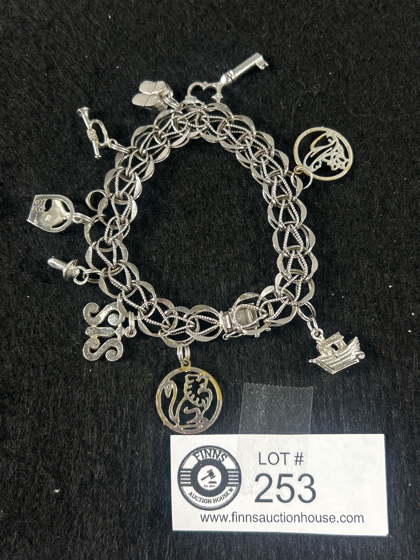 Vintage Sterling Silver Charm Bracelet with 9 Charms