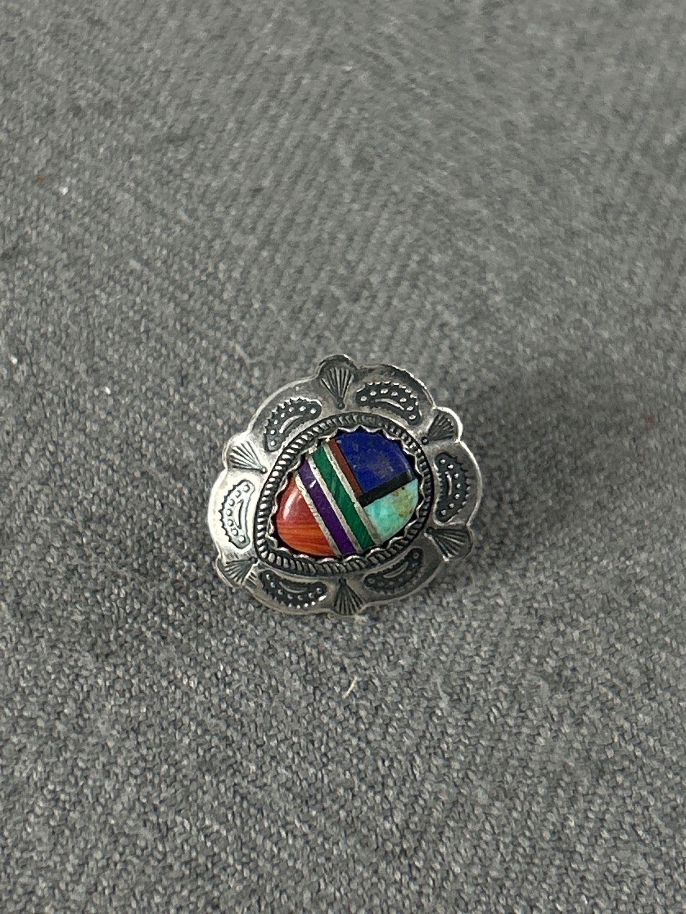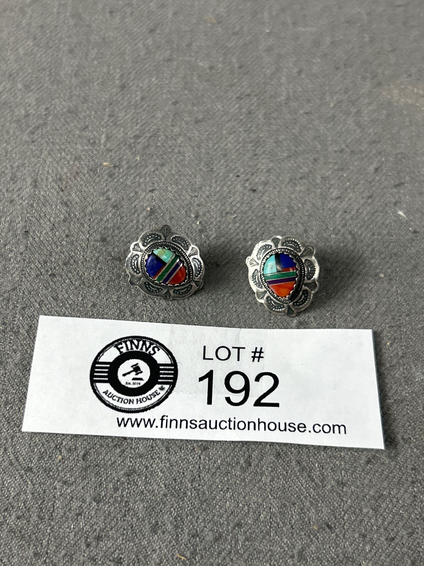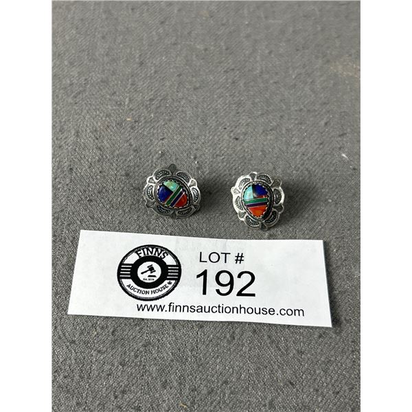 Vintage Sterling Silver Earrings with Multi Stone Inlay Signed O.T.O Marked Sterling
