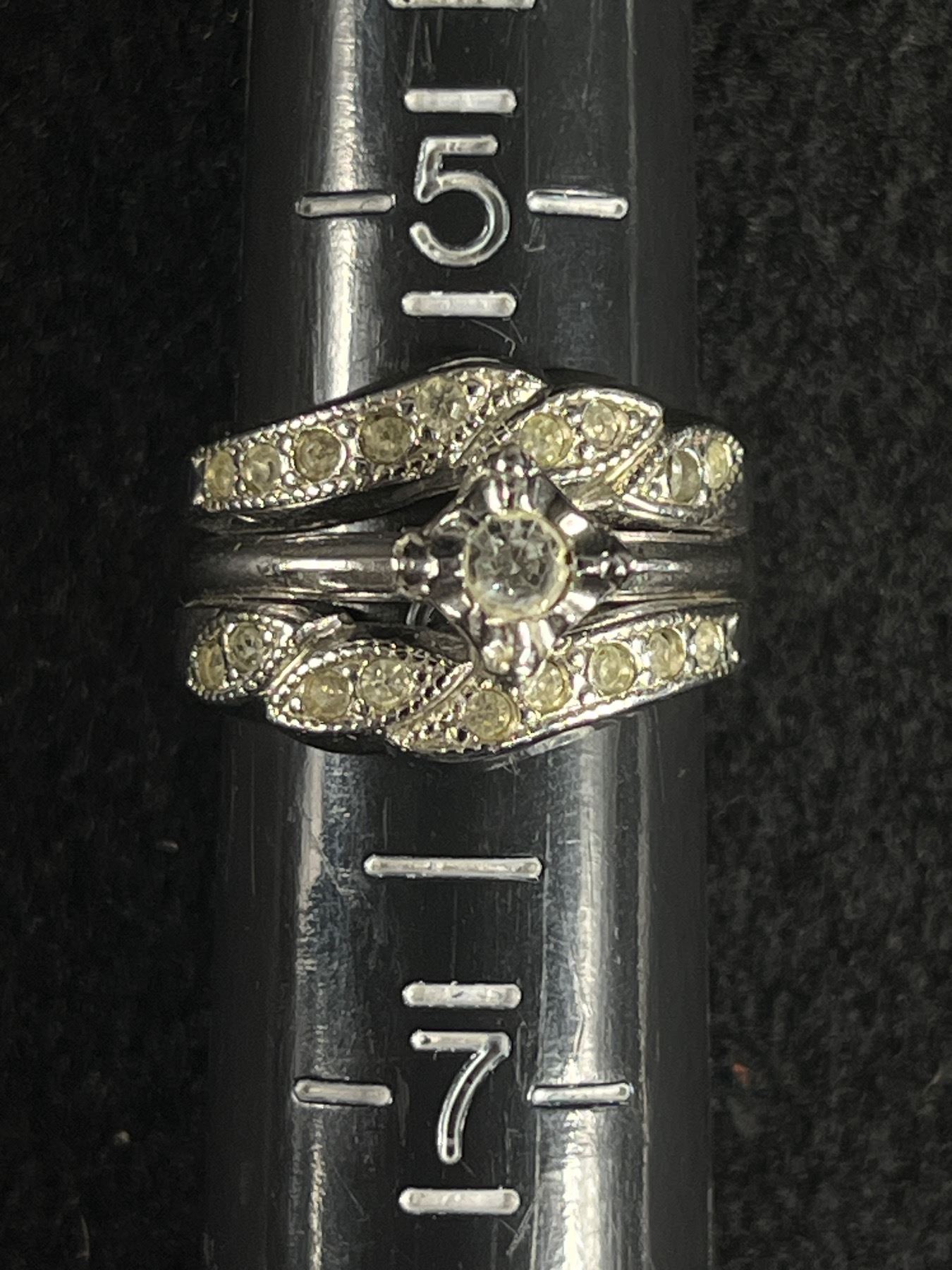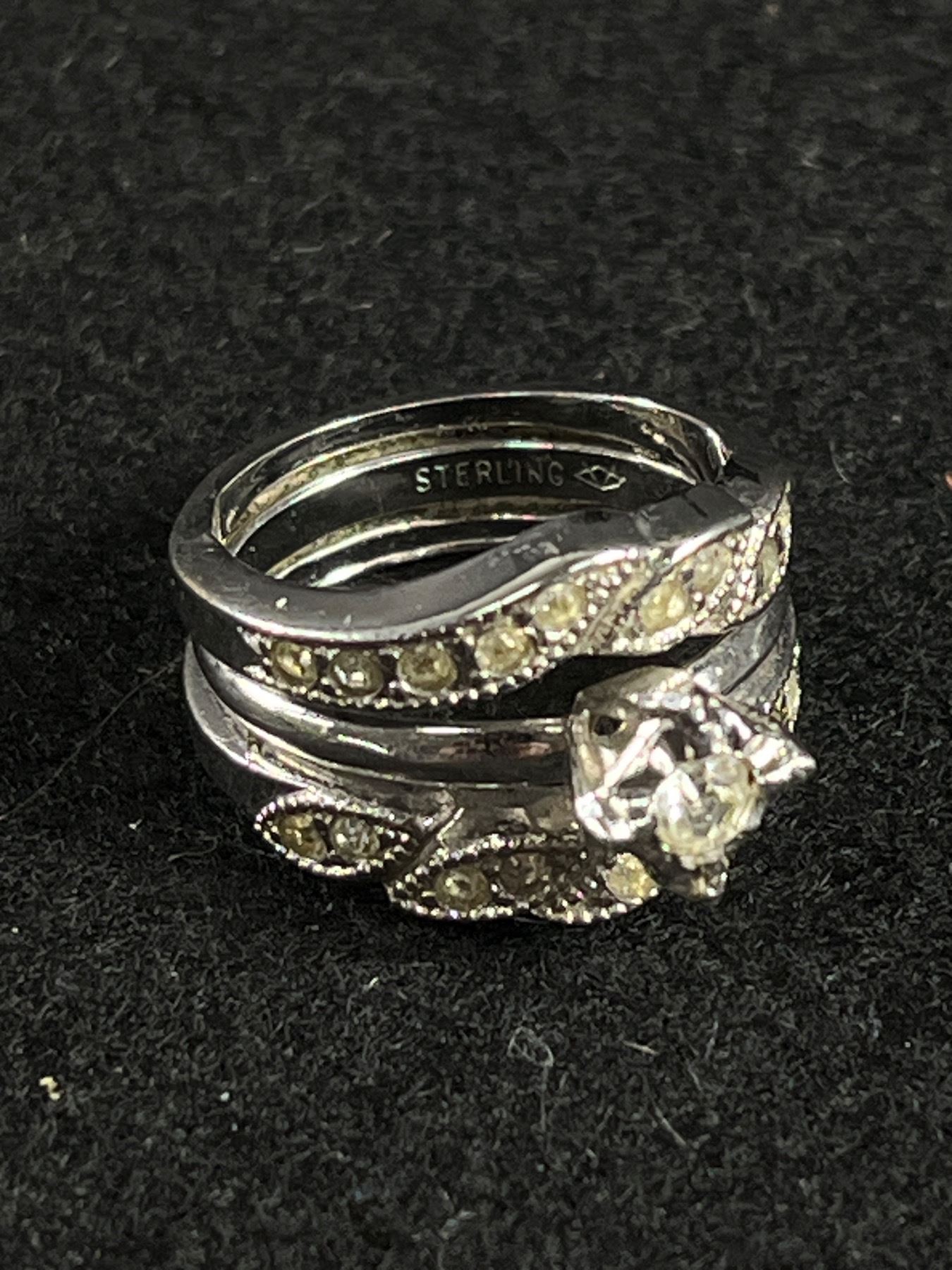 Vintage Sterling Silver Engagement & Wedding Ring Set. Marked Logo & Sterling Size 6