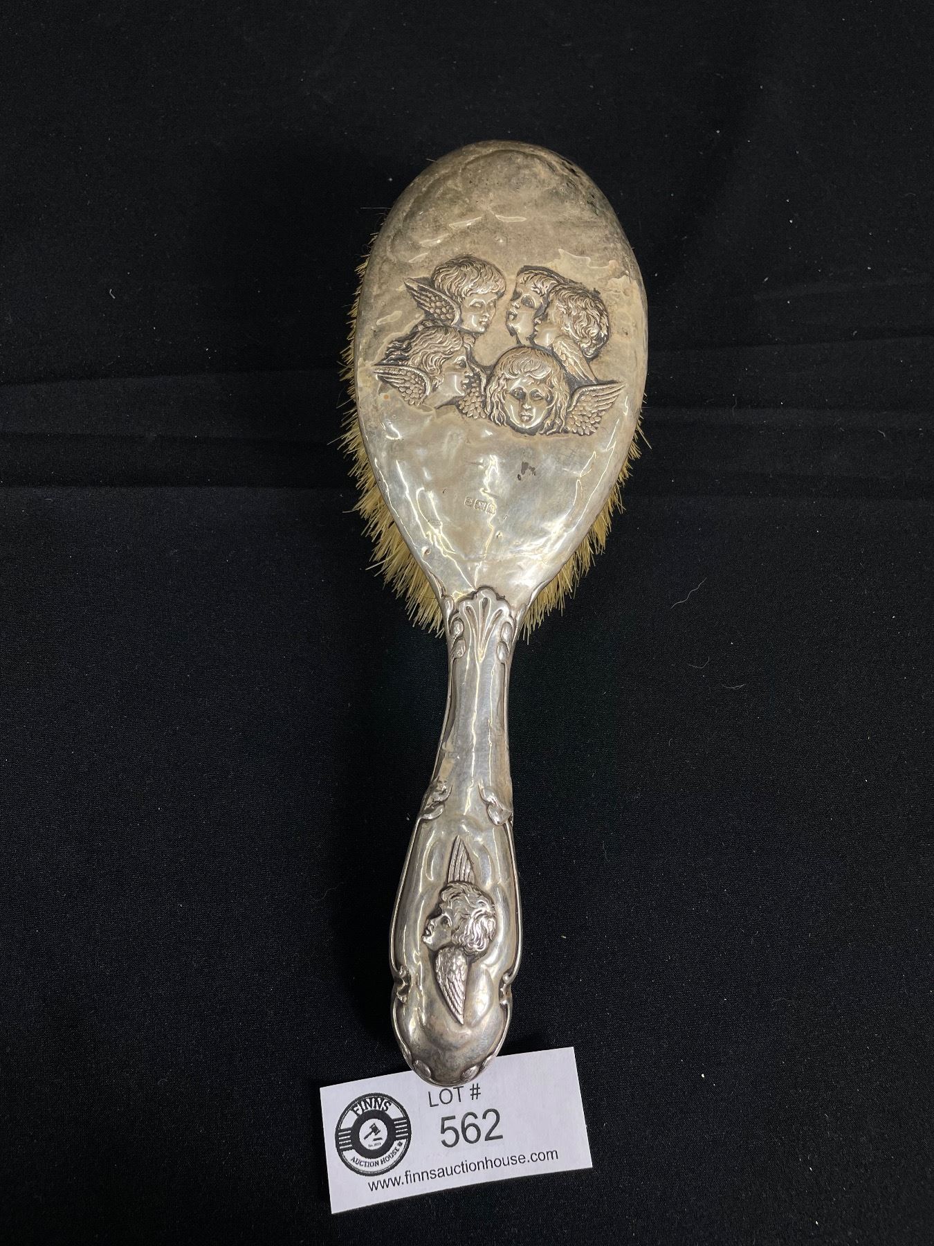Vintage Sterling Silver Hair Brush Adorned with Cherubs