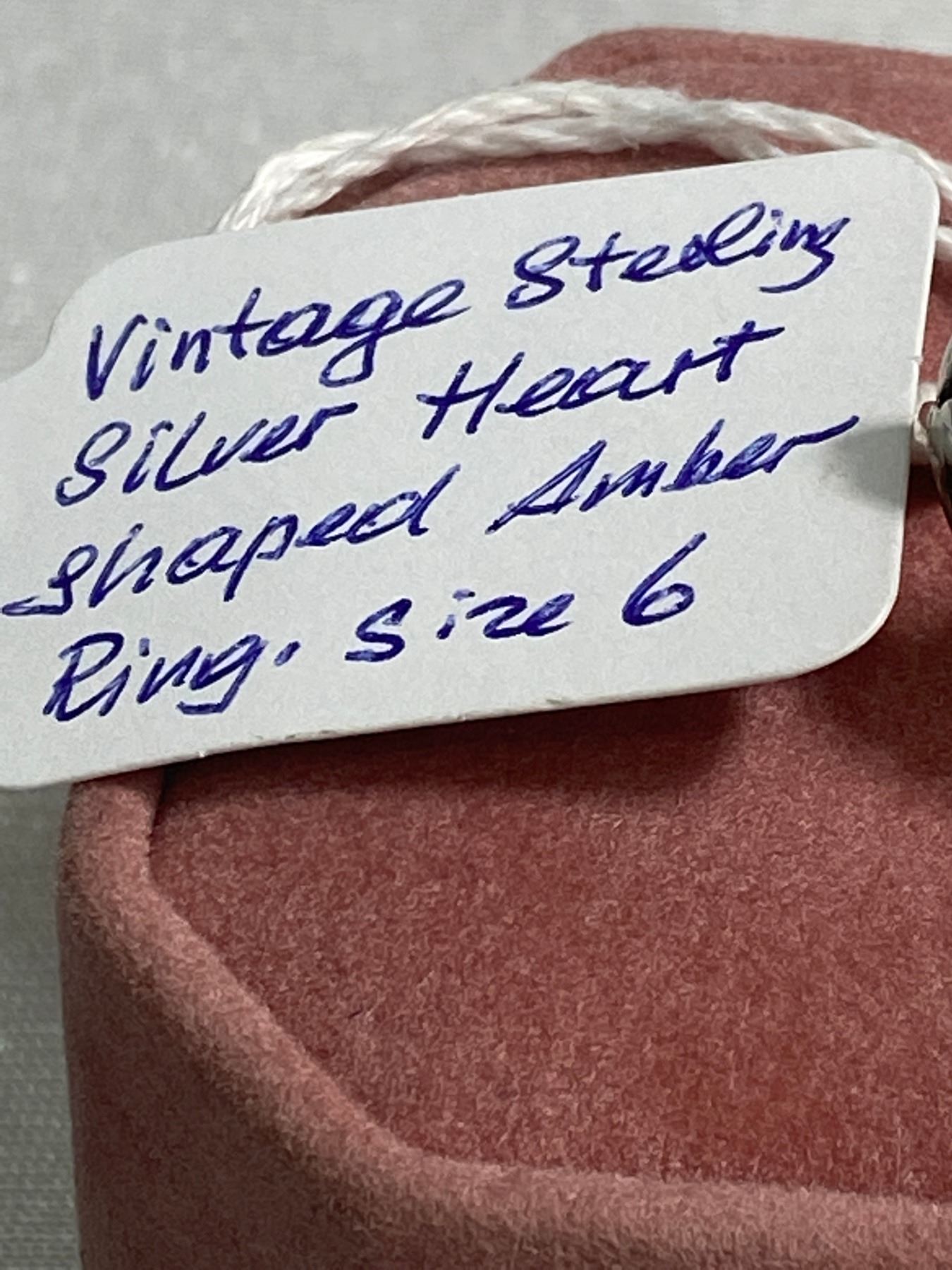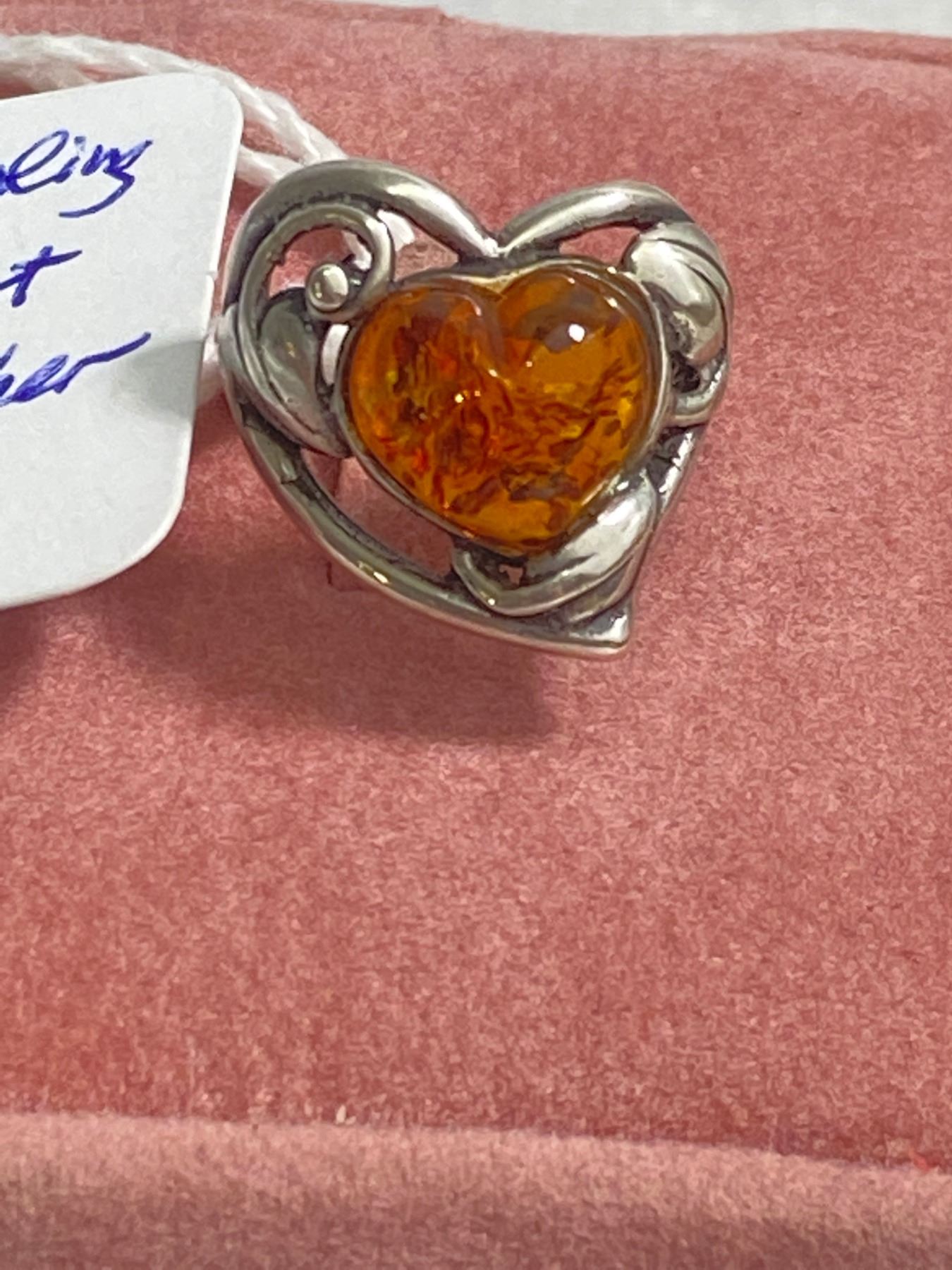 Vintage Sterling Silver Heart Shaped Amber Ring