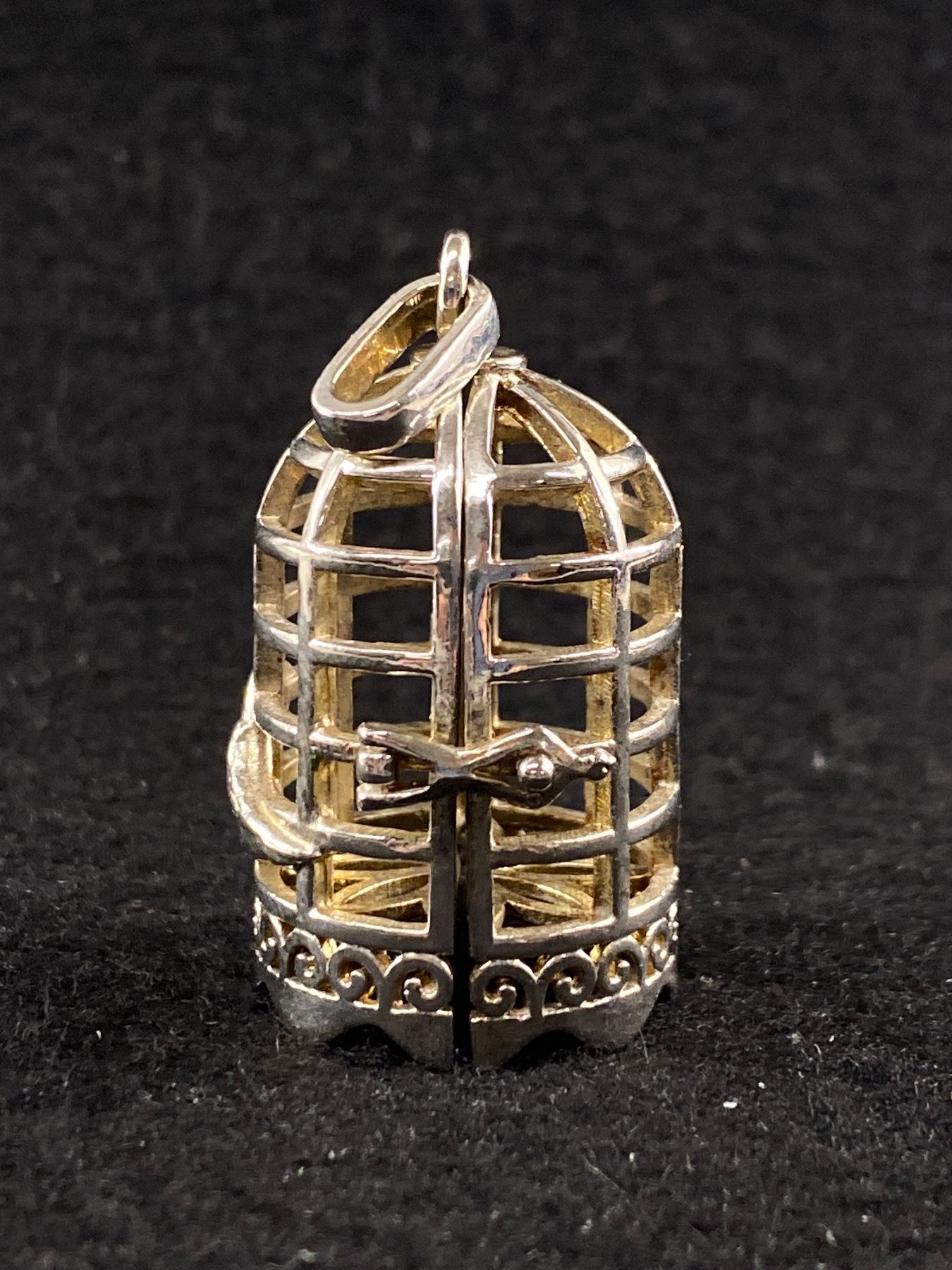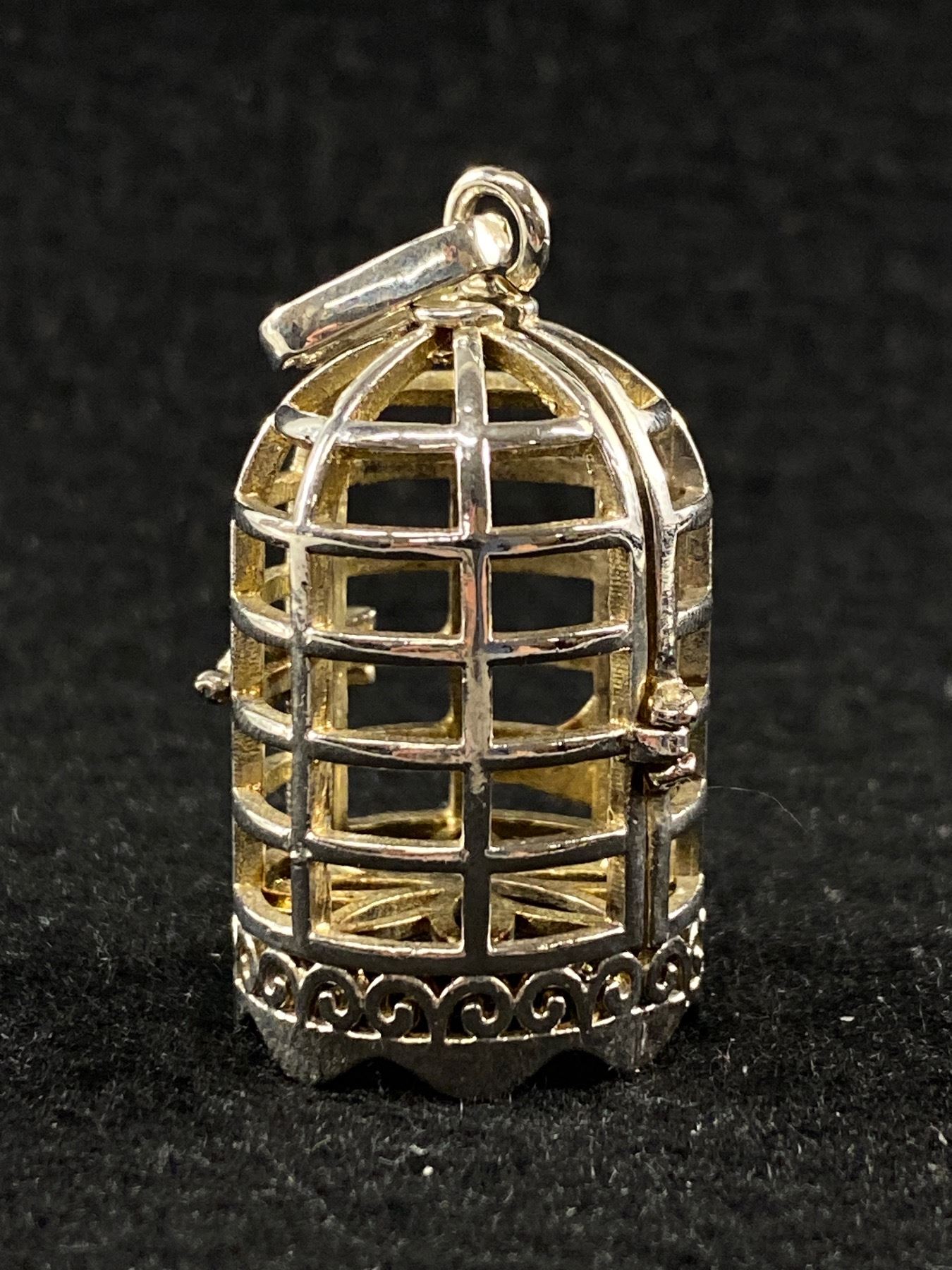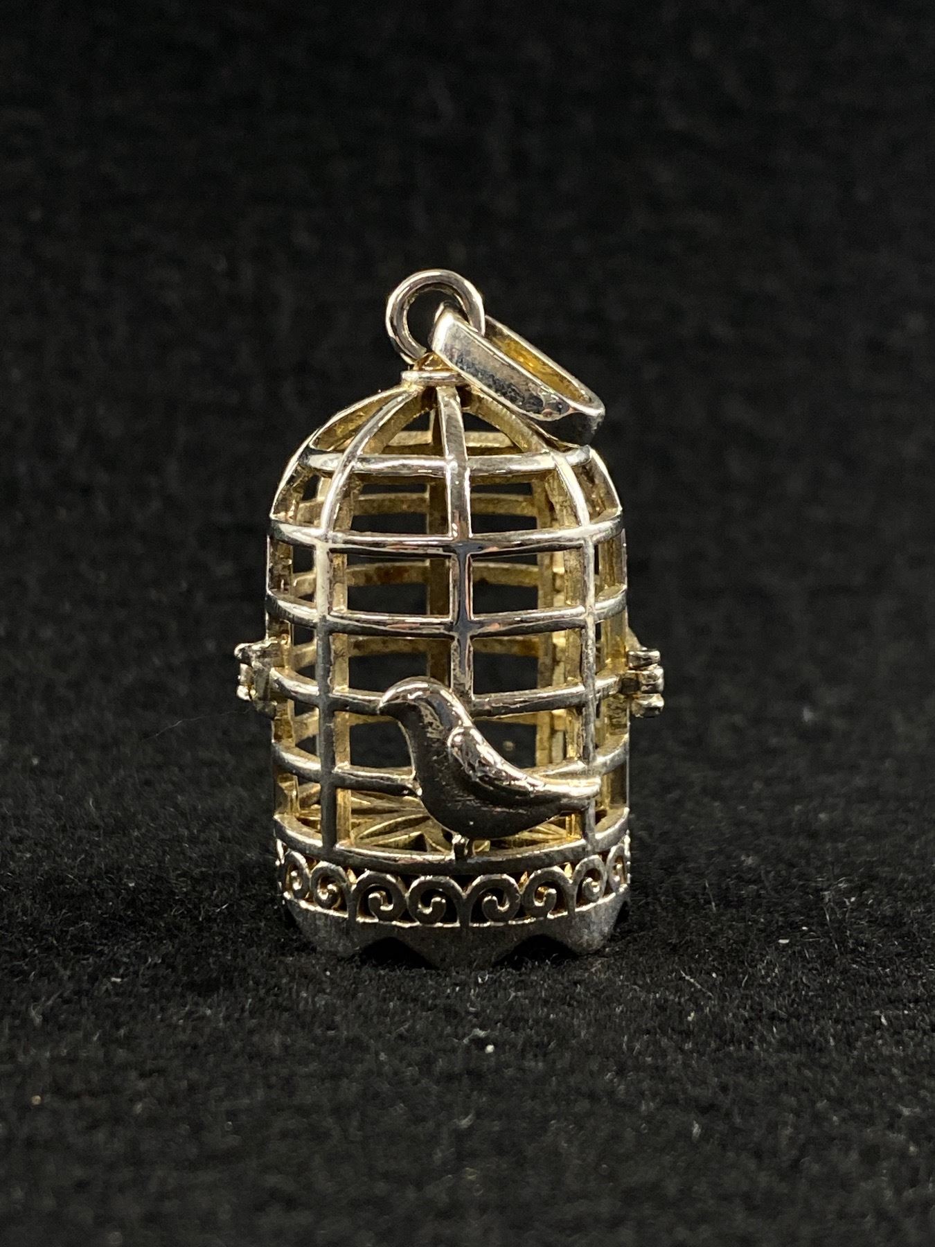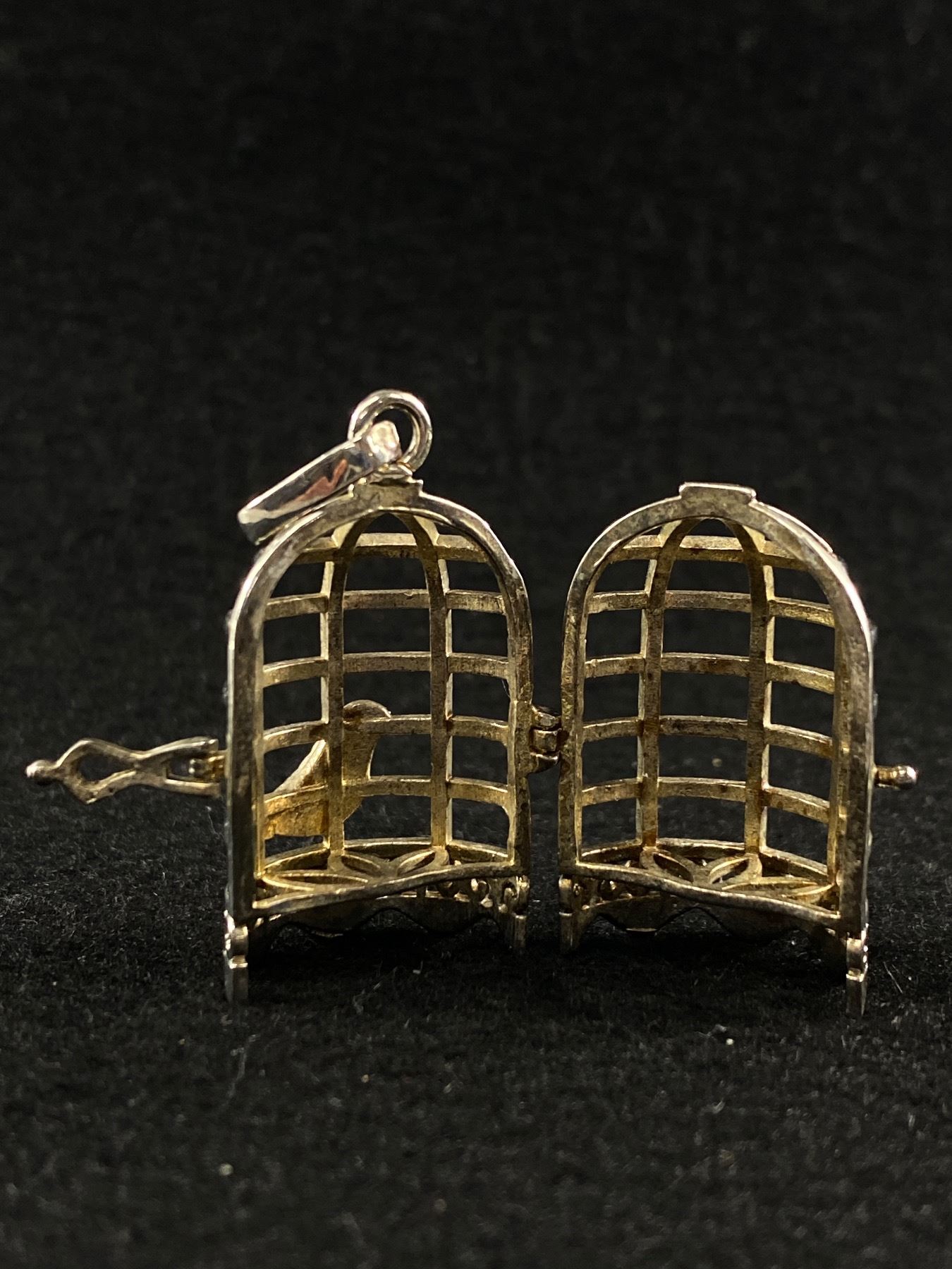 Vintage Sterling Silver Large and Solid Bird Cage Pendant, Hinged Opens w/Lock