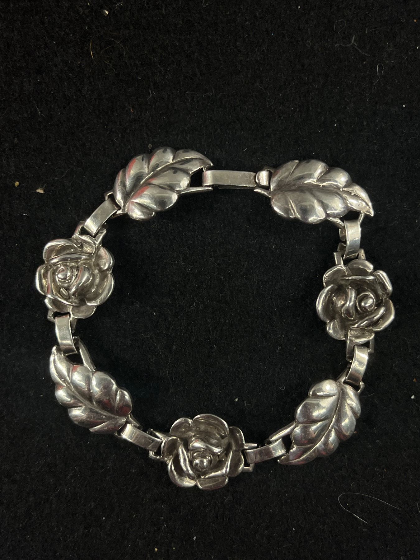 Vintage Sterling Silver Leaves & Roses Links Bracelet Hallmarked & Sterling. Good Condition 20.6gr