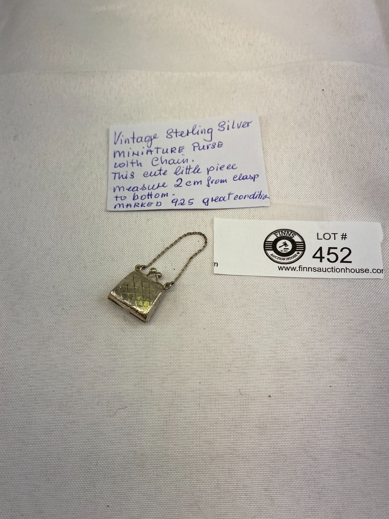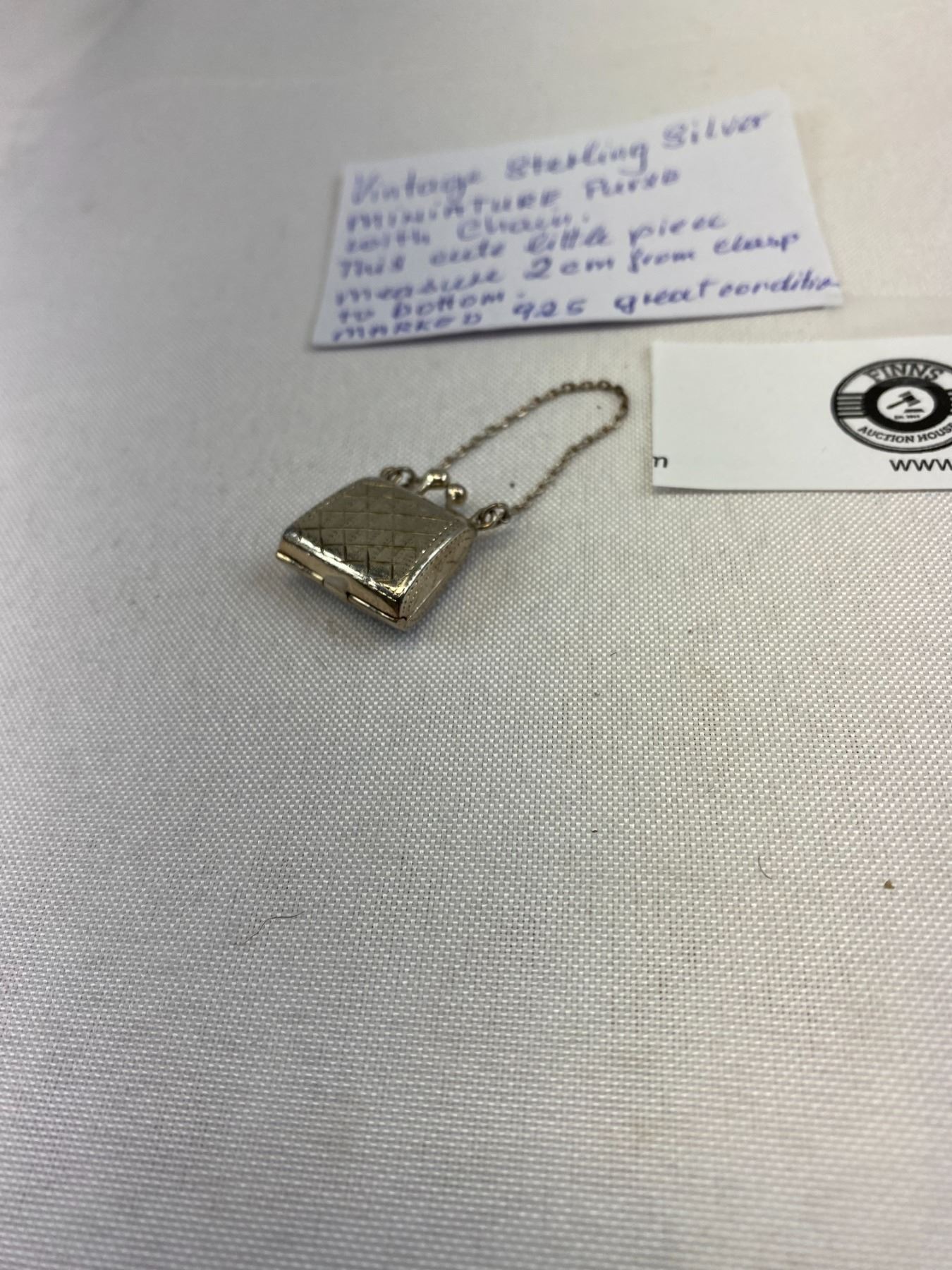 Vintage Sterling Silver Miniature Purse With Chain, Cute Piece, Marked 925, Great Condition