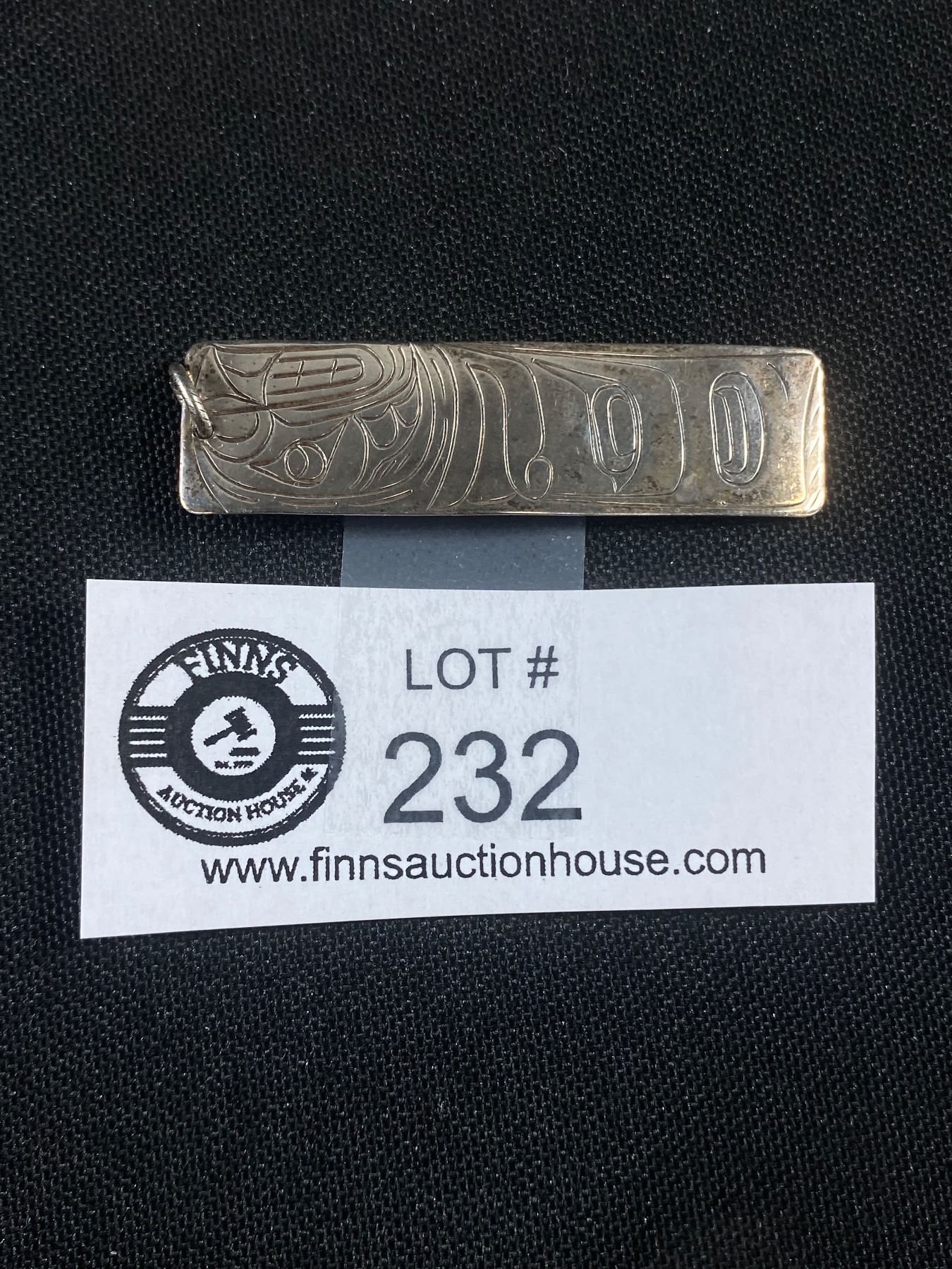 Vintage Sterling Silver Native Haida Pendant. Hand Signed ND 2"L x 1/2" W