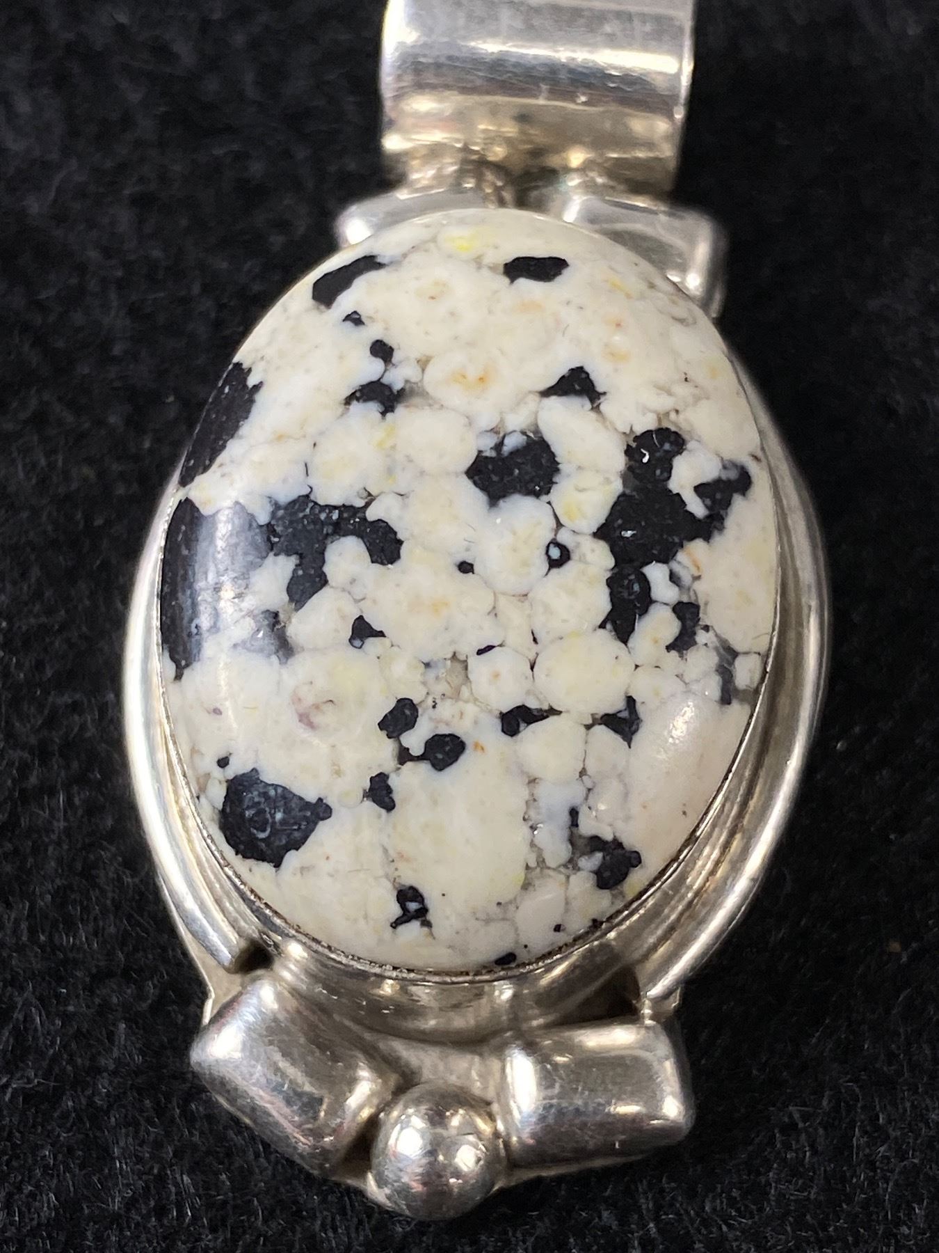 Vintage Sterling Silver Oval Dalmatian Jasper Pendant 17.3 Grams 1 3/4" X 7/8" - Marked & Tested
