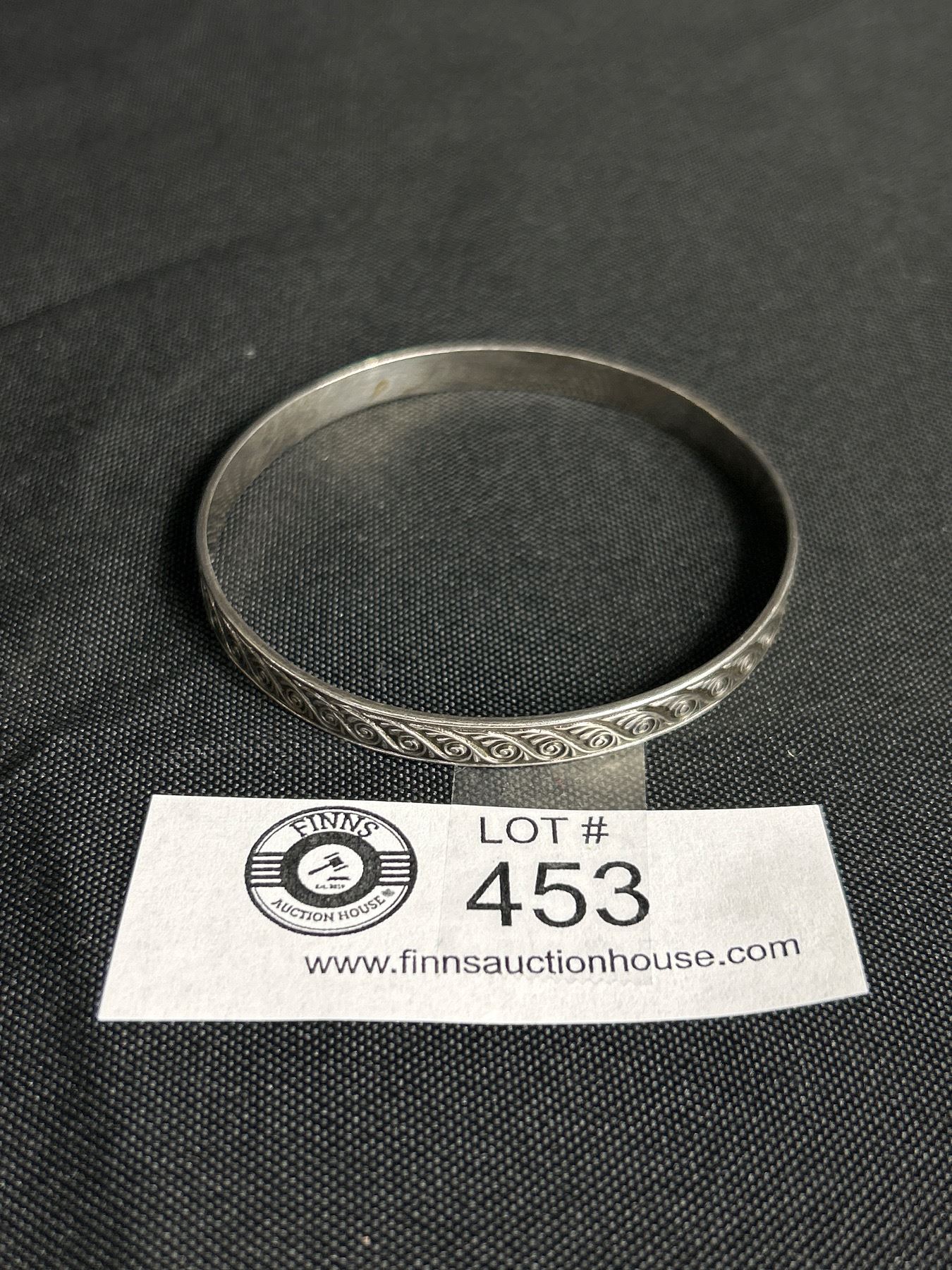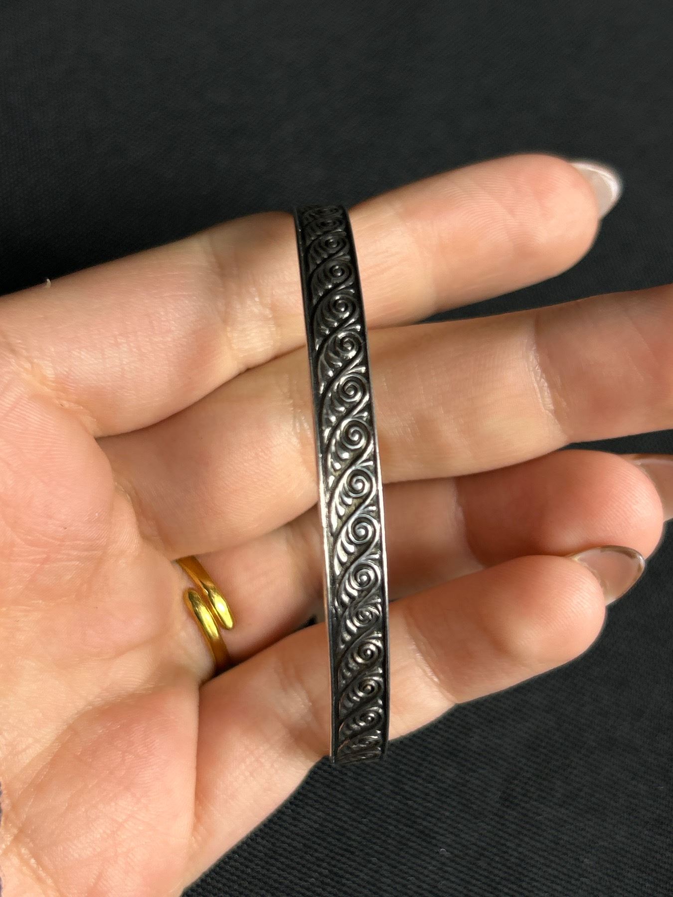 Vintage Sterling Silver Raised Engraved Bangle.Marked H Sterling 16gr