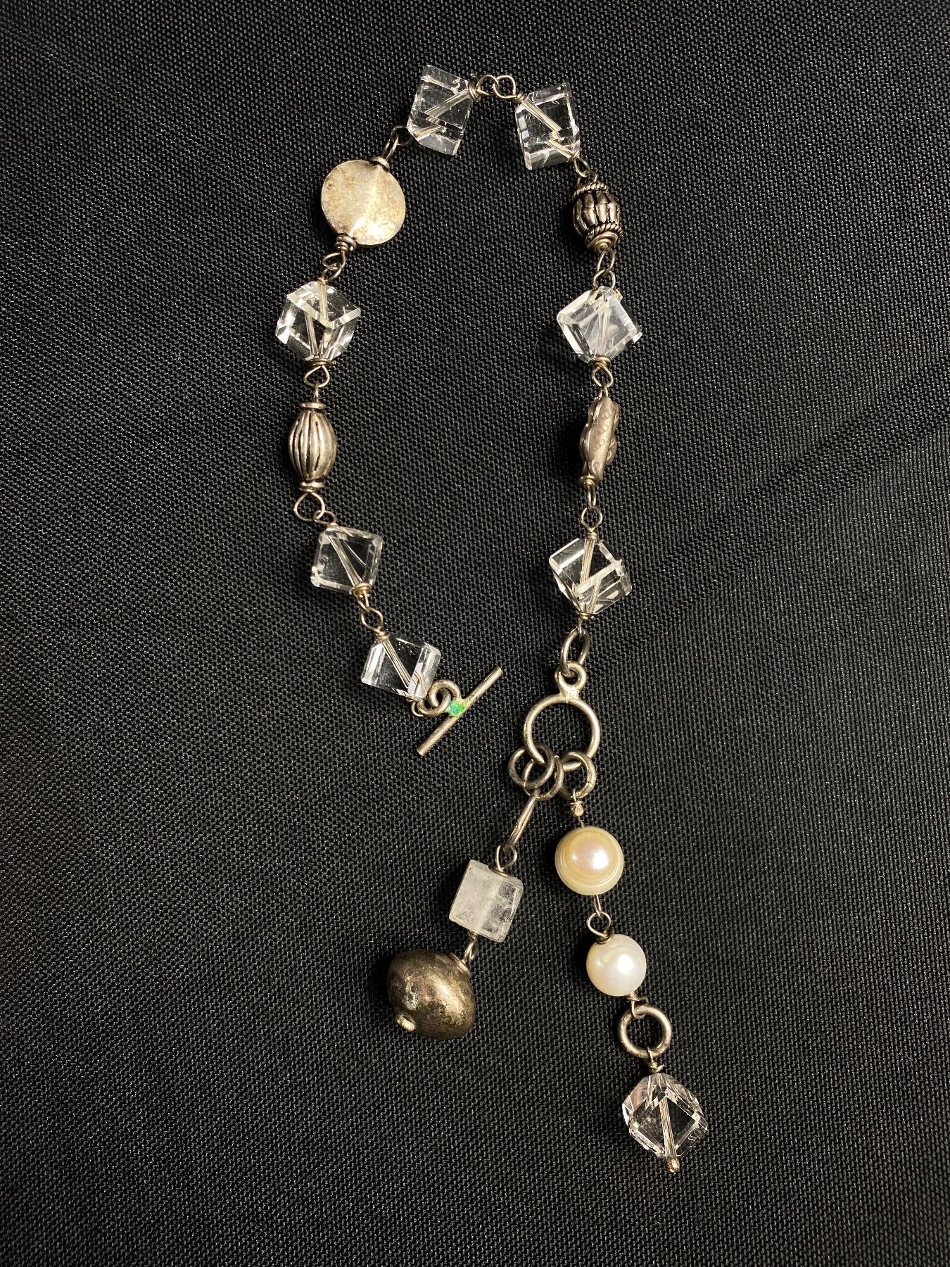 Vintage Sterling Silver Rock Crystal and Genuine Pearl Bracelet
