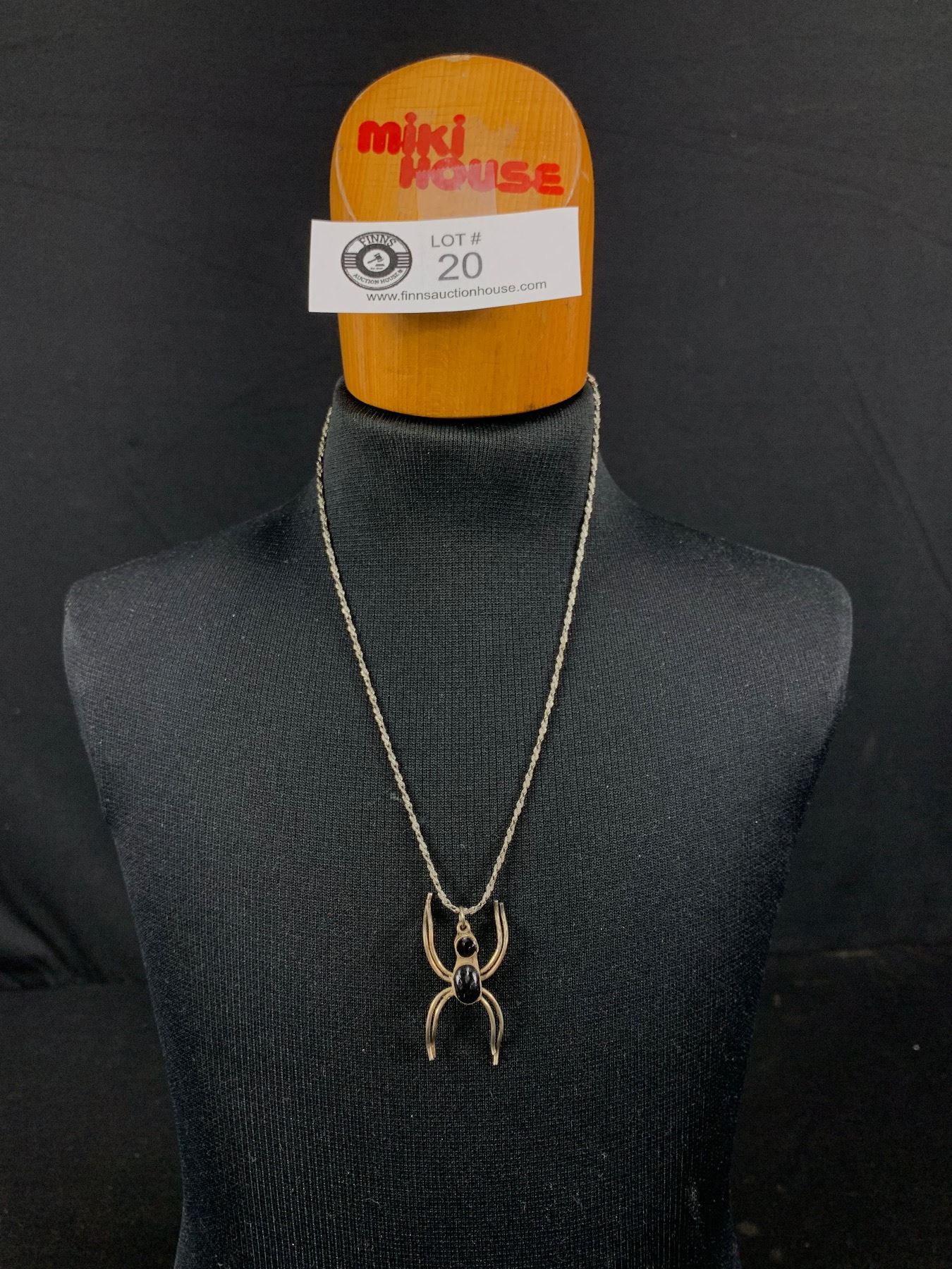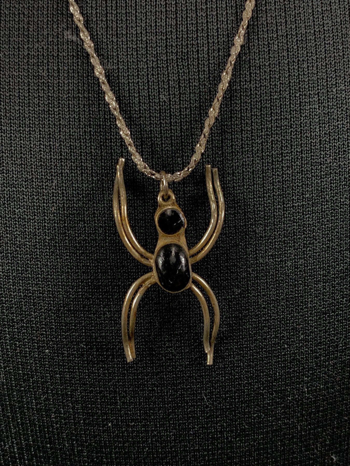 Vintage Sterling Silver Spider Pendant with Black Onyx, Necklace