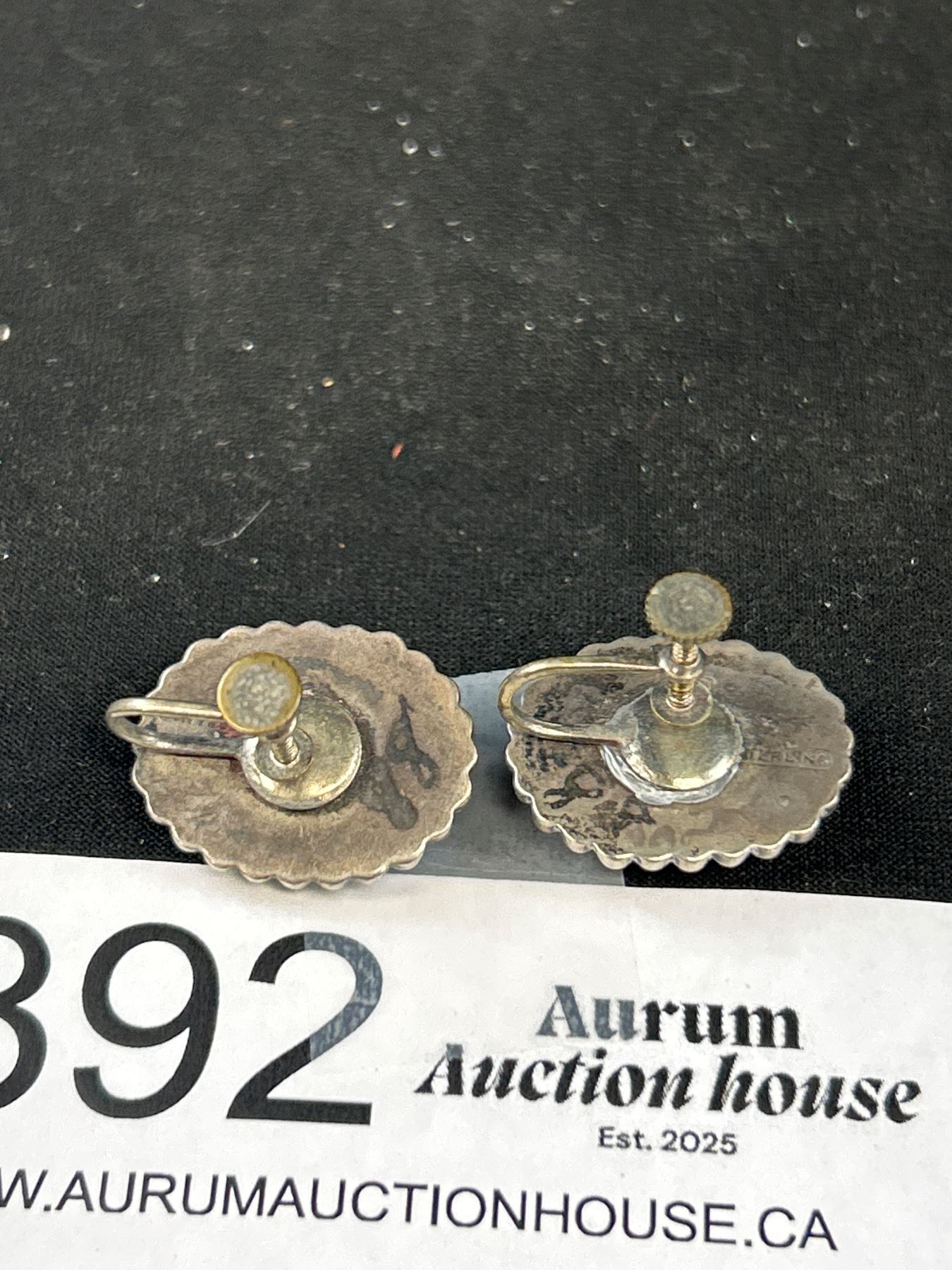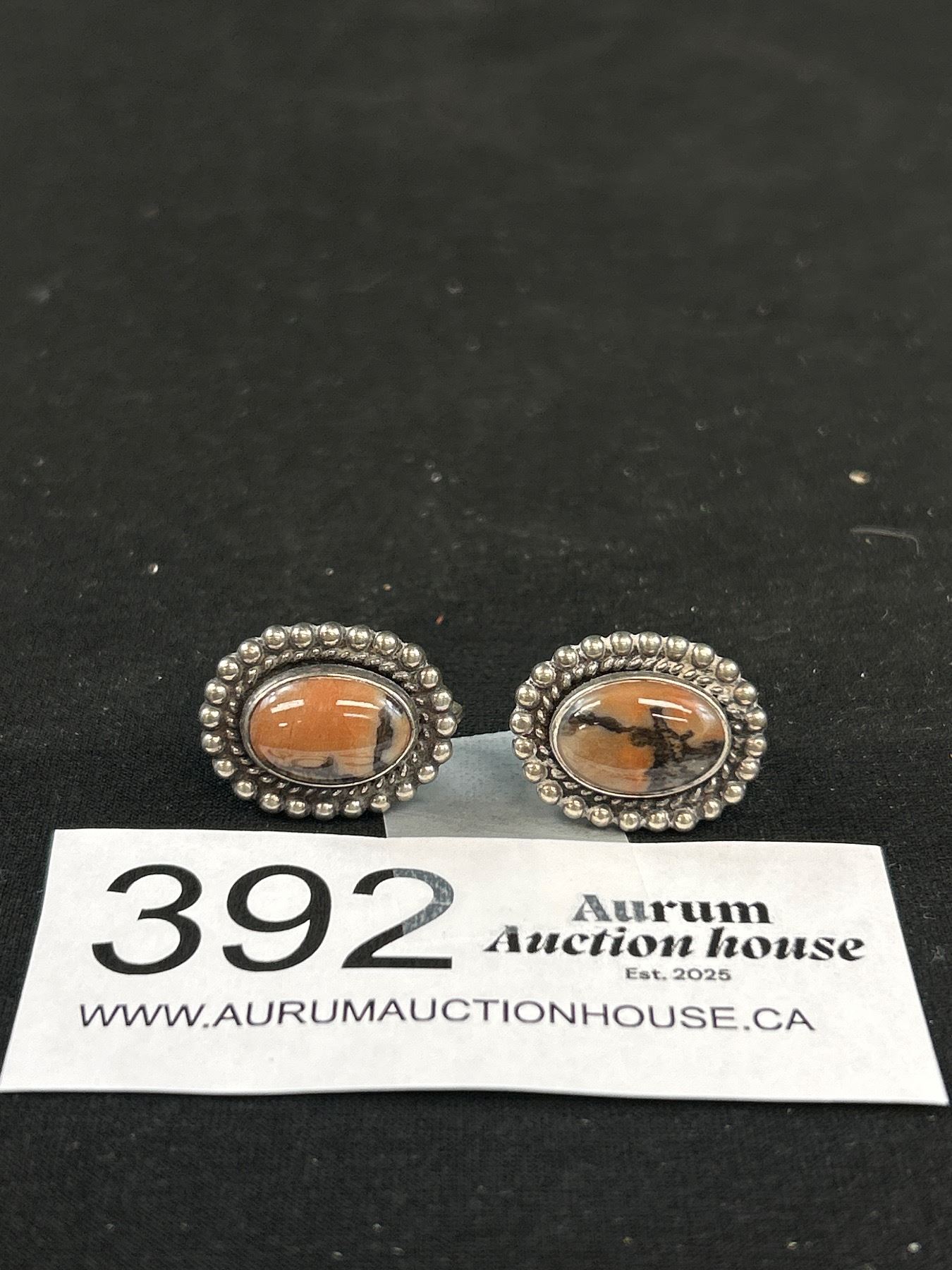 Vintage Sterling Silver - Tested Jasper Navajo Earrings Solid Quality
