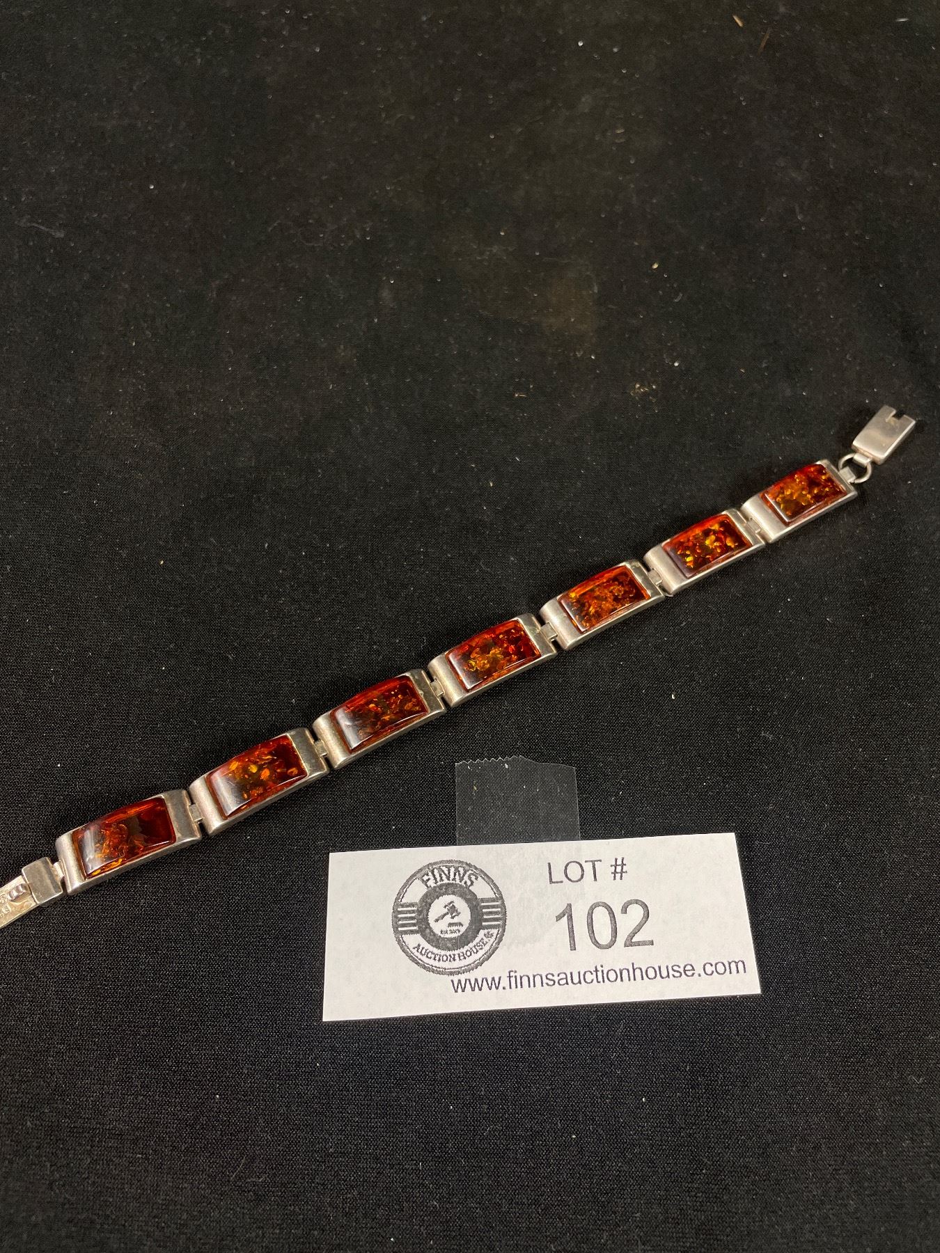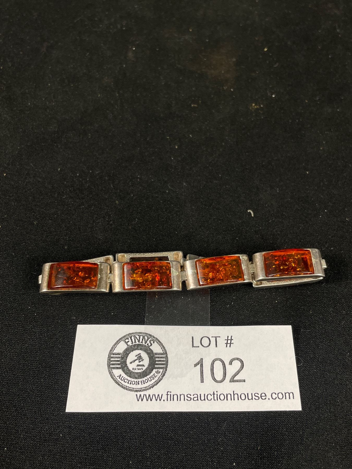 Vintage Sterling Silver w/Amber Stones Bracelet