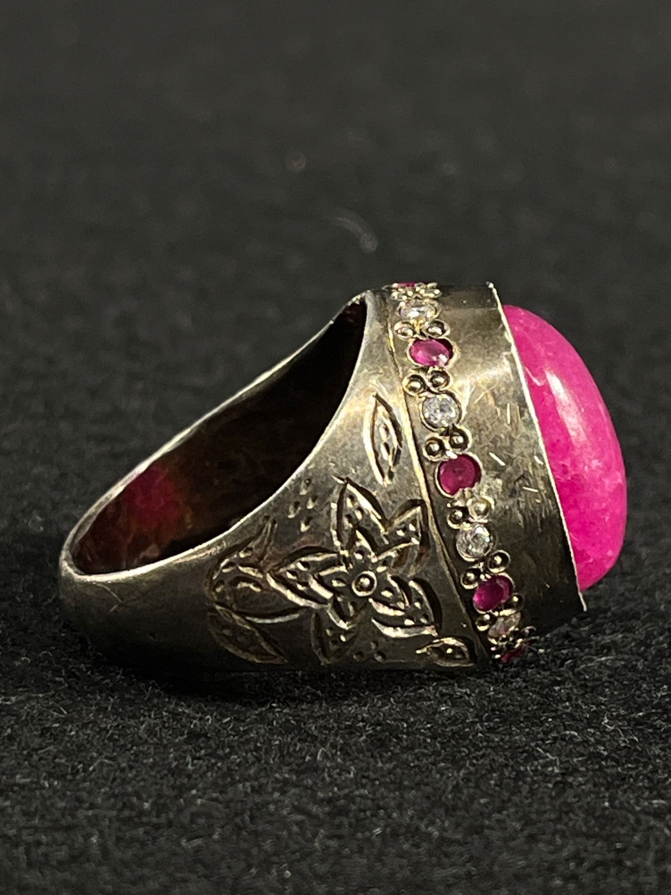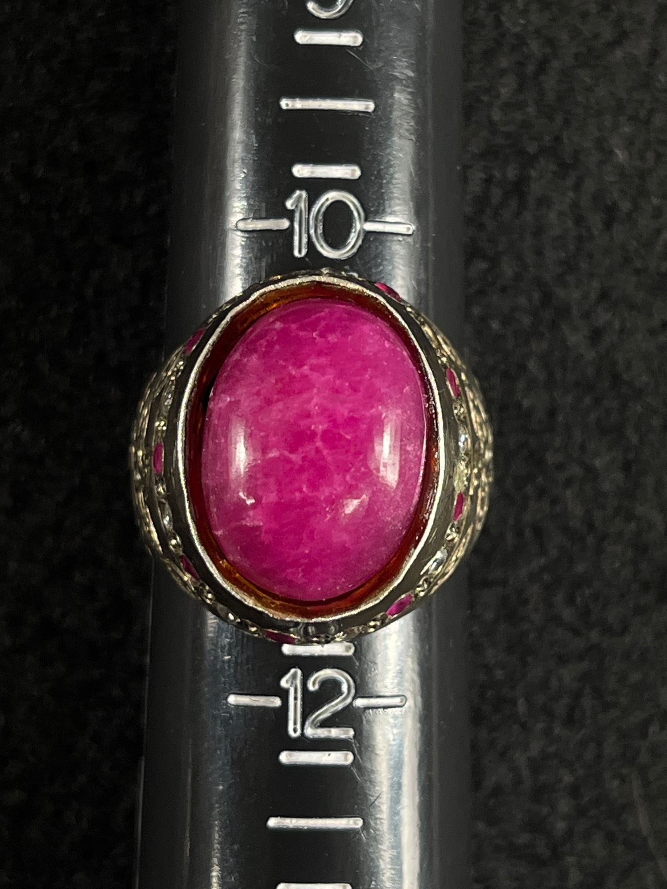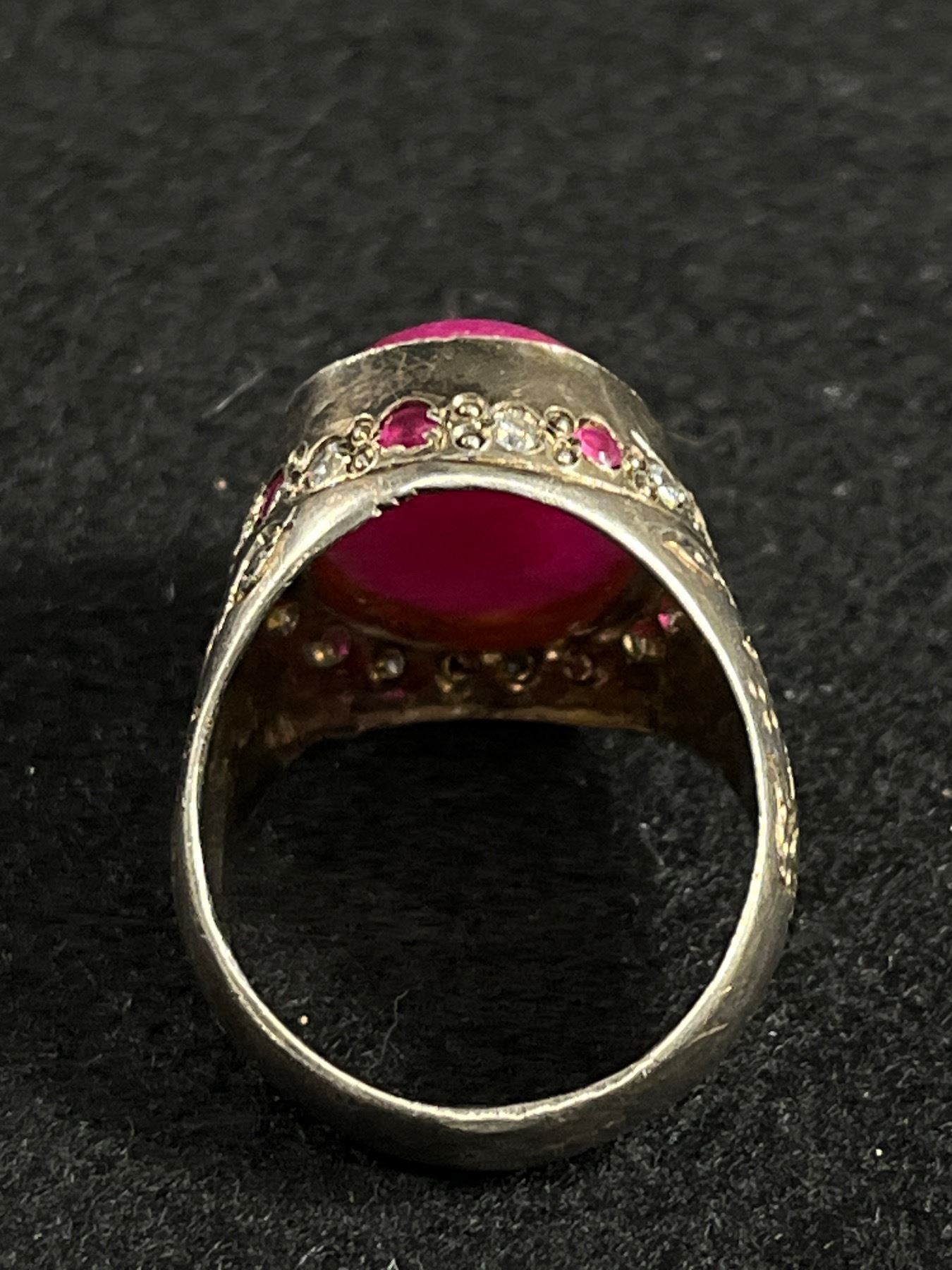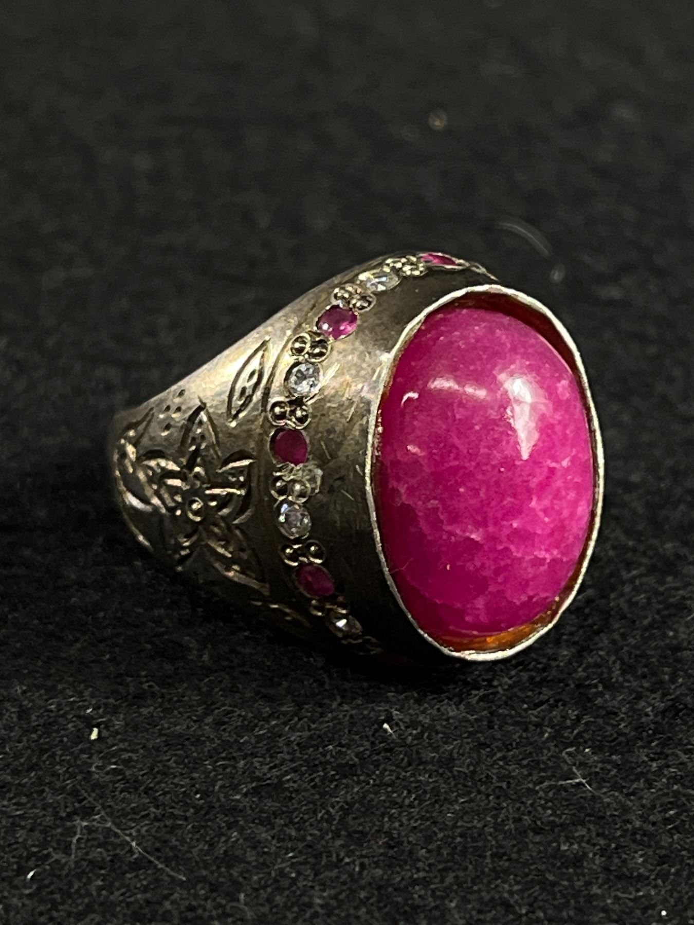 Vintage Sterling Silver with Indian Ruby Stone Ring, Large & Heavy Size 11 12.4 gr