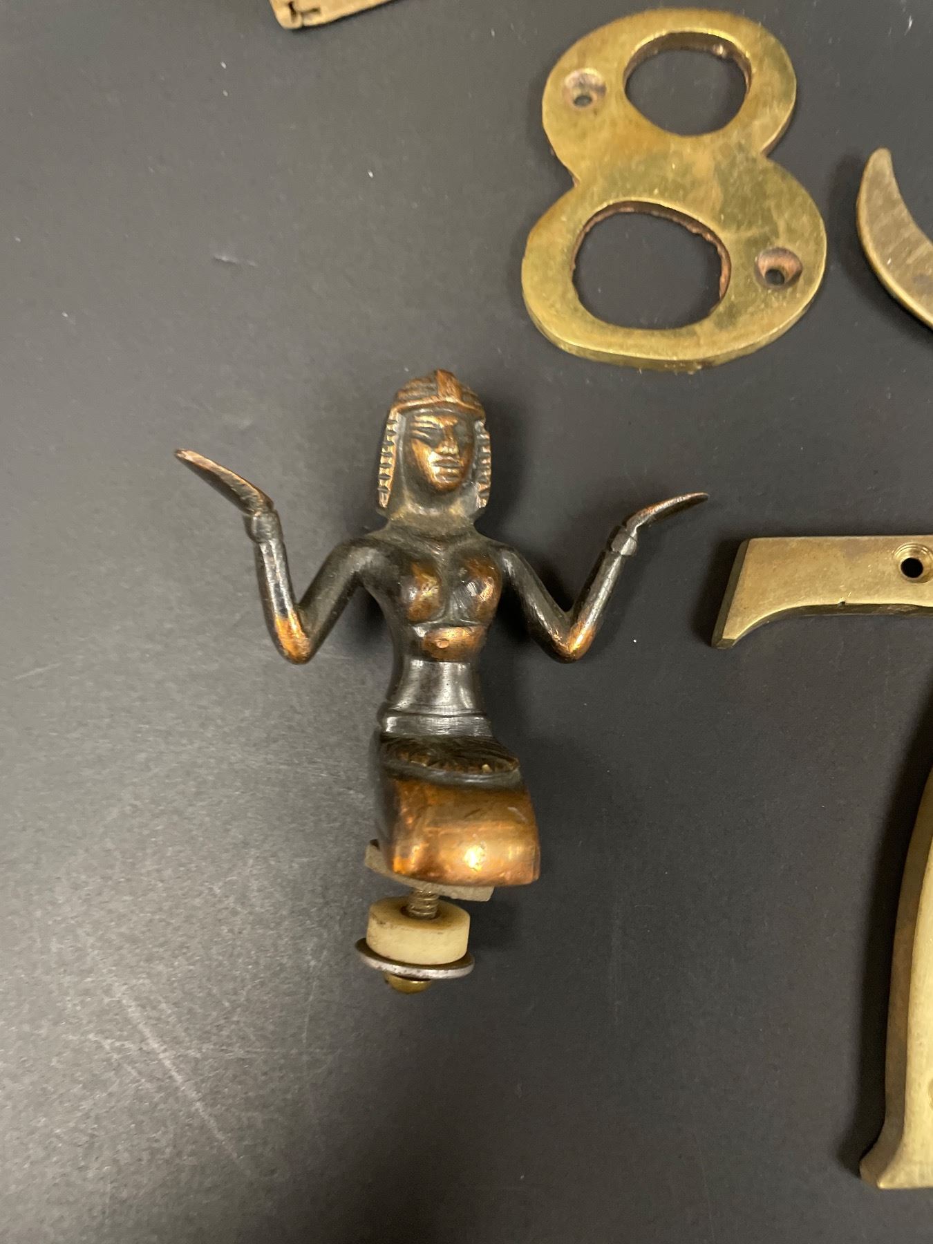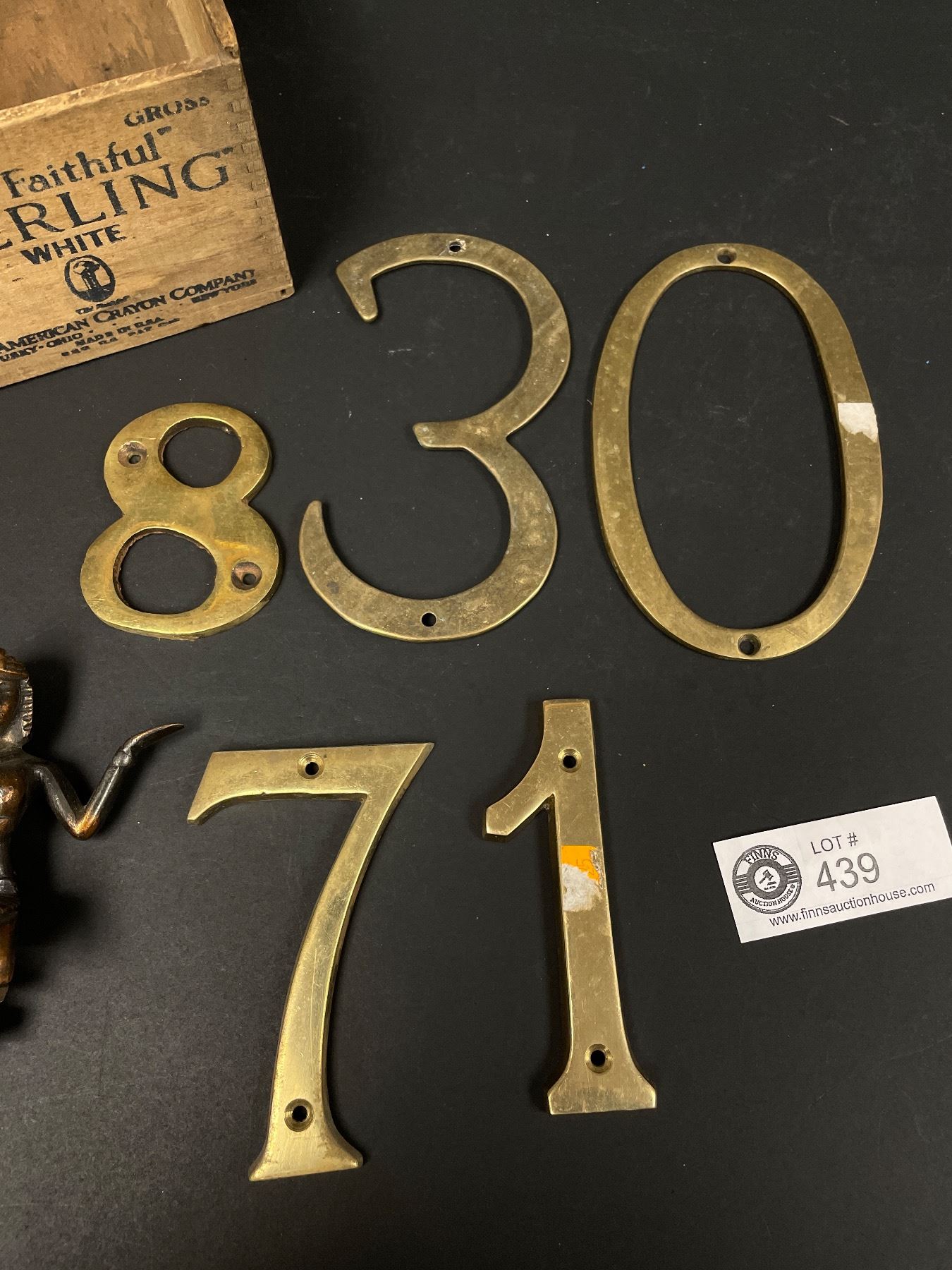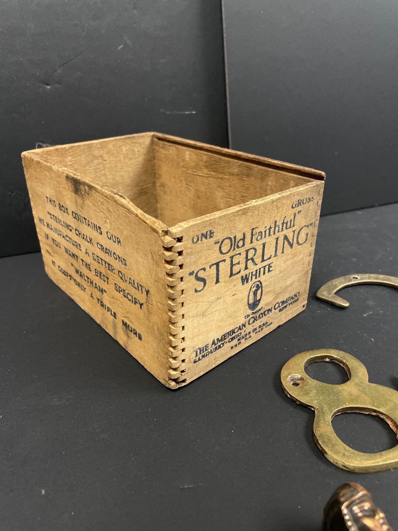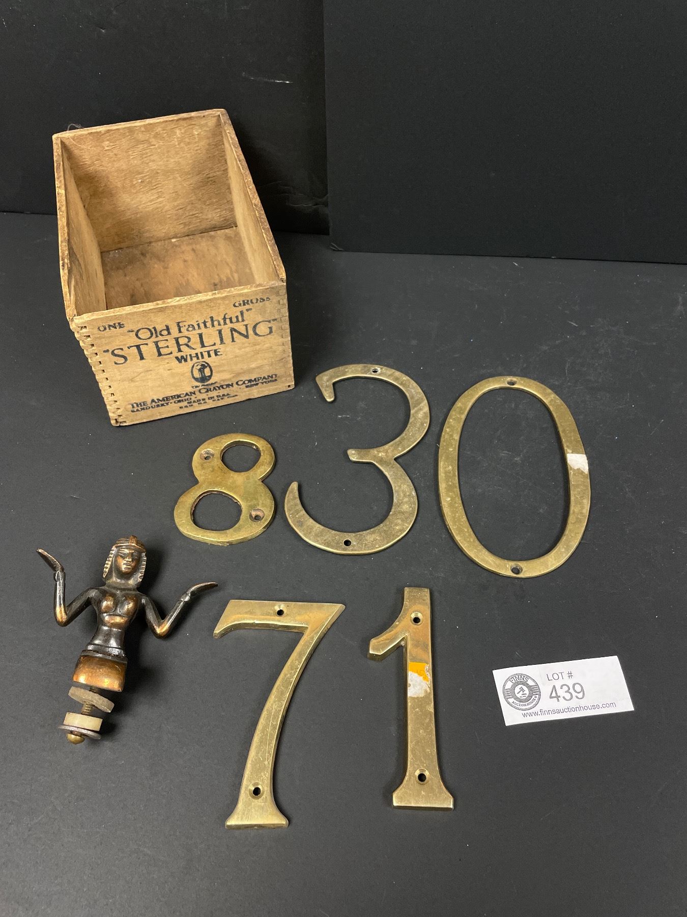 Vintage Sterling White Wooden Crayon Box with Brass Numbers and Figural Egyptian Head