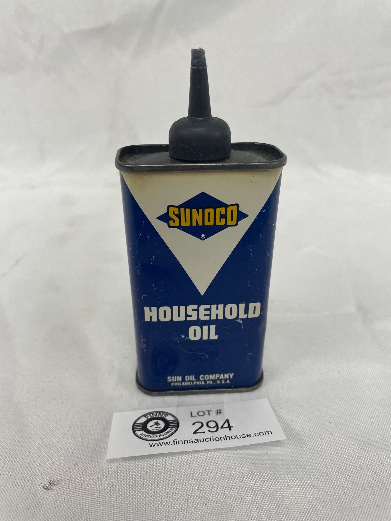 Vintage Sunoco Household Oil Tin with Gas Pump on Back