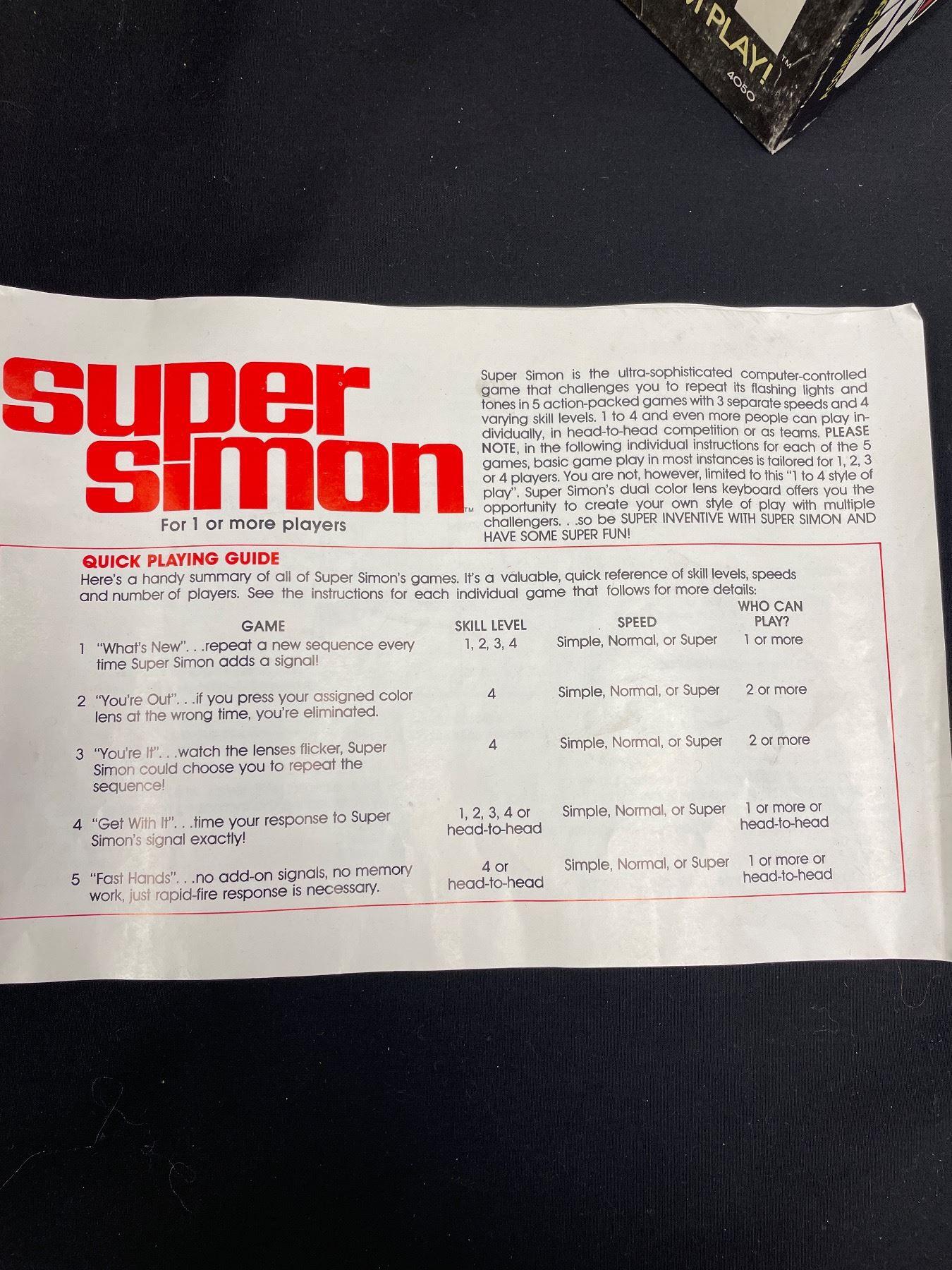 Vintage Super Simon Electronic Game In Original Box 1979