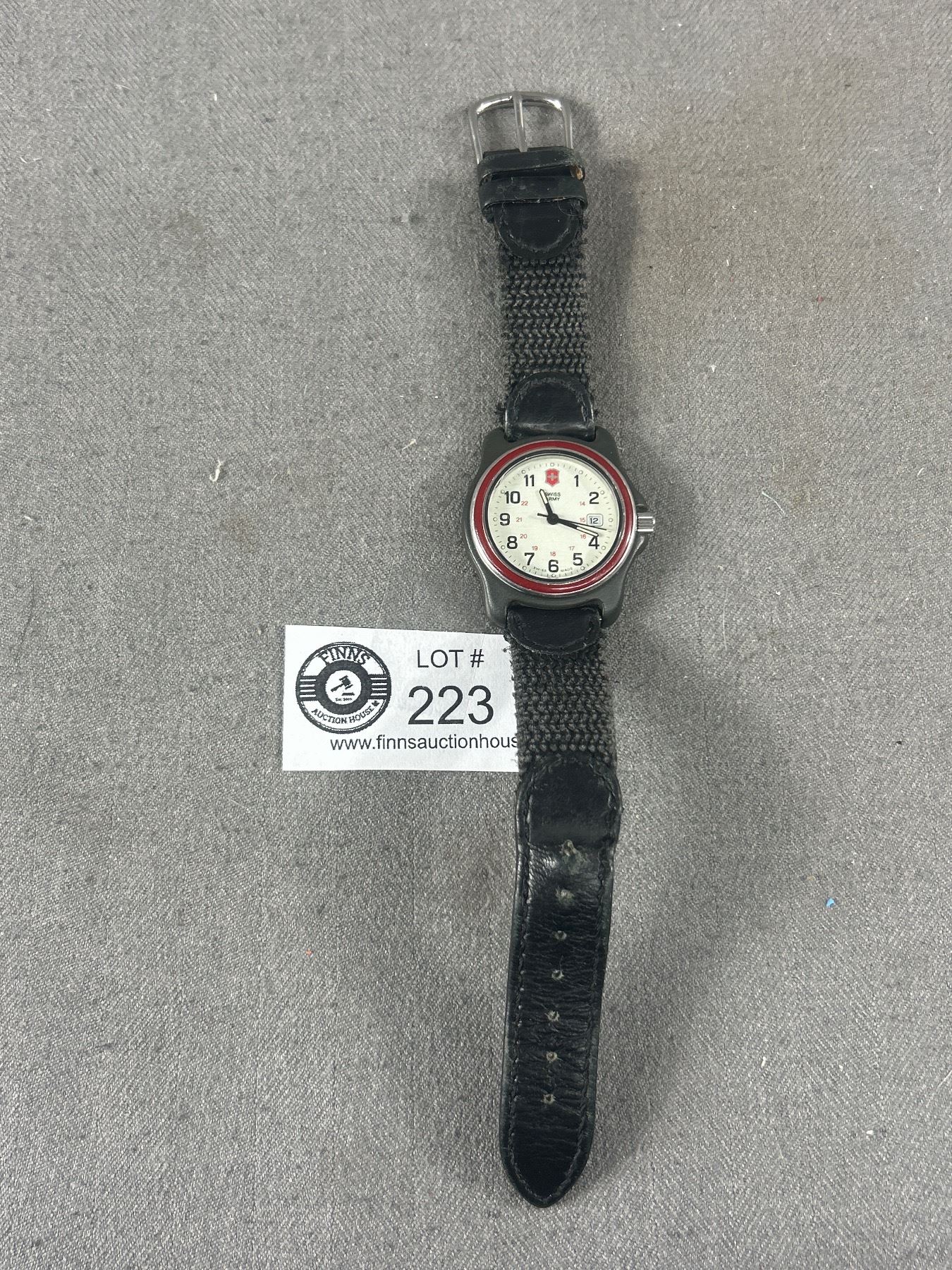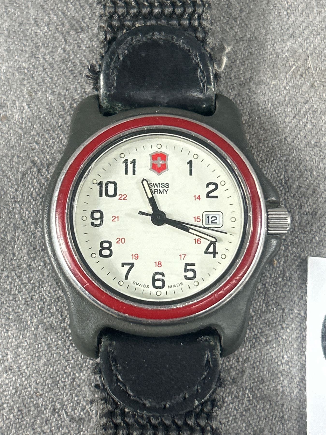 Vintage Swiss Army Watch w/ Red Bezel Date Dial. Leather Watch Band. Needs Battery