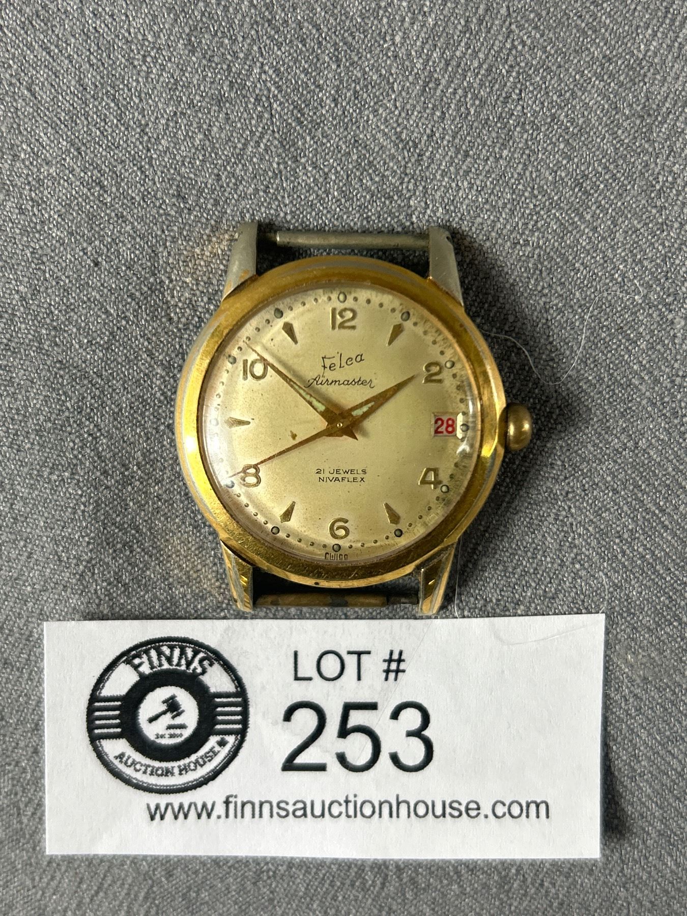 Vintage Swiss Made Felca Airmaster 21 Jewel Watch. No Band Needs Battery
