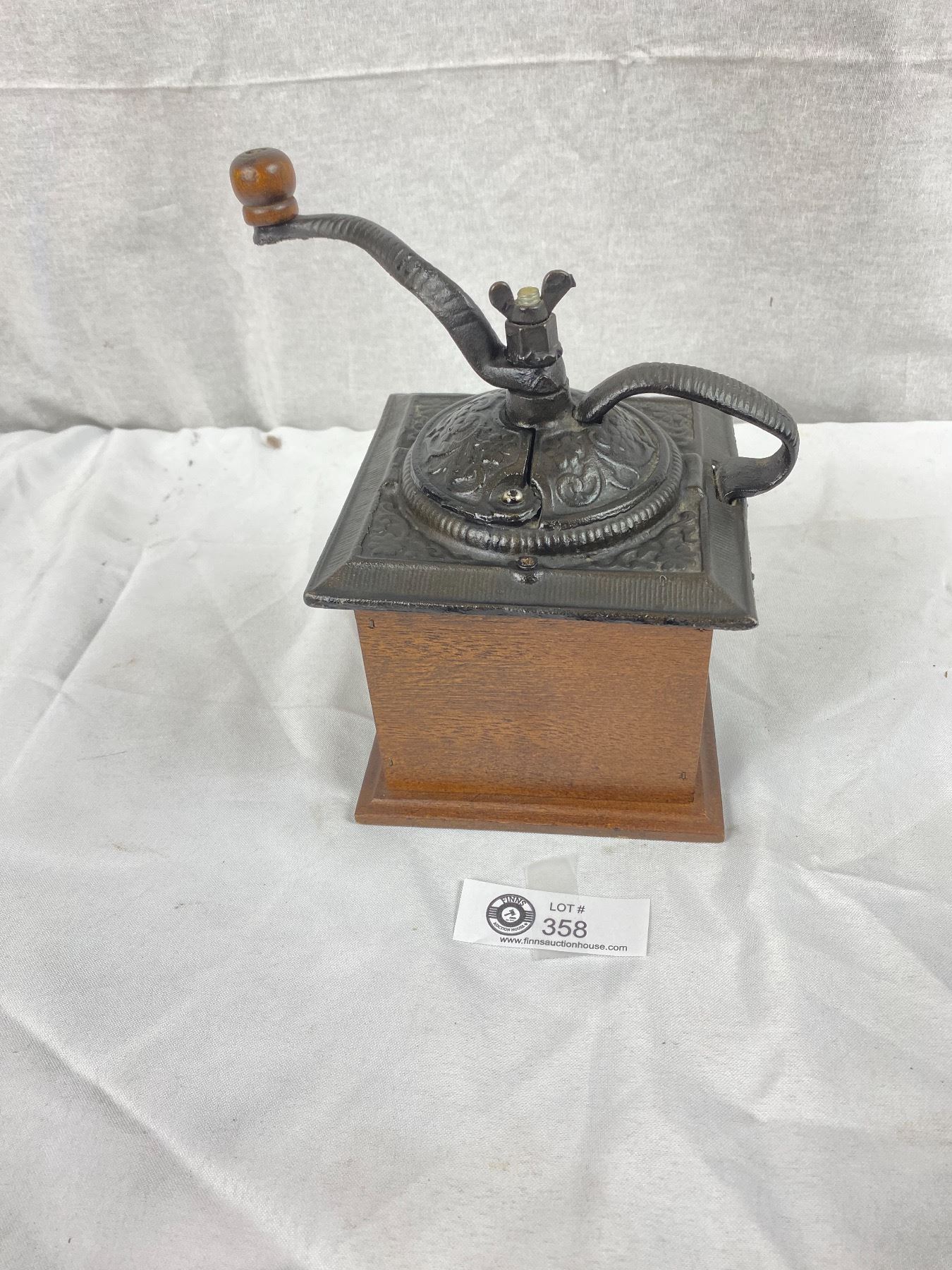 Vintage Table Top Coffee Grinder Cast Iron And Wood W/Manual Hand Crank And Drawer